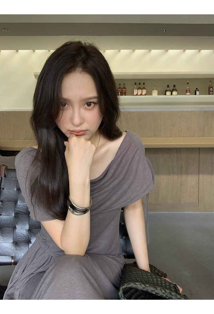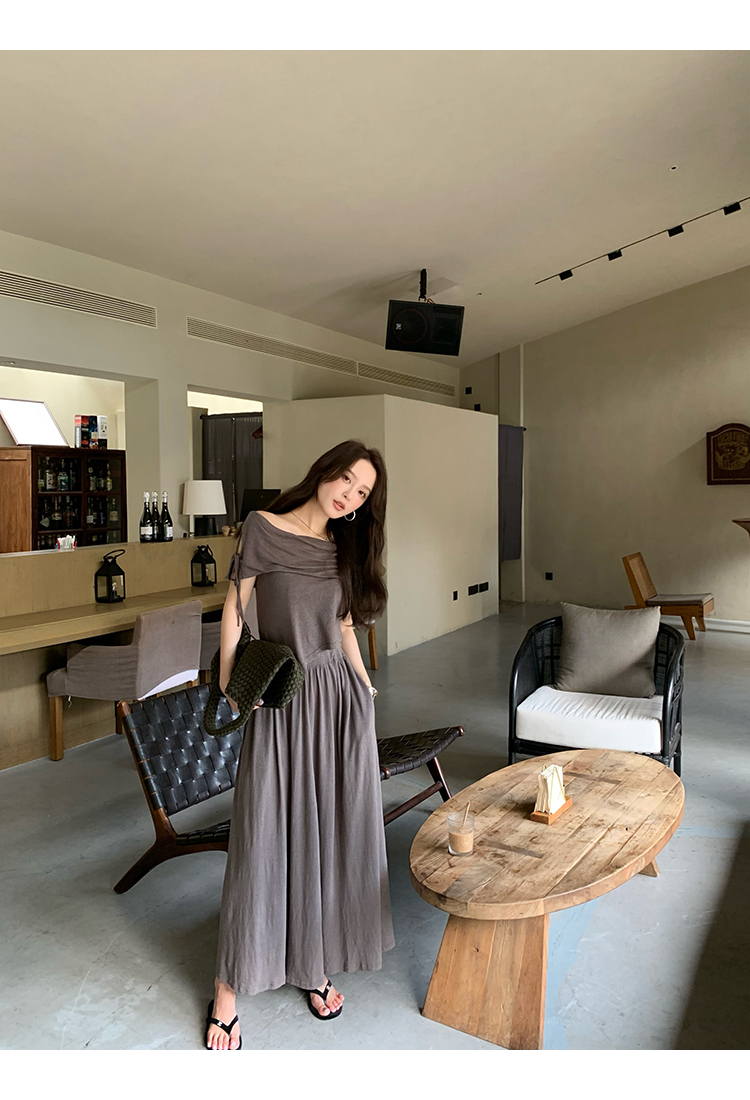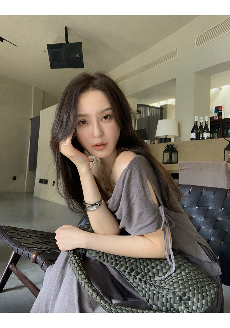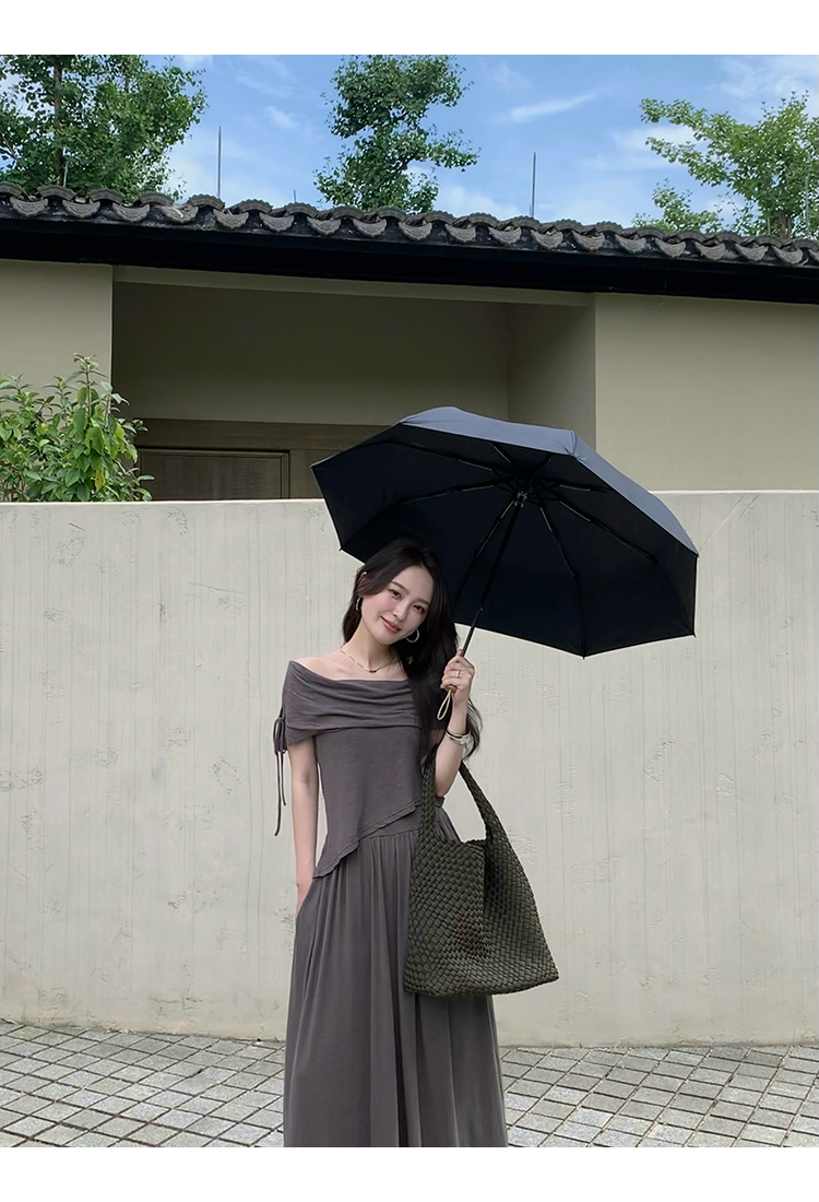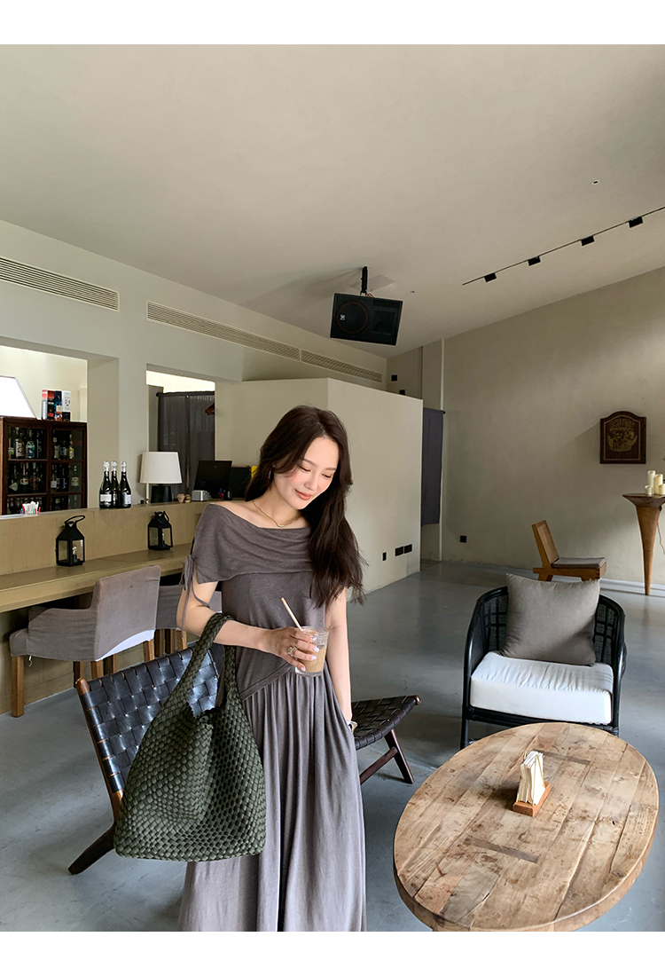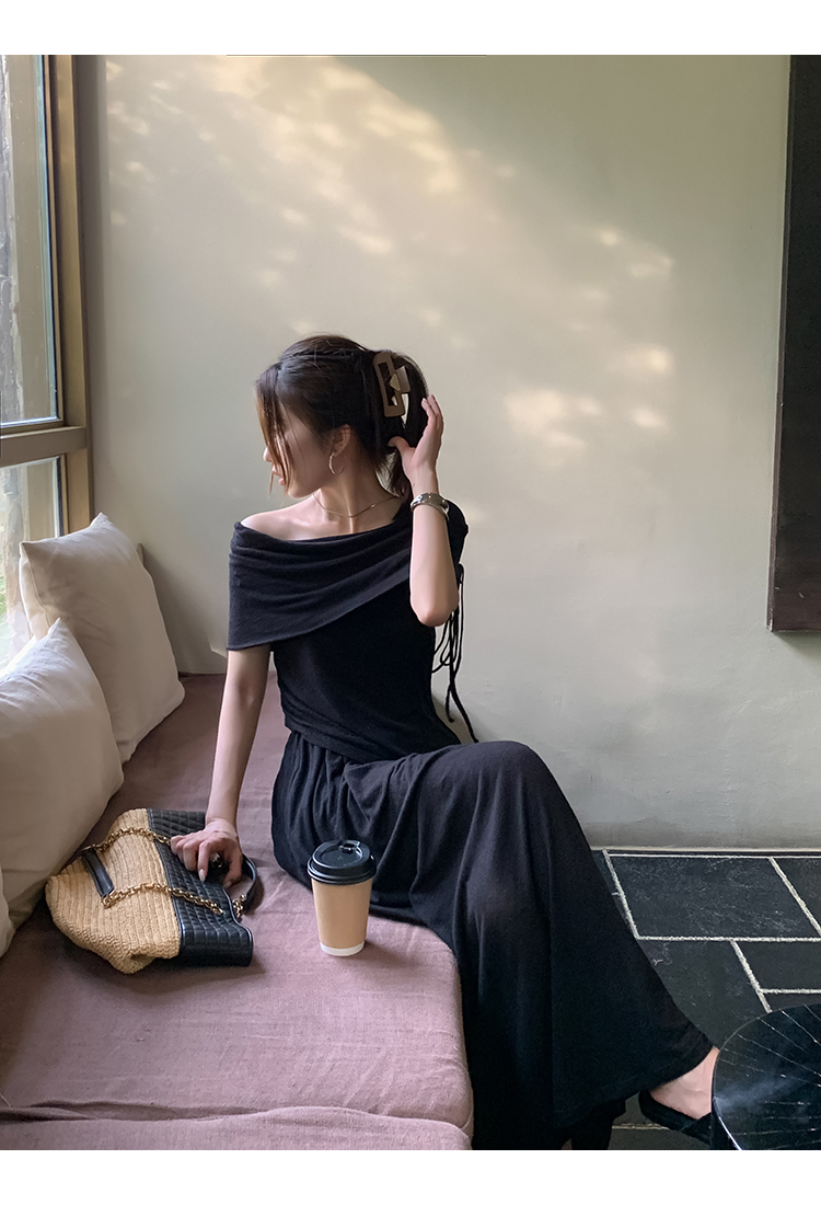 不規則斜邊一字領,修飾肩頸,露出迷人鎖骨