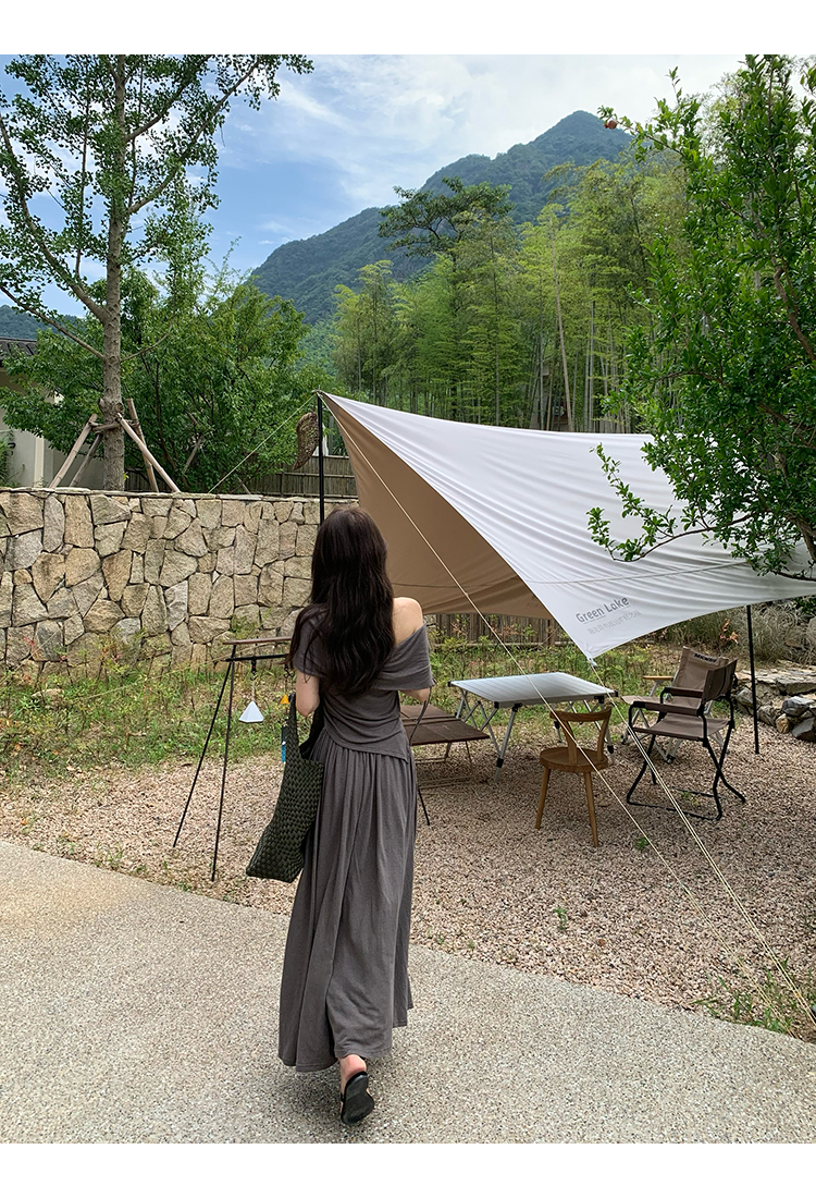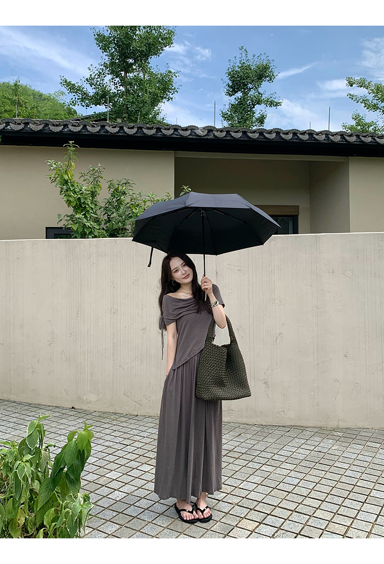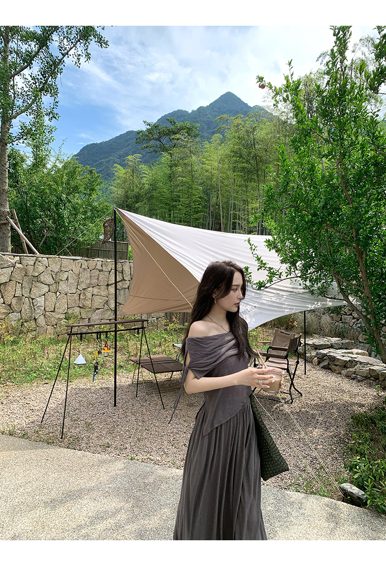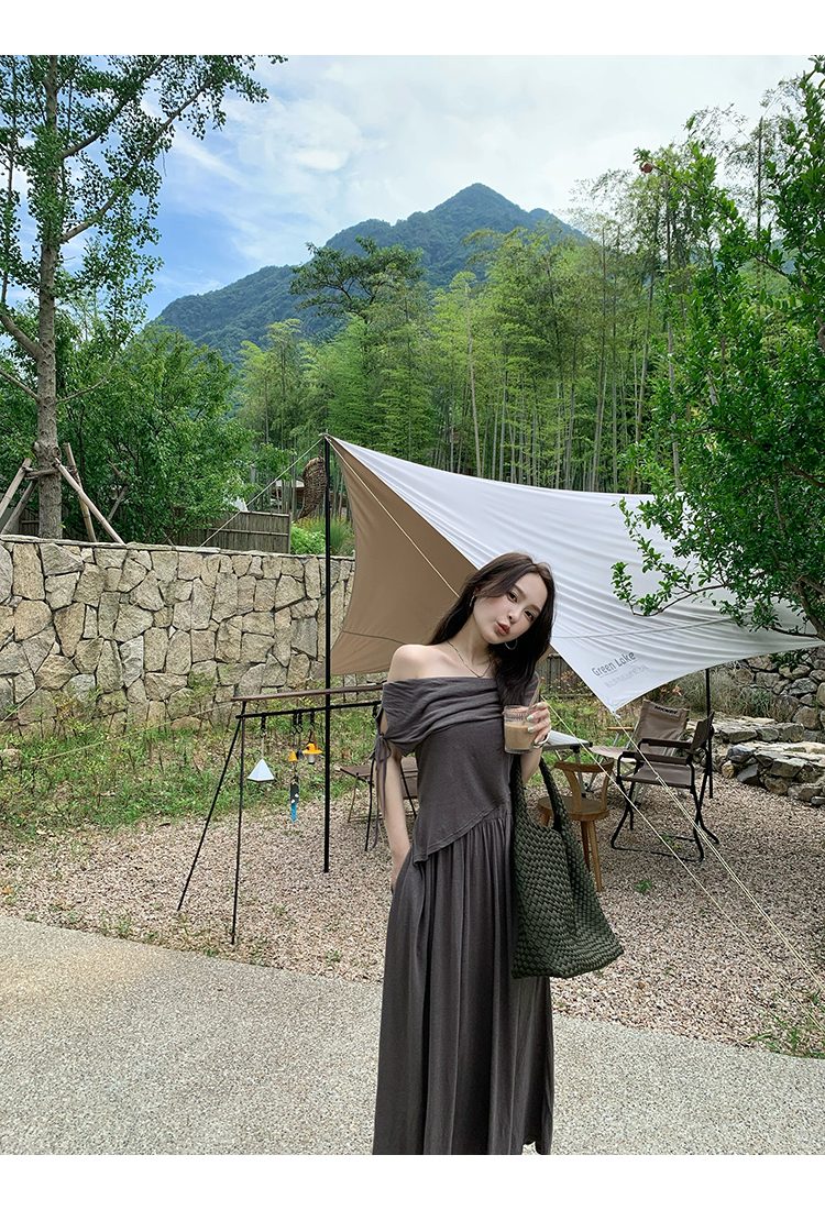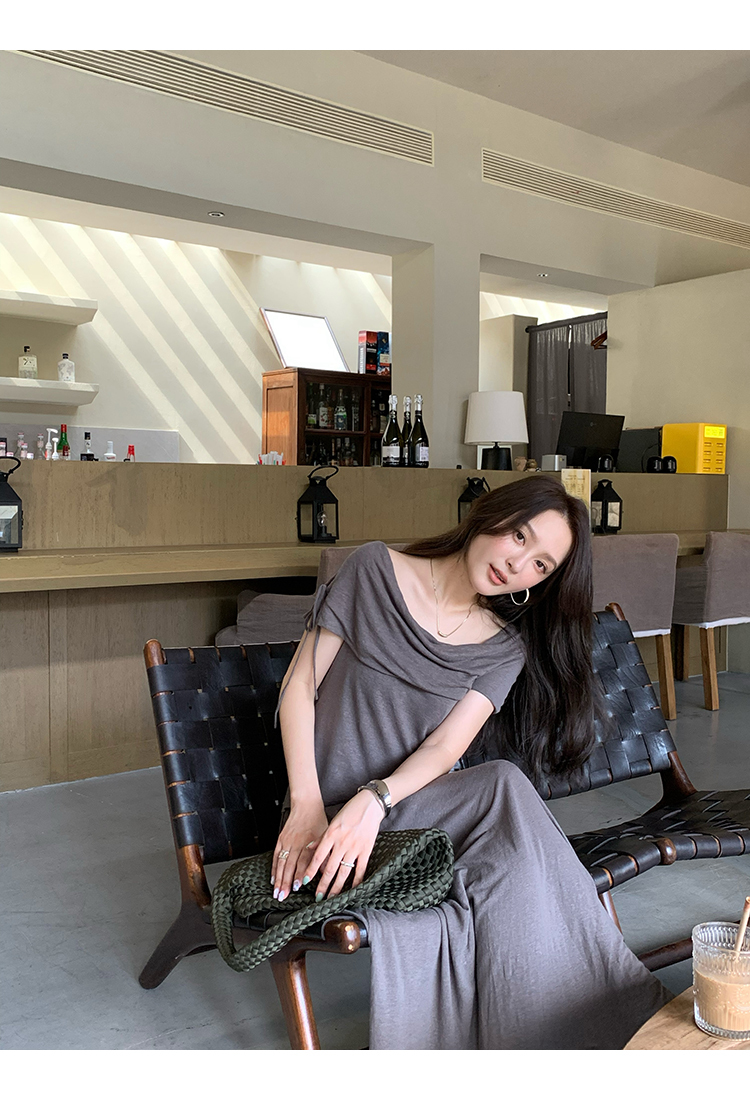 不規則斜邊一字領,修飾肩頸,露出迷人鎖骨