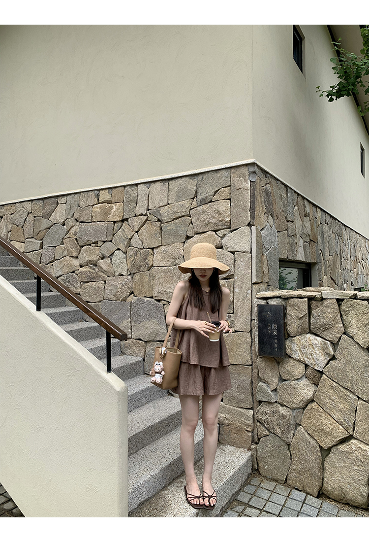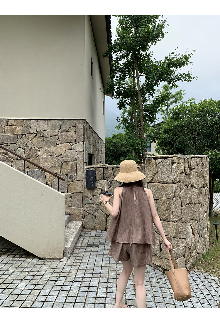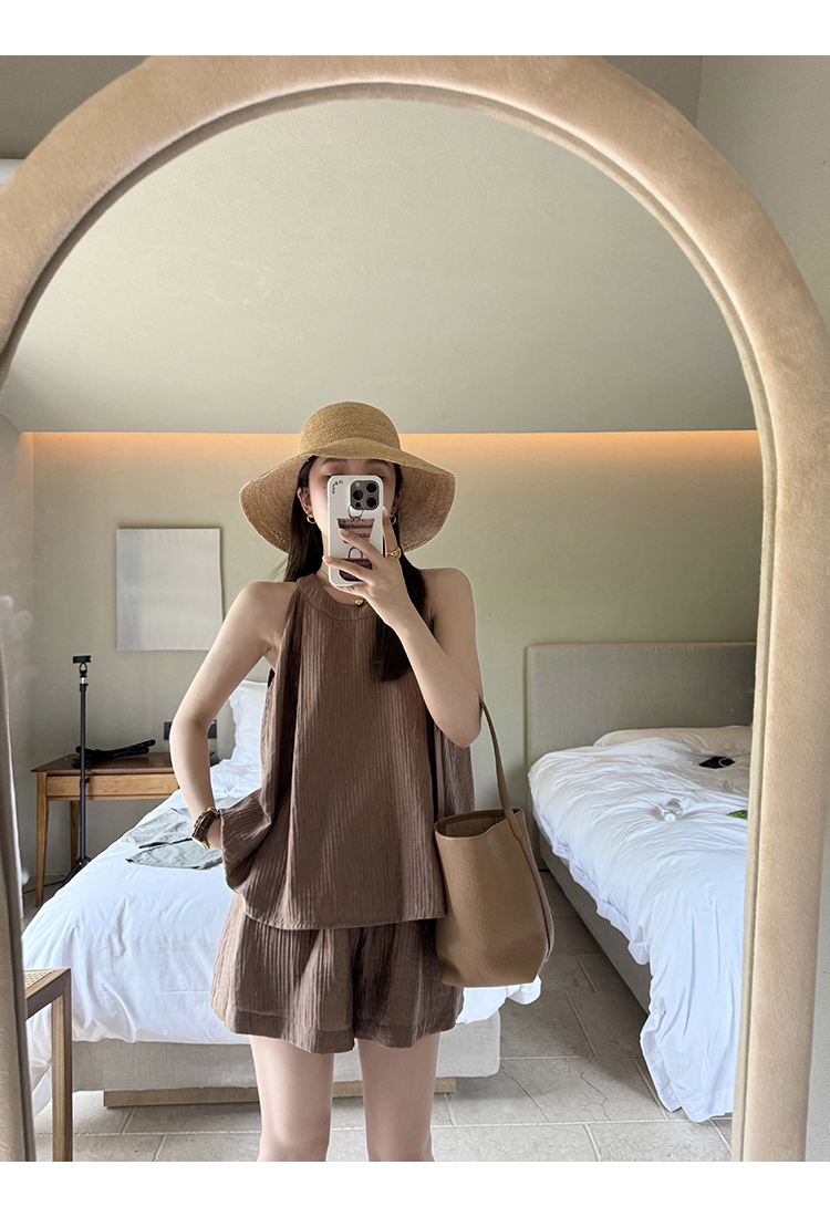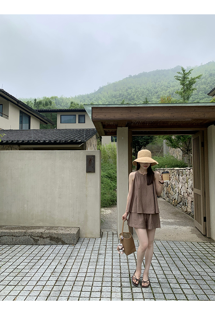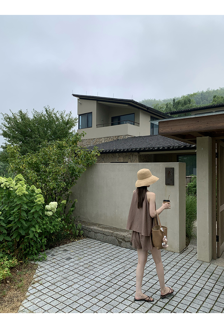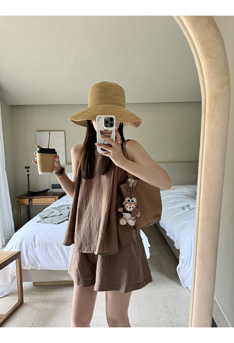*o-ha-you*【FMQD2042075】奧斯丁茶歇會呼吸的天絲cleanfit鬆弛感套裝掛脖上衣/短褲