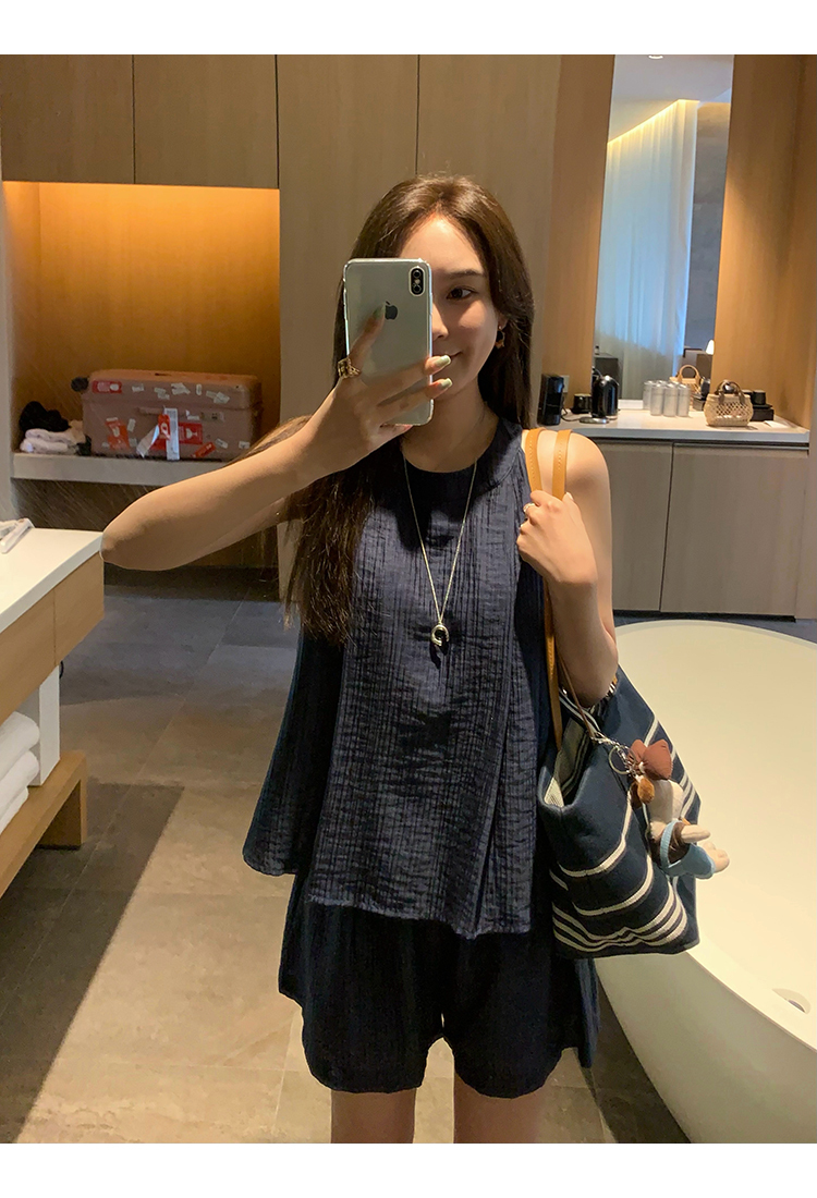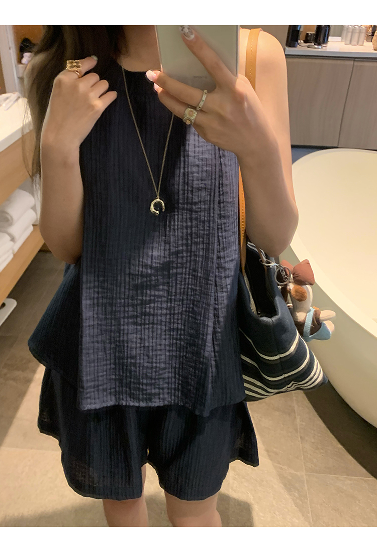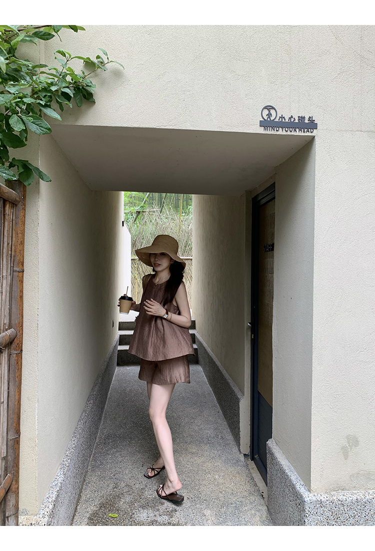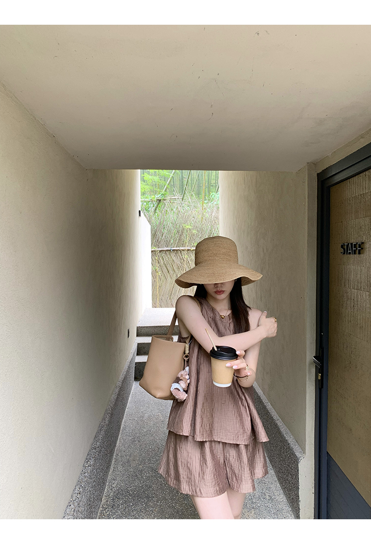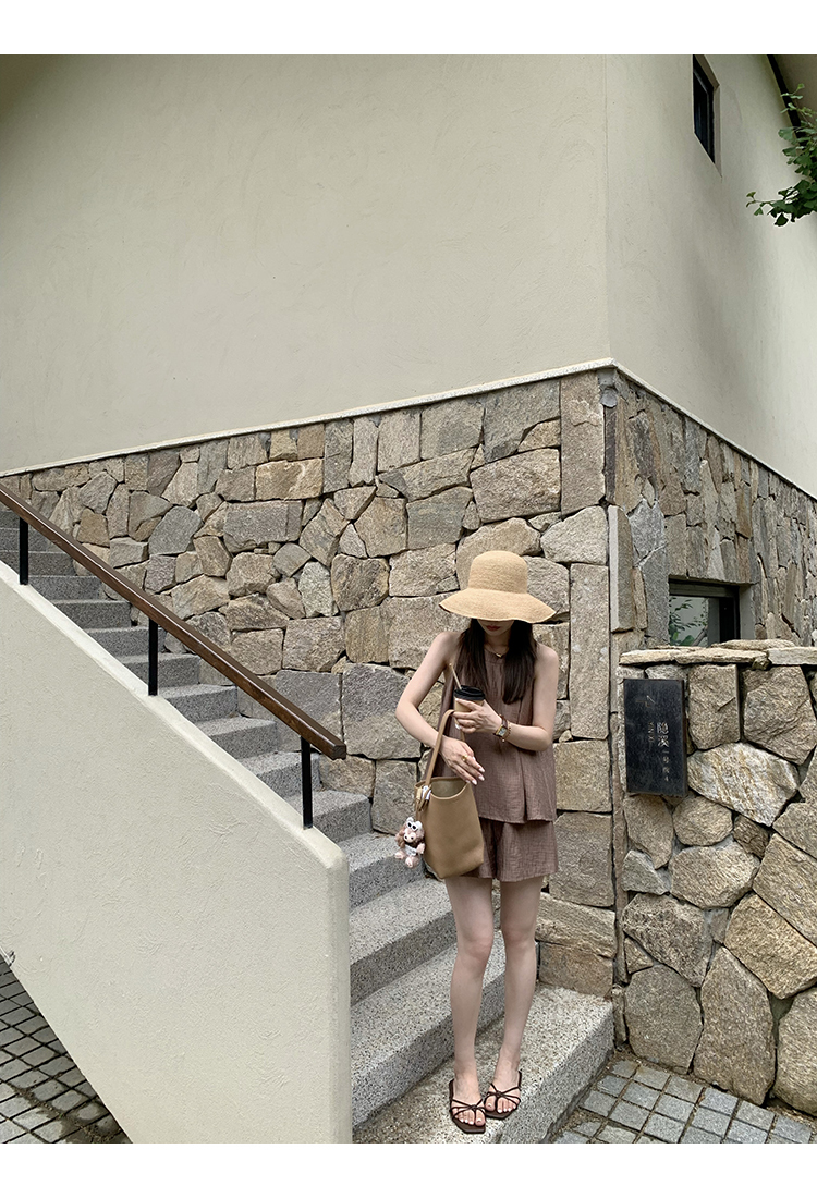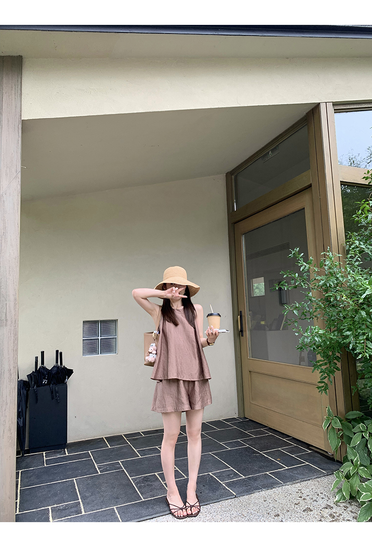 *o-ha-you*【FMQD2042075】奧斯丁茶歇會呼吸的天絲cleanfit鬆弛感套裝掛脖上衣/短褲