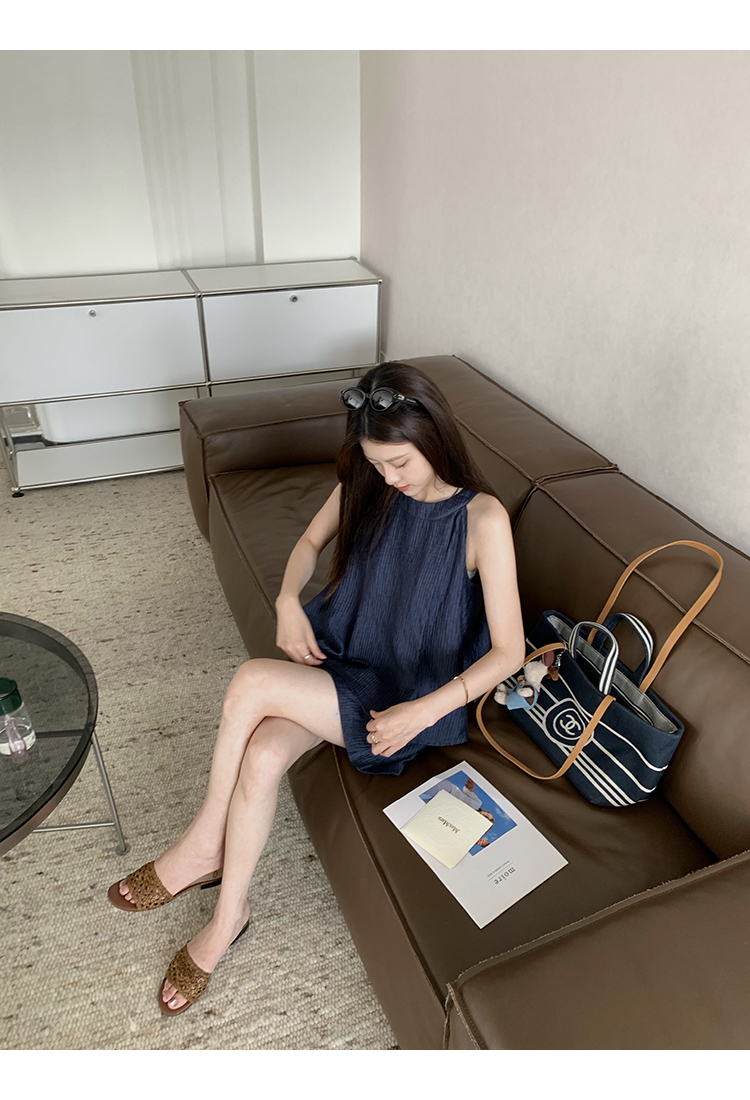 紐帶設計後領口添加扣環設計,簡約大氣穿脫方便