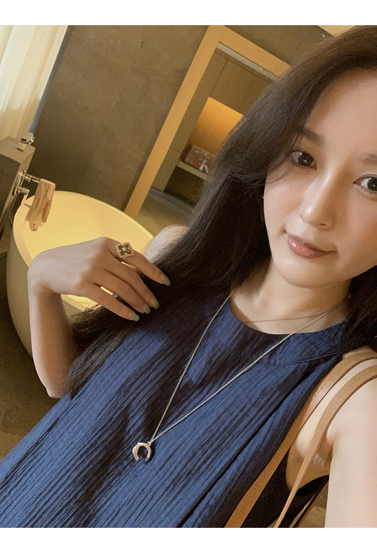 領型設計經典圓領設計,領口褶皺增加了層次感