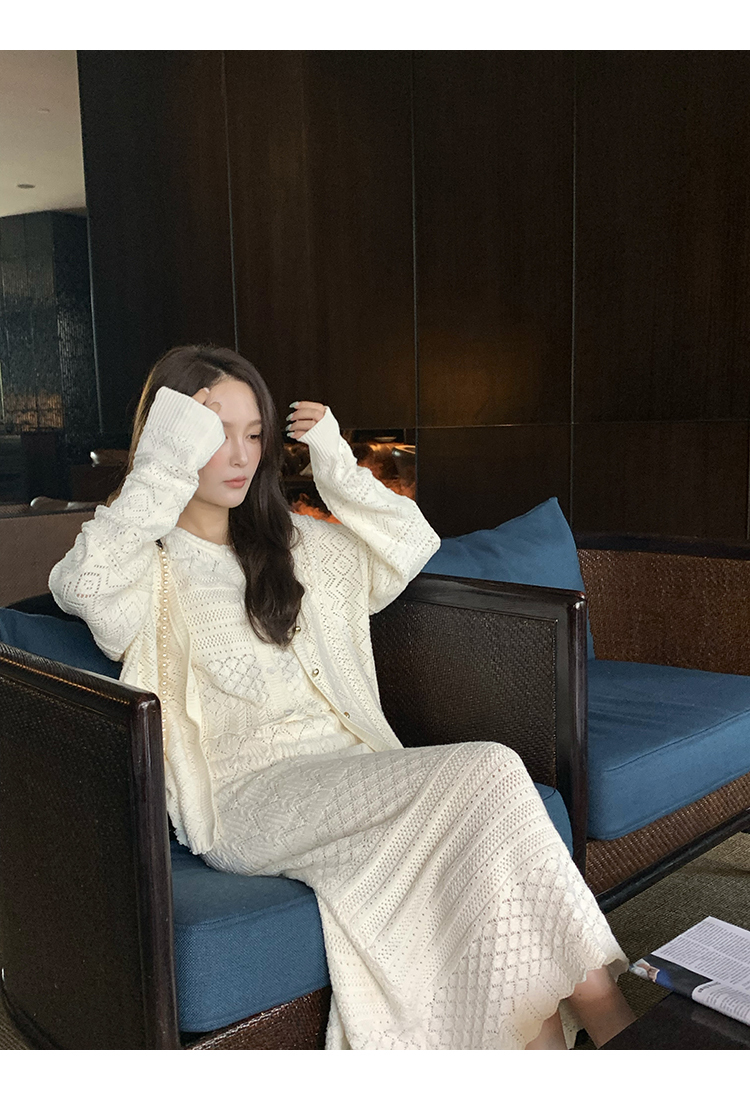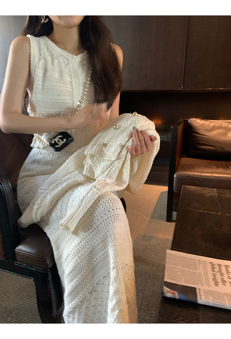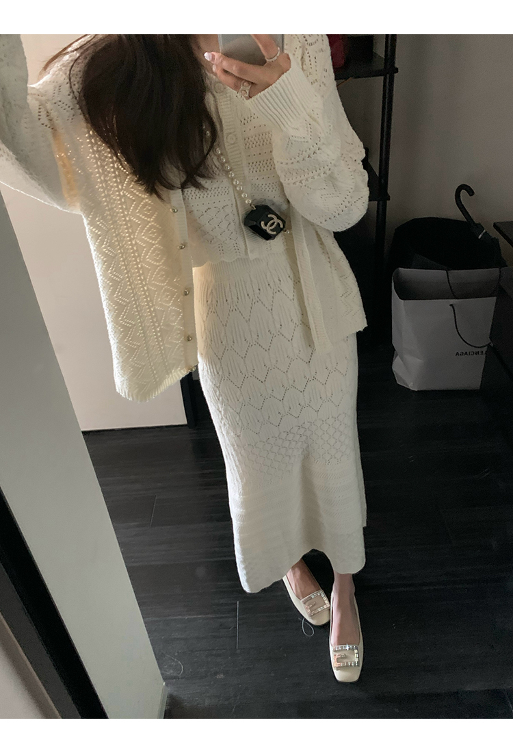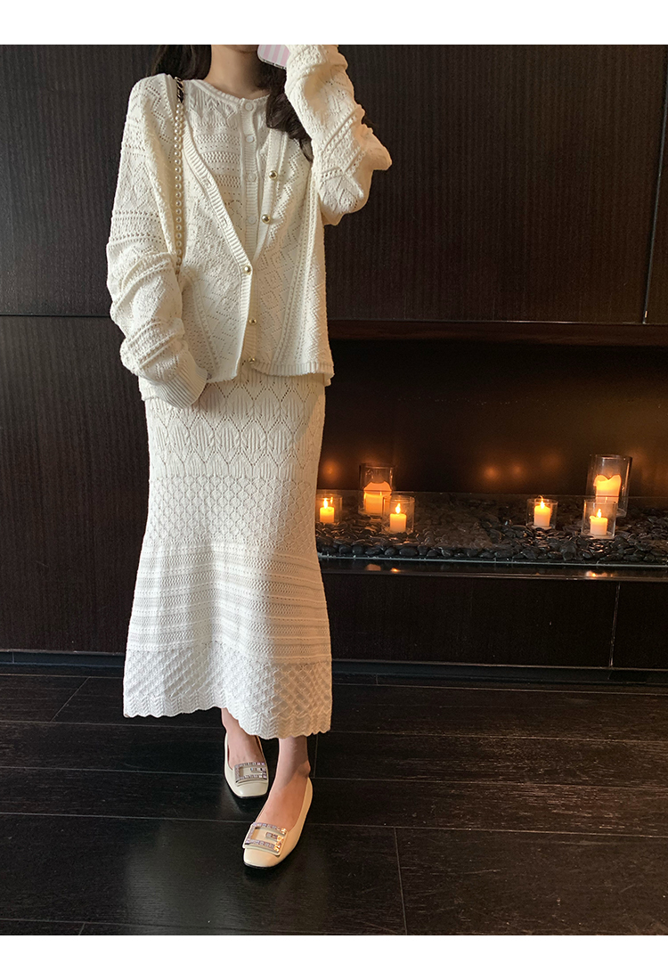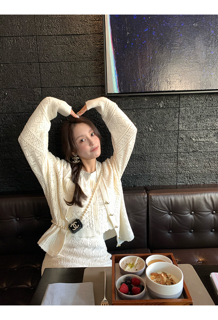 *o-ha-you*【FMQD2043018】巴黎來信溫柔白月光針織套裝重工法式鏤空開襟衫/背心/半身長裙