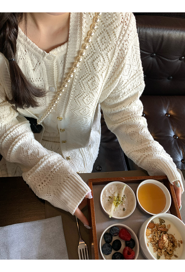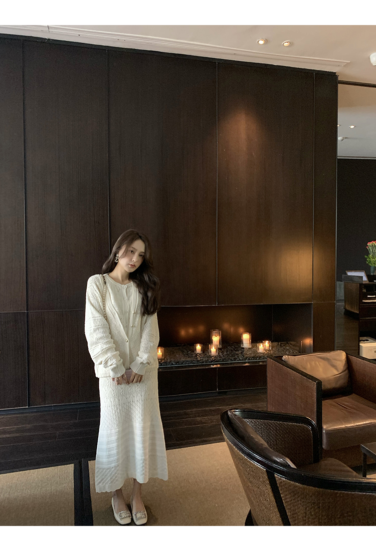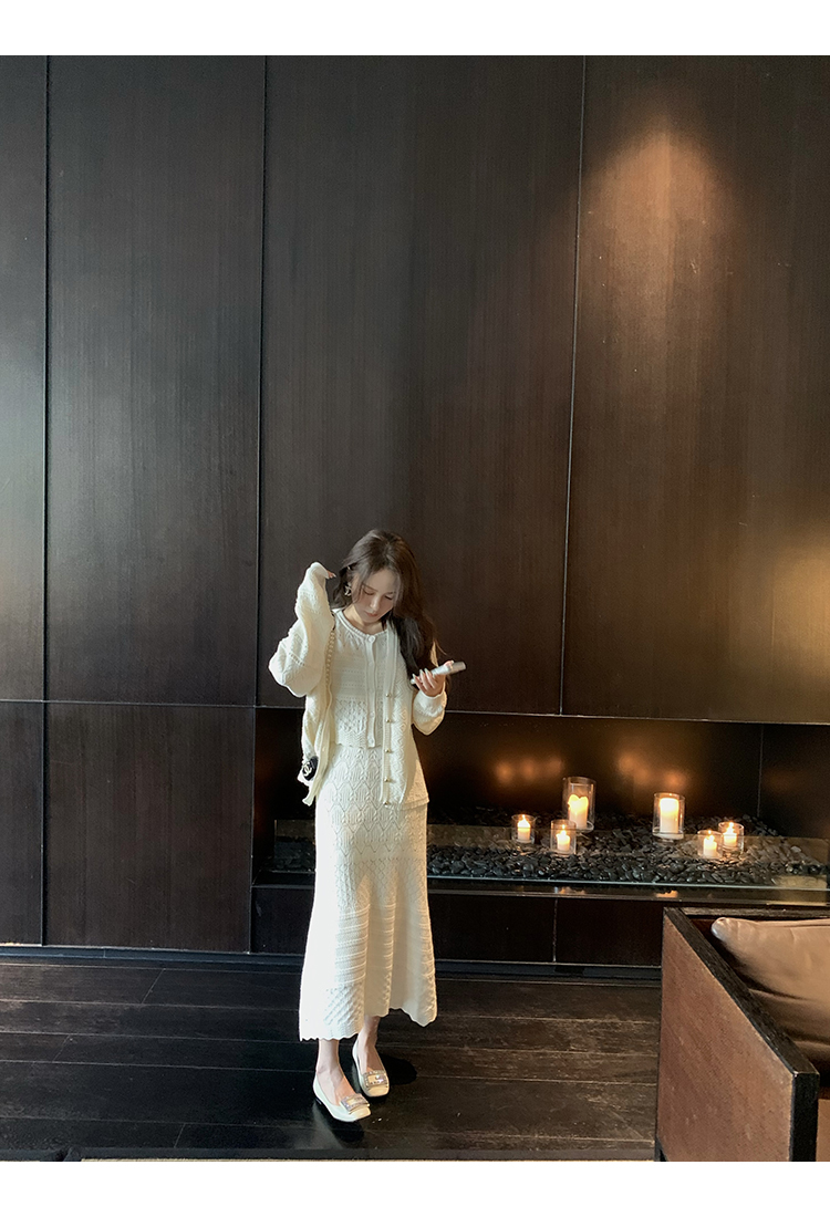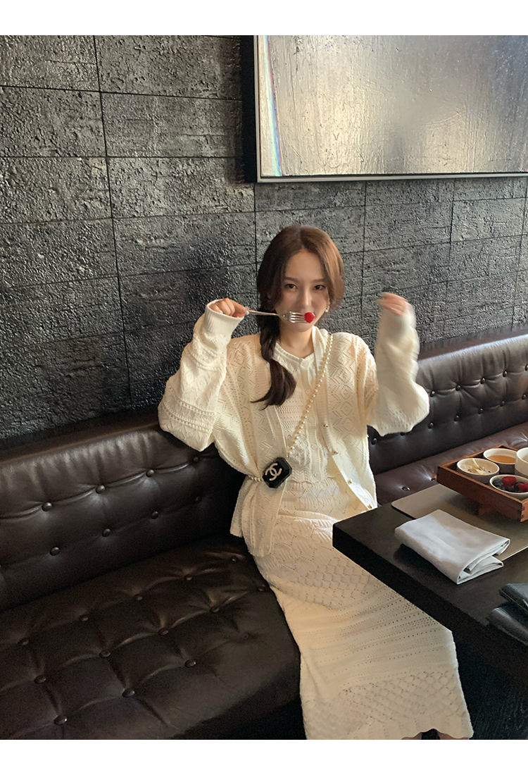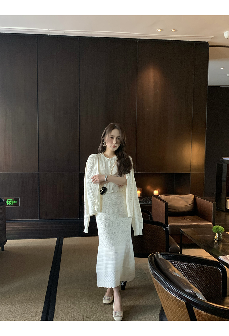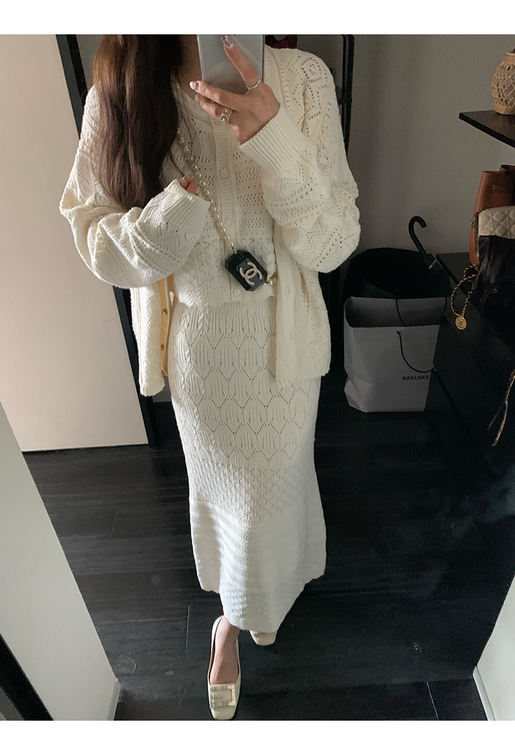 *o-ha-you*【FMQD2043018】巴黎來信溫柔白月光針織套裝重工法式鏤空開襟衫/背心/半身長裙