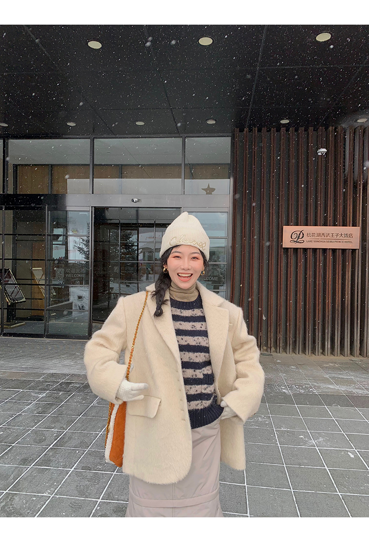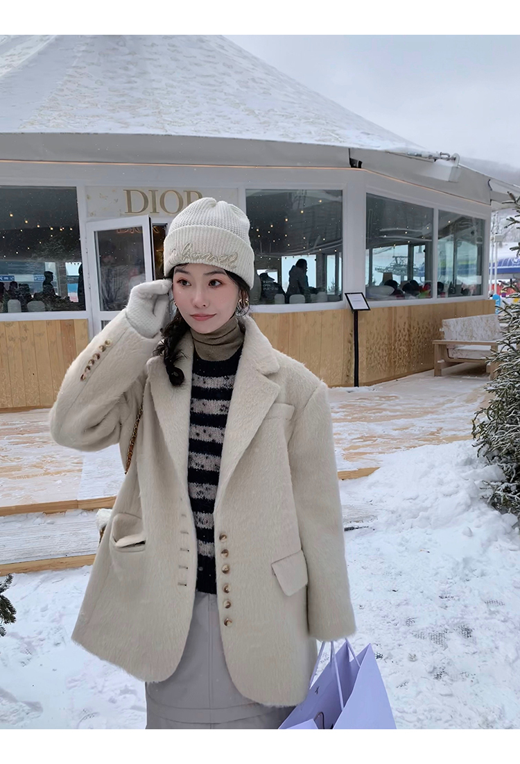 浅驼底黑点面料成分 : 58%绵羊毛 24.7%羊驼毛 17.3%锦纶