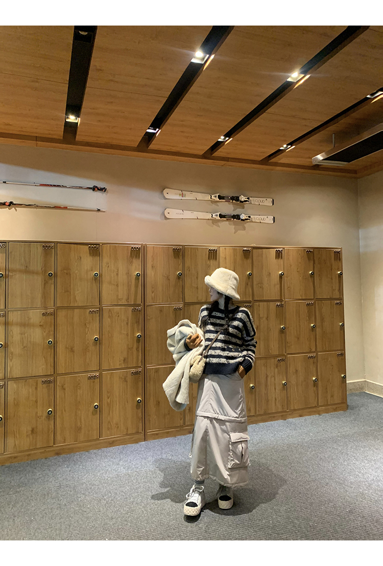 口袋设计前片制作了两个对条贴袋设计,层次感更强烈