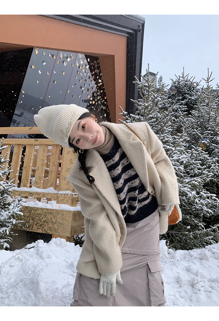黑驼夹条面料成分 : 纱线1 58%绵羊毛 24.7% 羊驼毛 17.3%锦纶