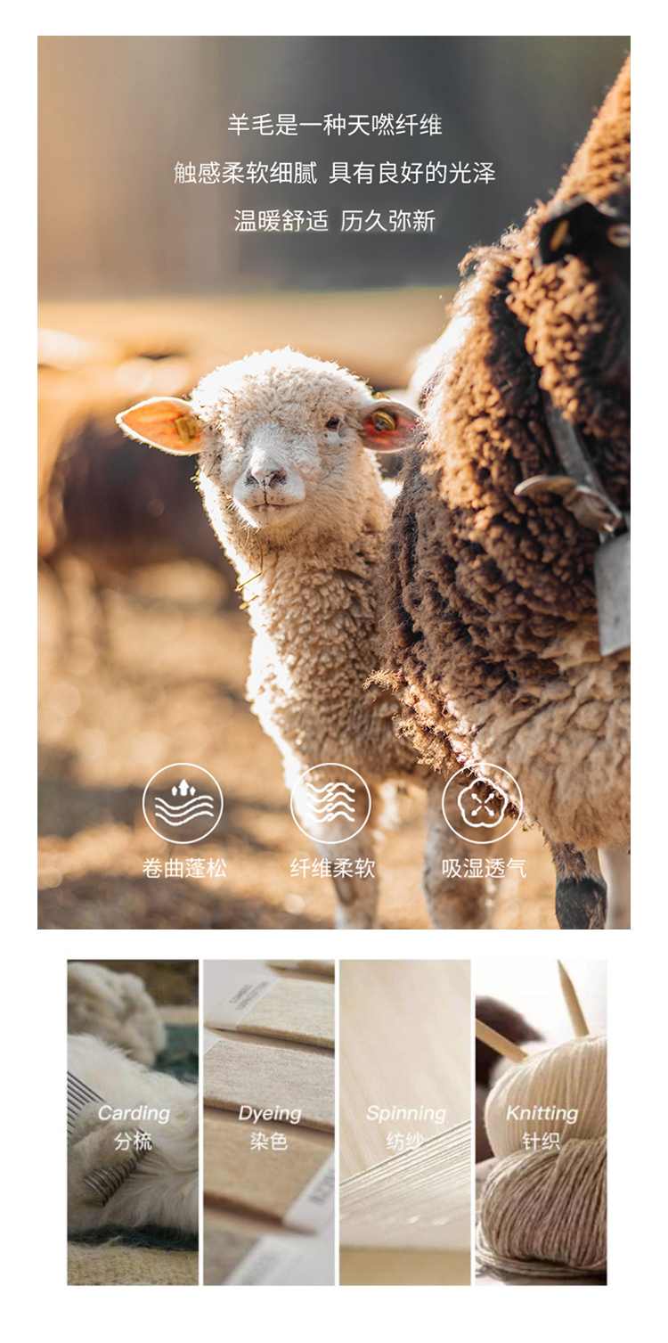 使得面料具有芨高的柔软性和舒适性。 羊毛本身具备吸水性,