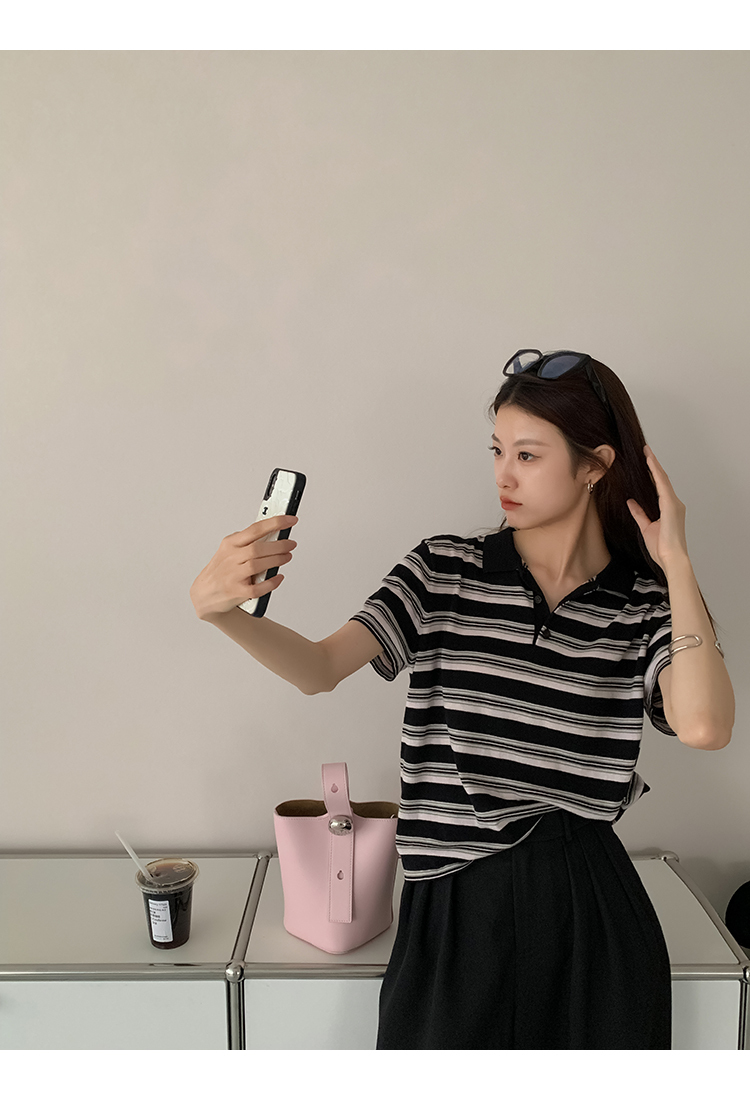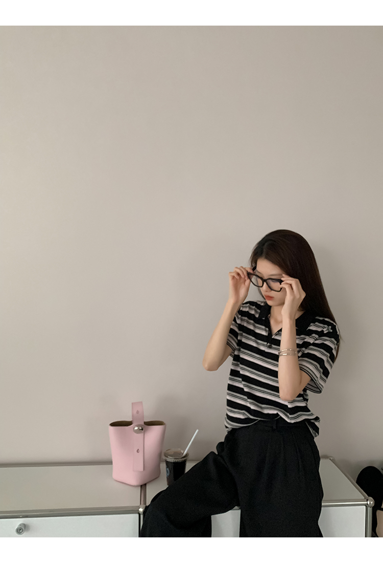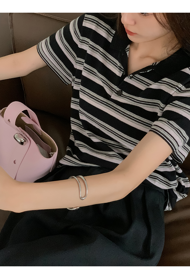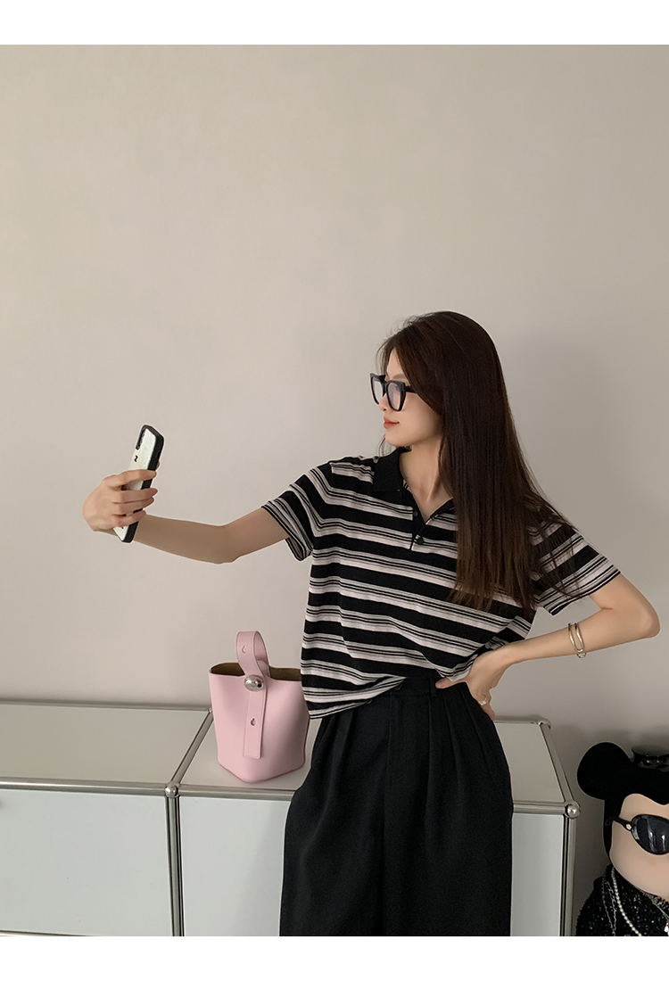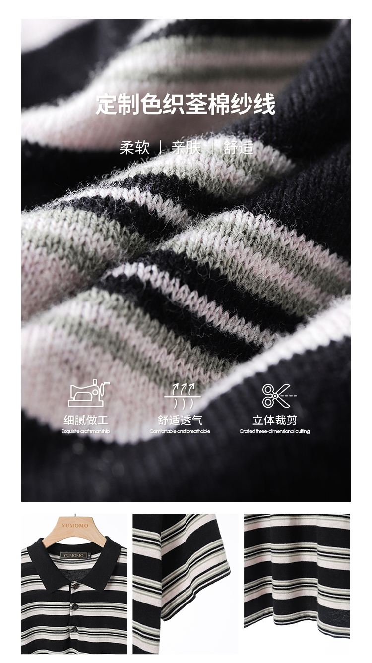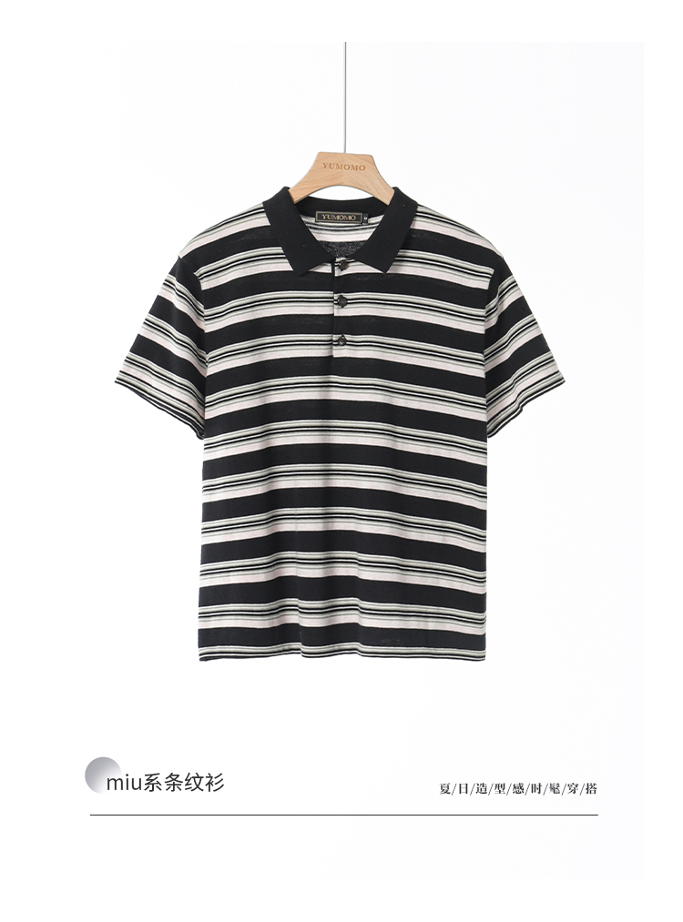 *o-ha-you*【FMQH2042017】miu系條紋衫訂製色織全棉重工提花寬鬆休閒polo上衣