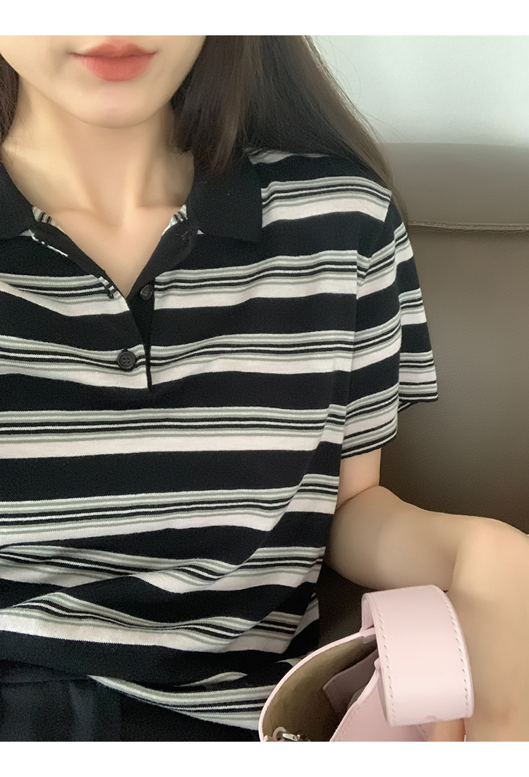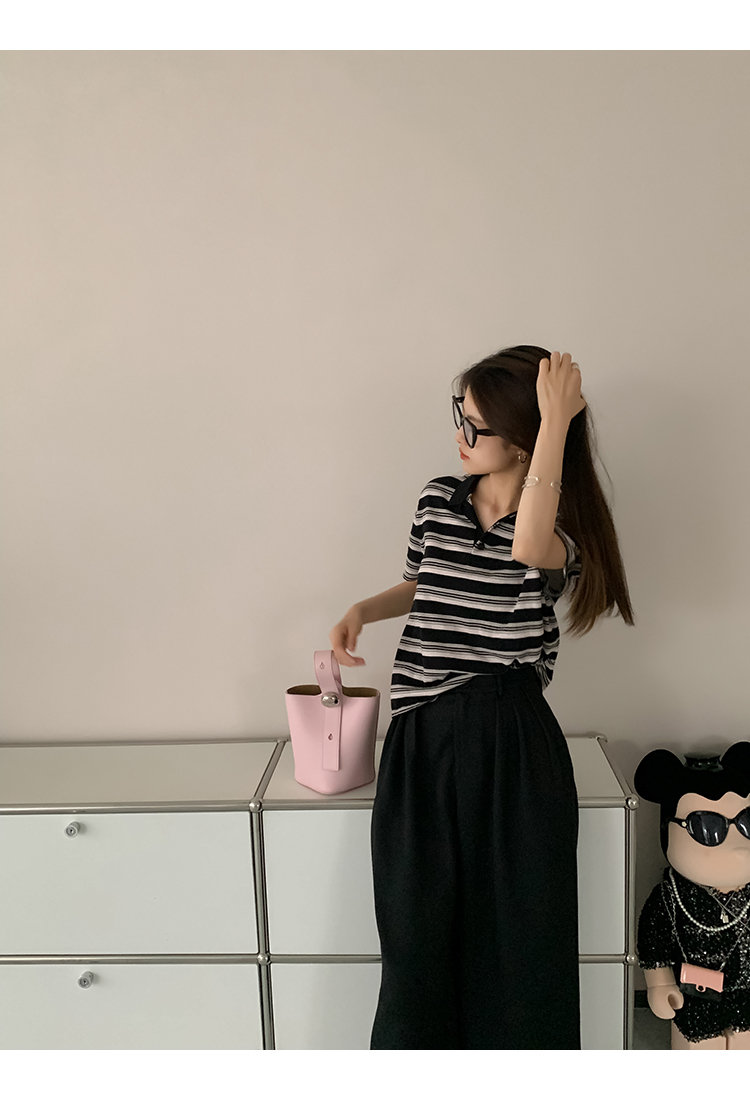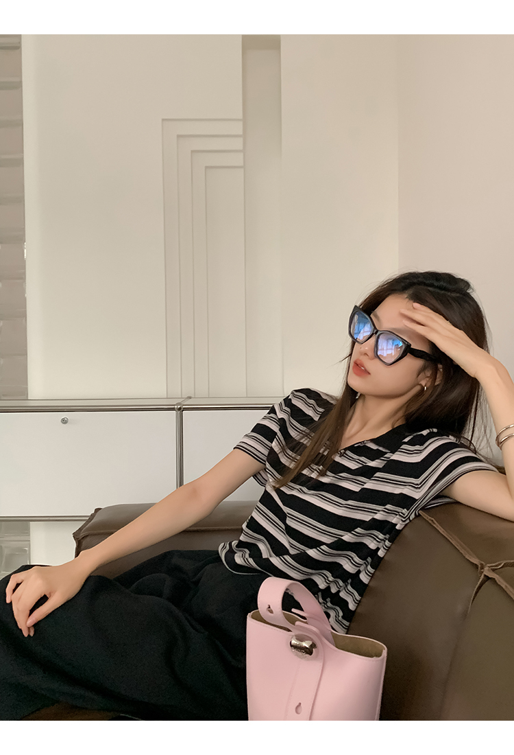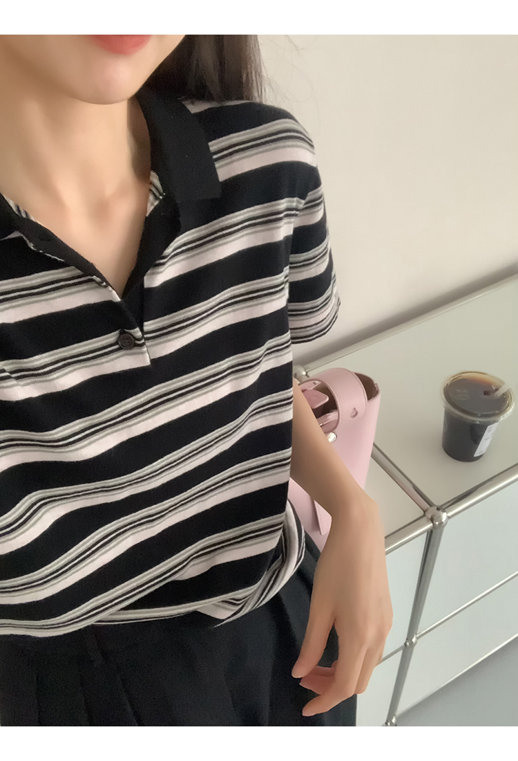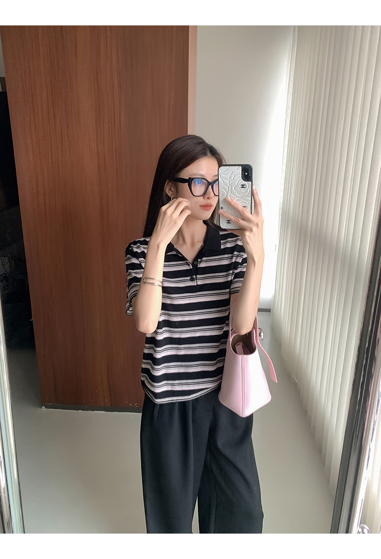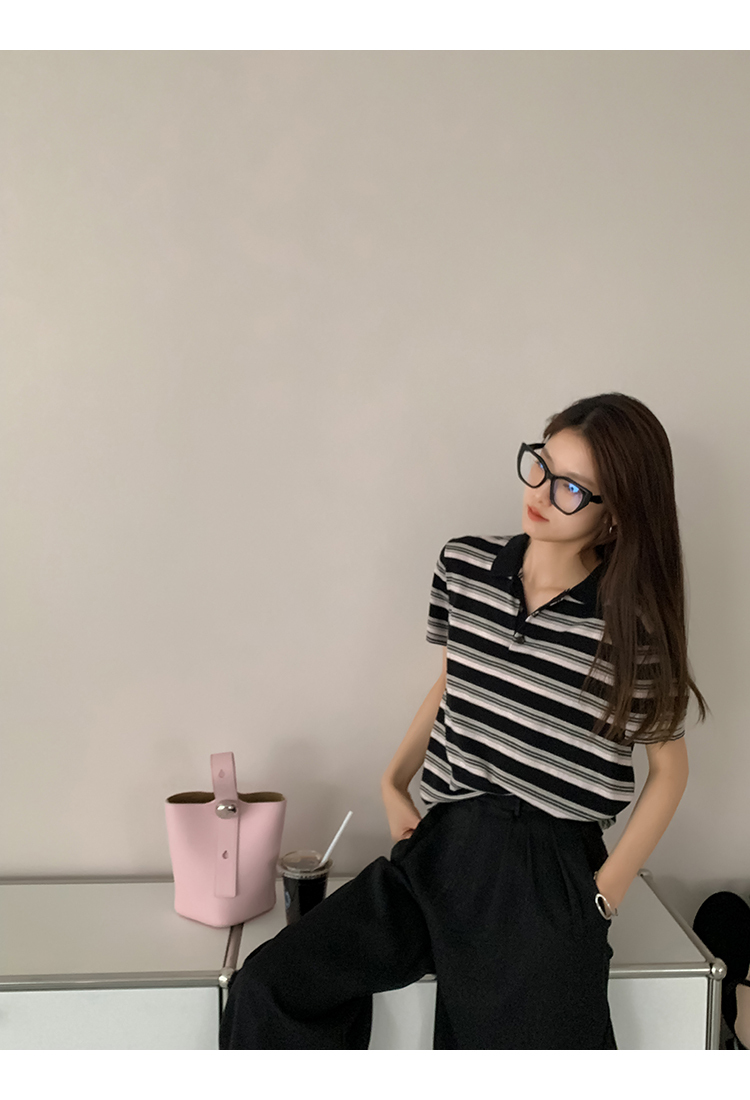 *o-ha-you*【FMQH2042017】miu系條紋衫訂製色織全棉重工提花寬鬆休閒polo上衣