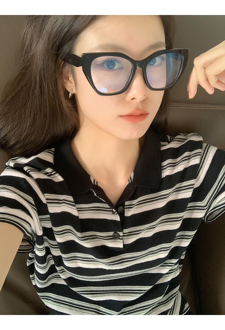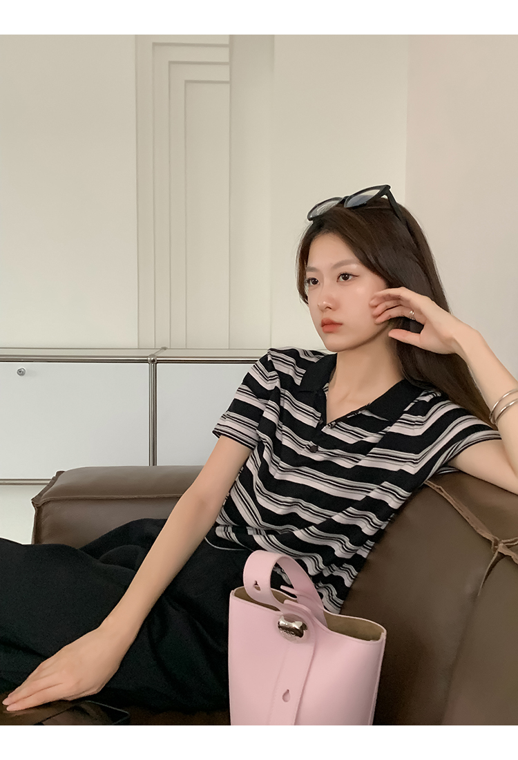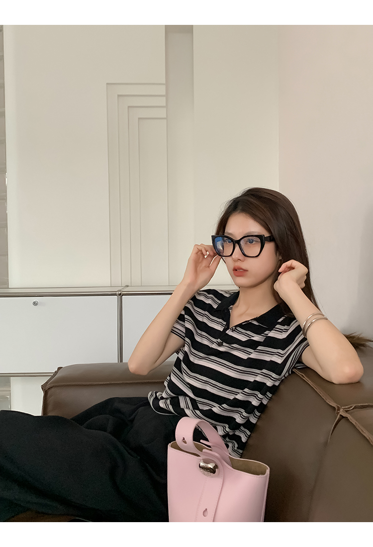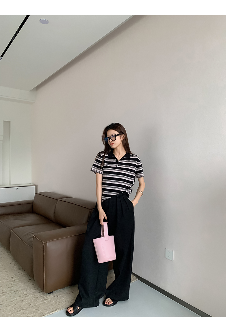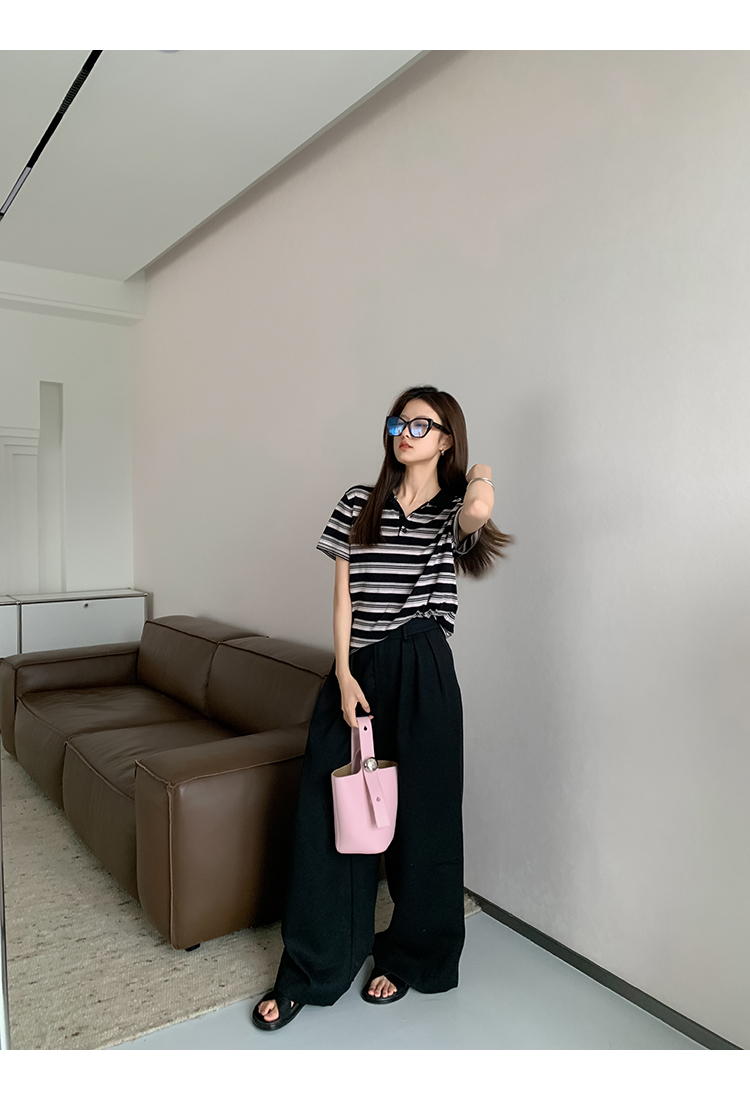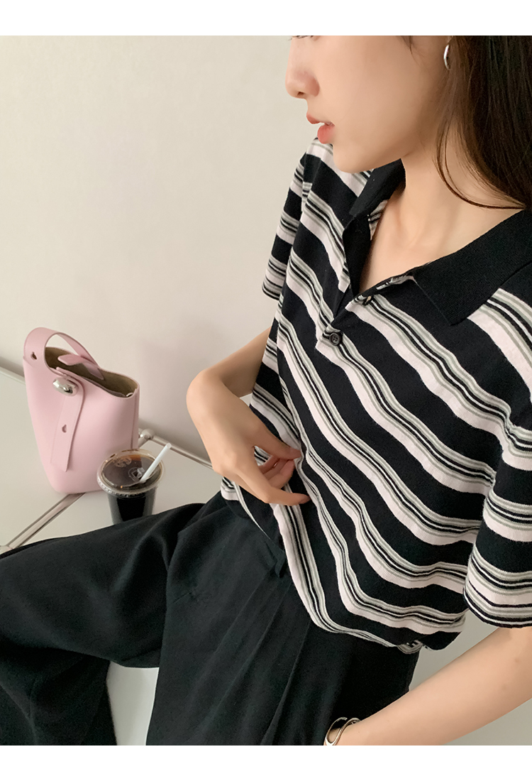 *o-ha-you*【FMQH2042017】miu系條紋衫訂製色織全棉重工提花寬鬆休閒polo上衣
