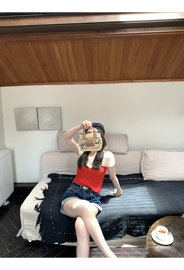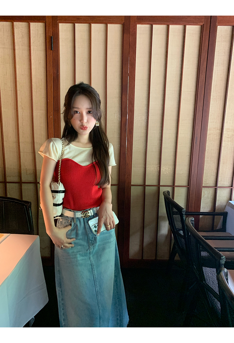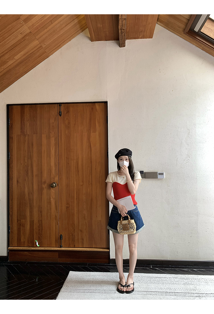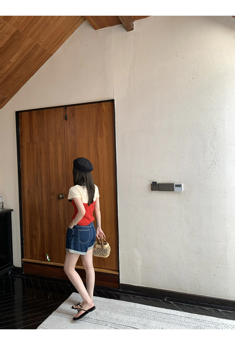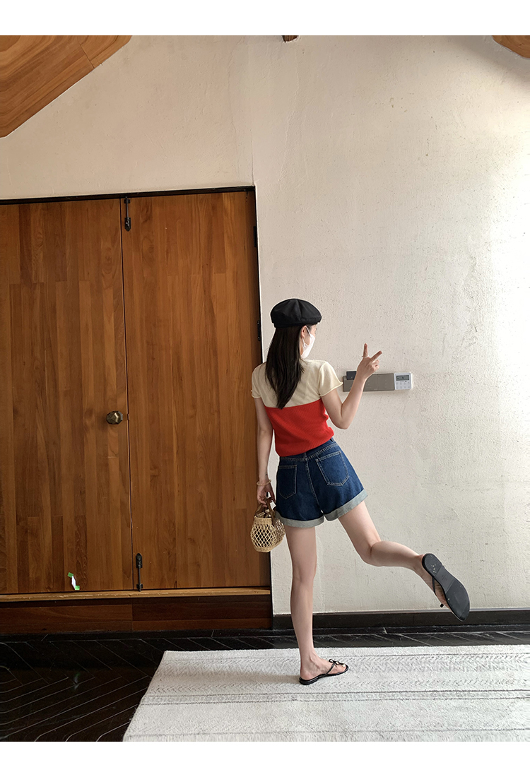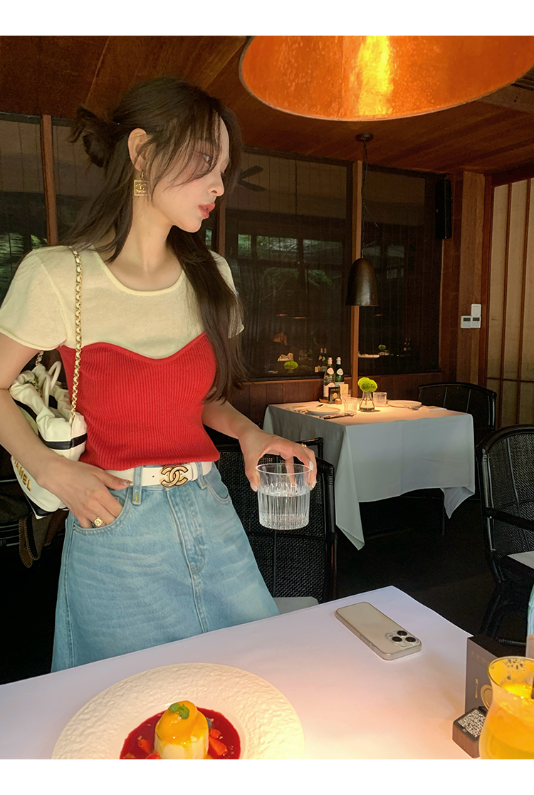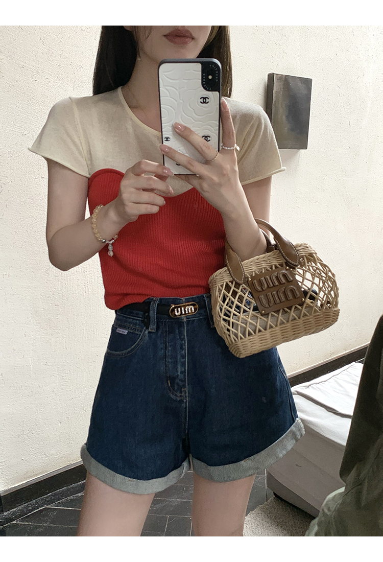 *o-ha-you*【FMQH2042019】夏日熱戀訂製亞麻萊賽爾假兩件針織T恤/純棉翻折牛仔短褲