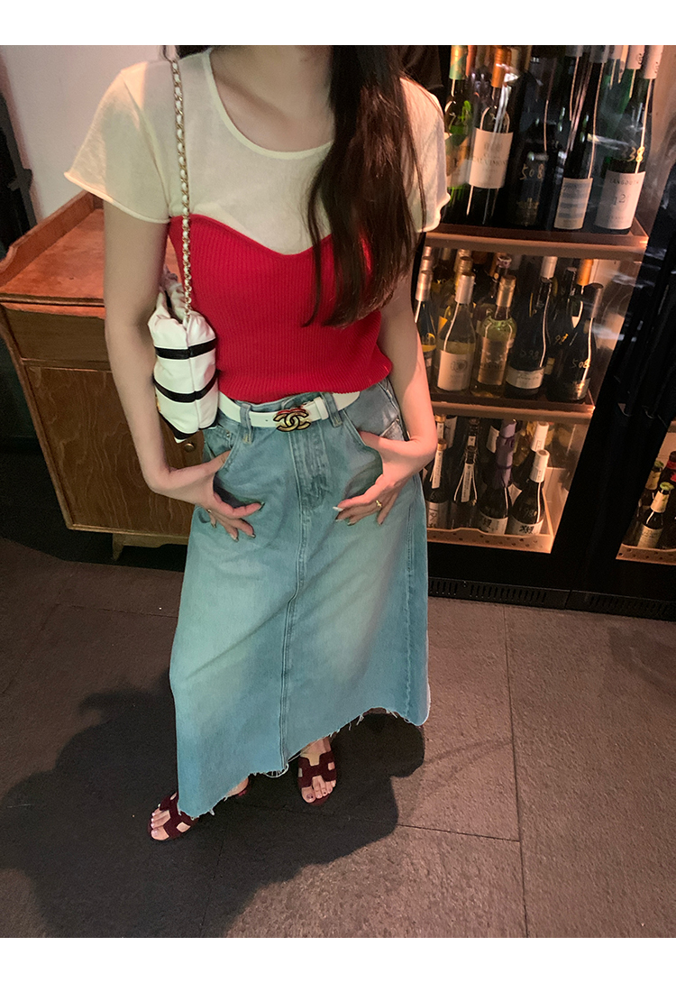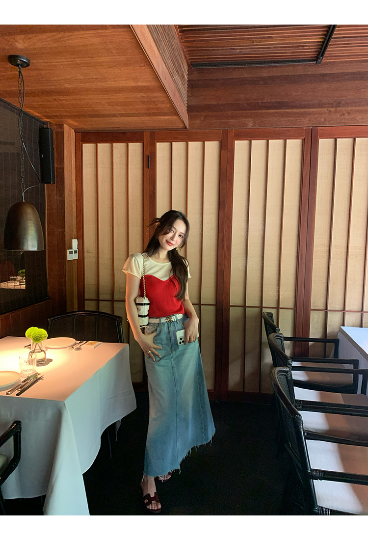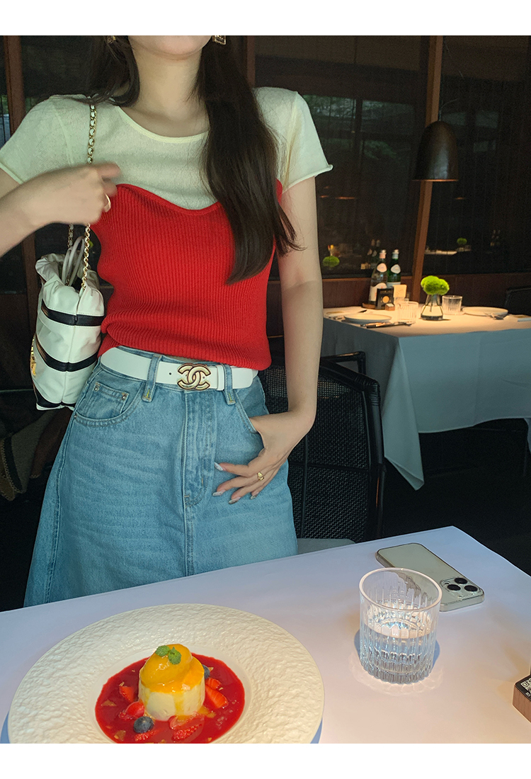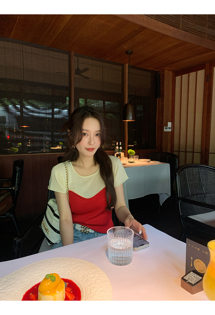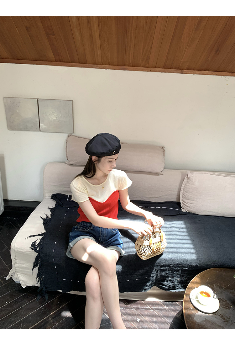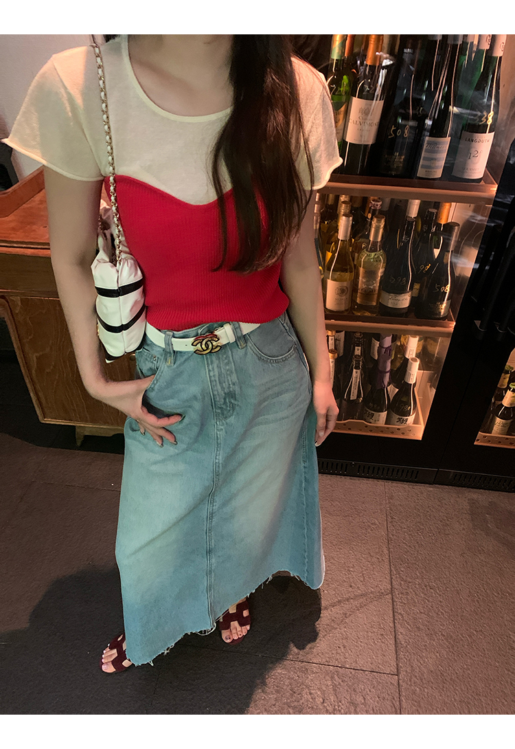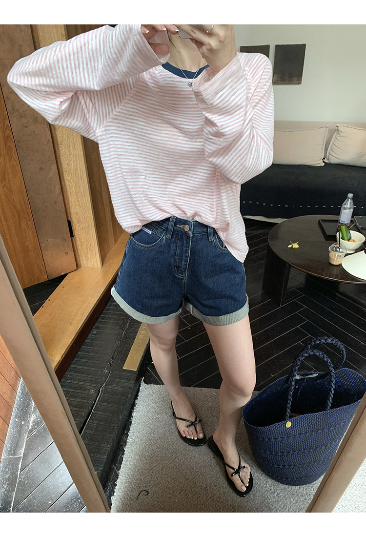 *o-ha-you*【FMQH2042019】夏日熱戀訂製亞麻萊賽爾假兩件針織T恤/純棉翻折牛仔短褲