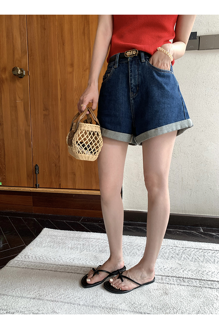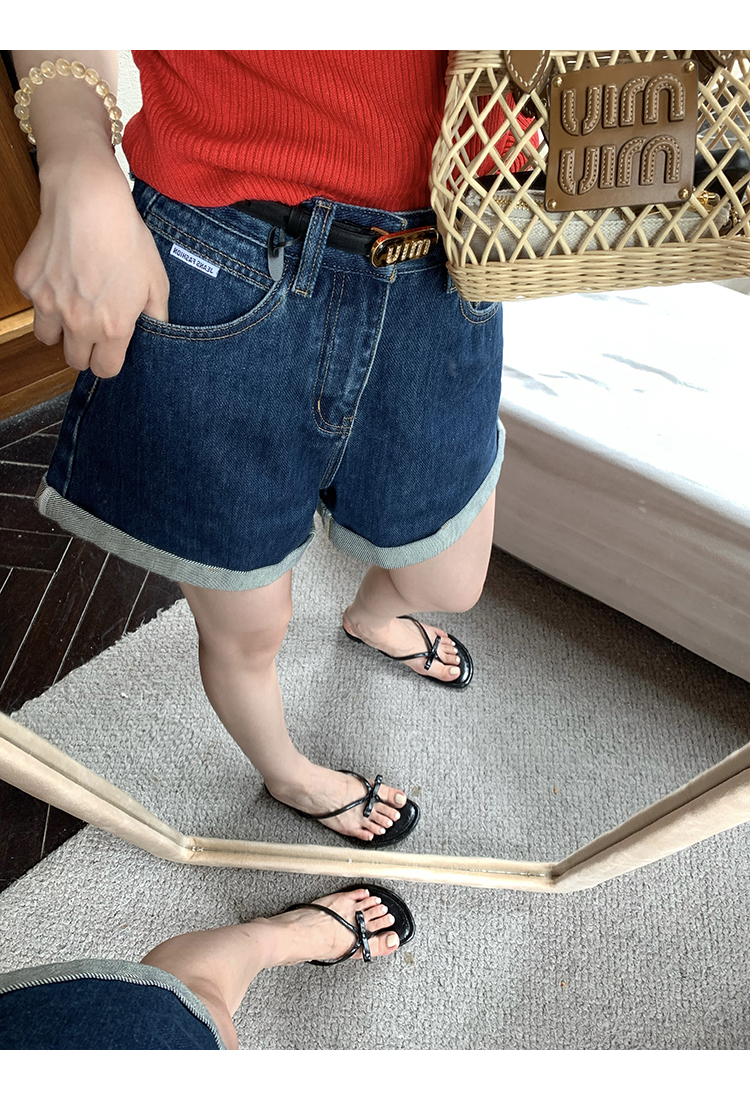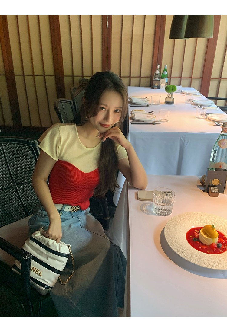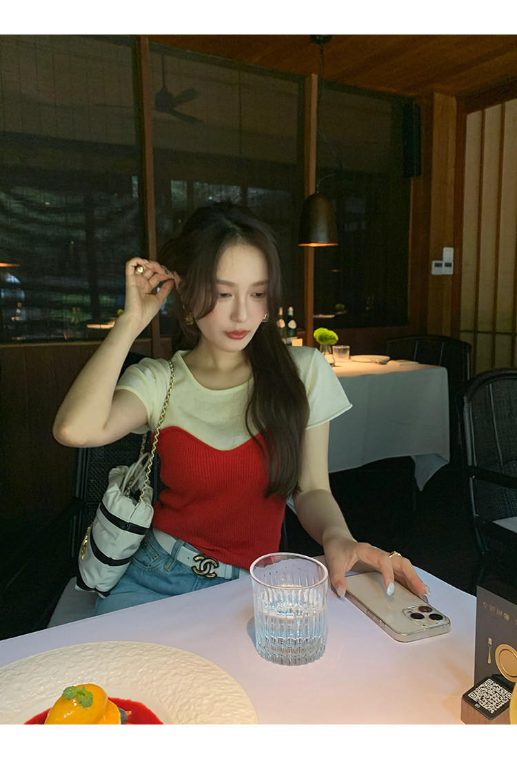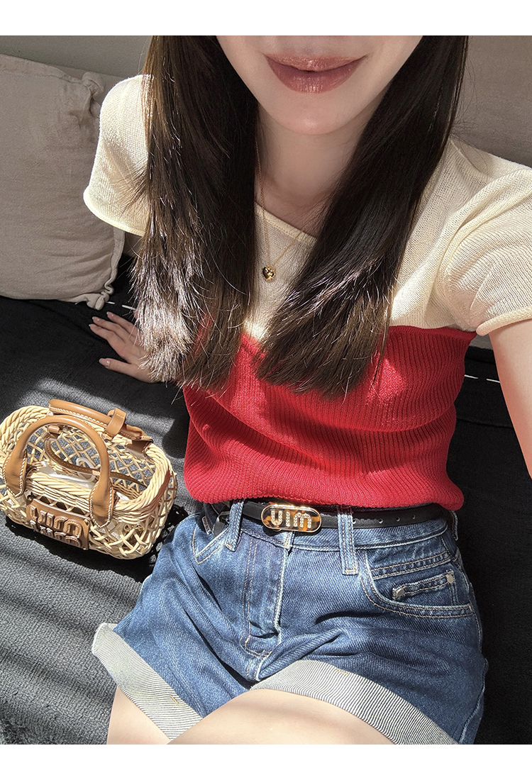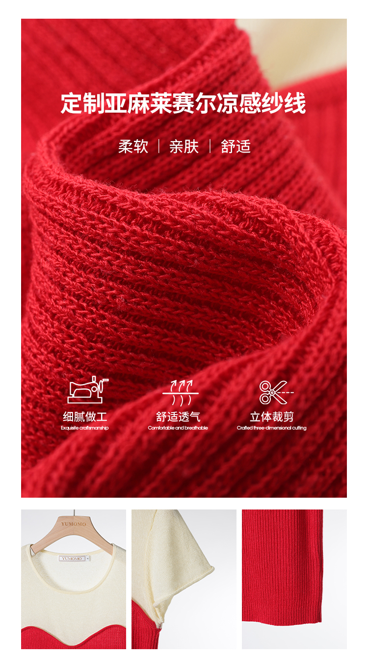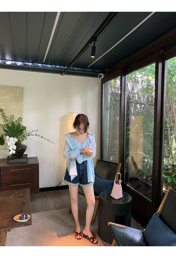 *o-ha-you*【FMQH2042019】夏日熱戀訂製亞麻萊賽爾假兩件針織T恤/純棉翻折牛仔短褲