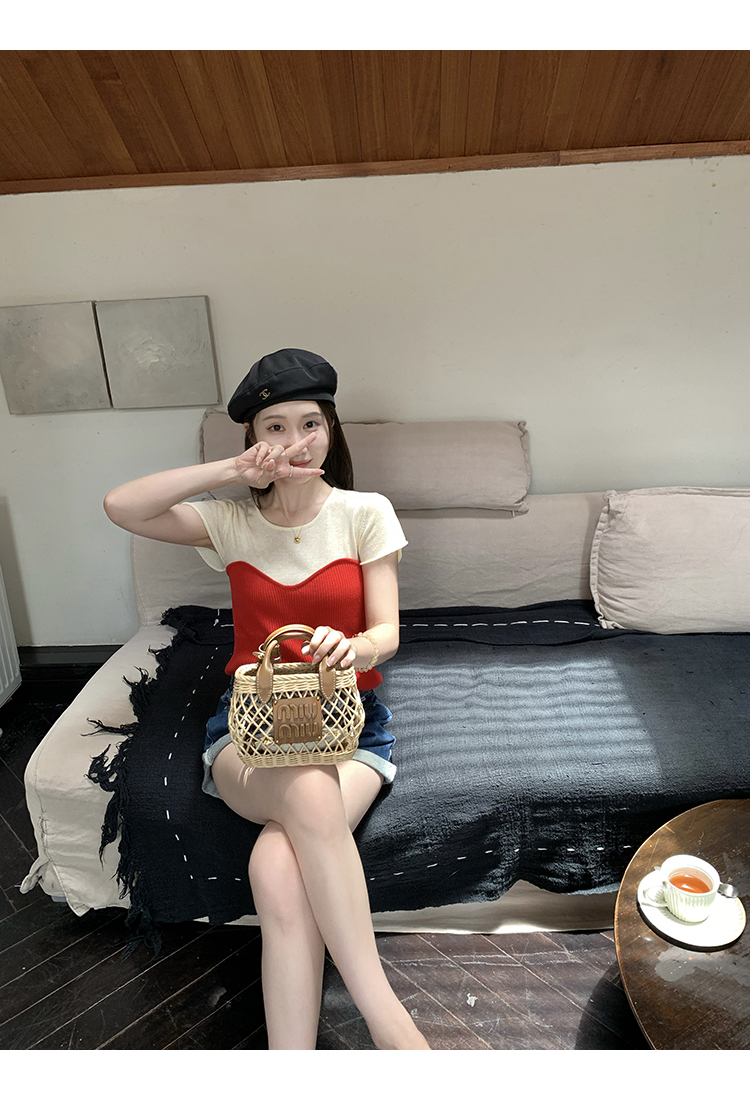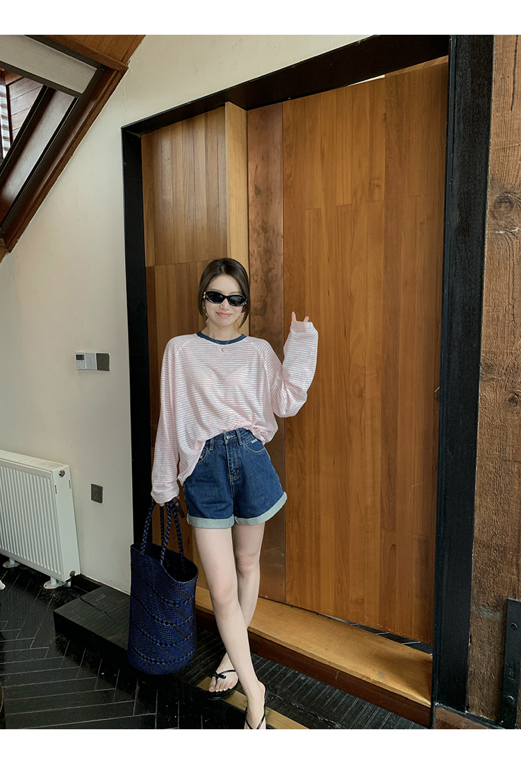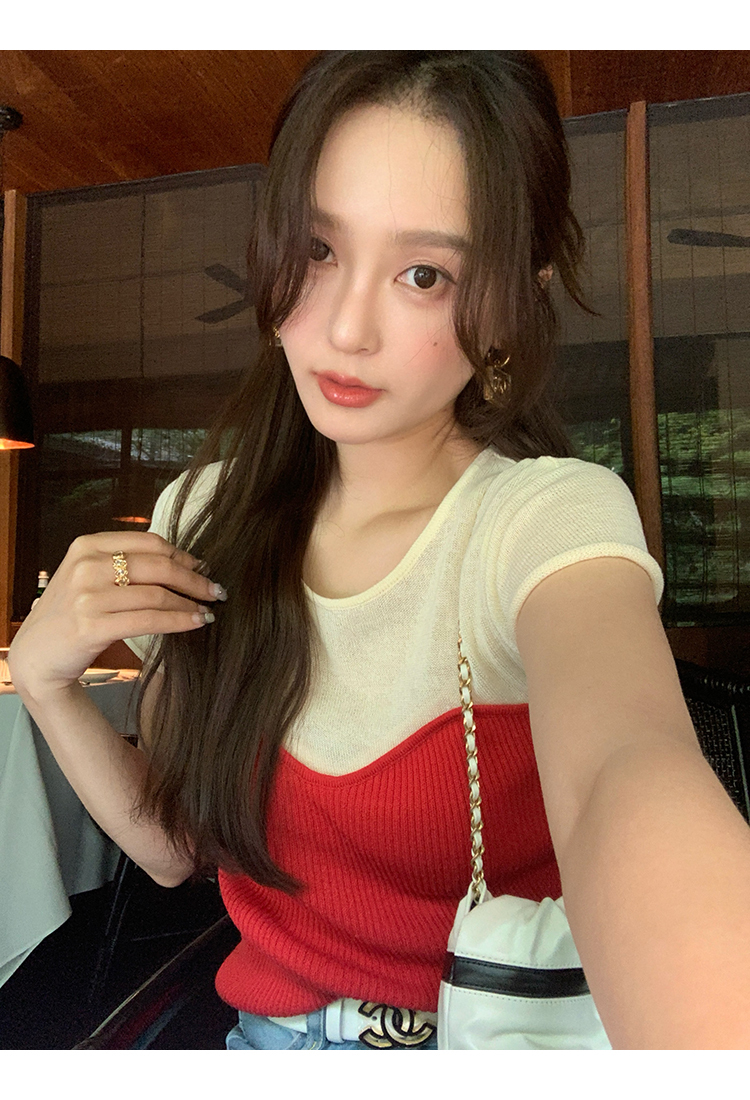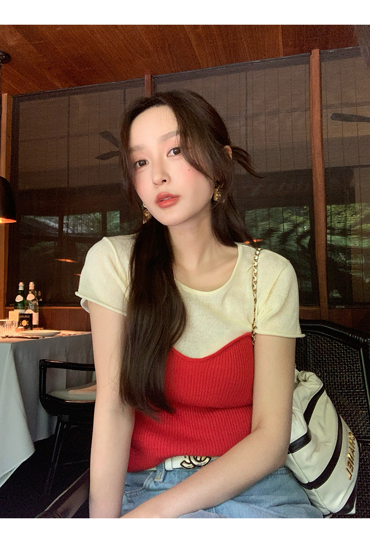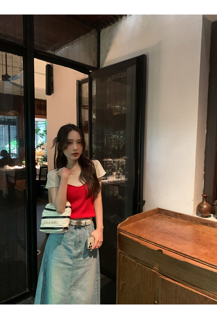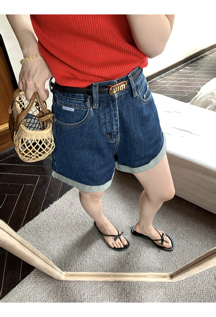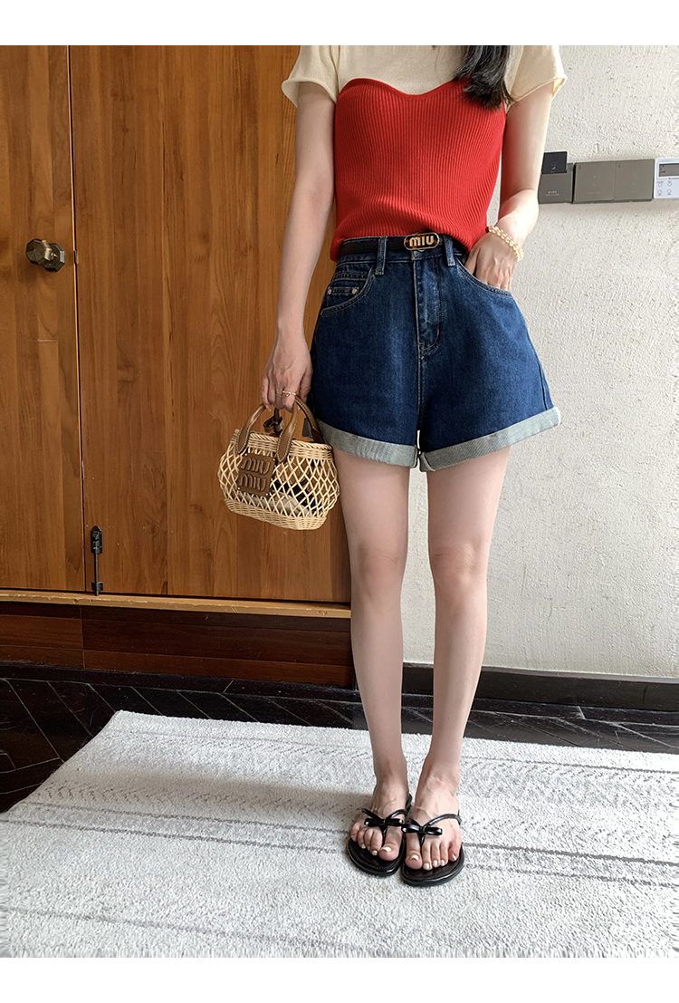 *o-ha-you*【FMQH2042019】夏日熱戀訂製亞麻萊賽爾假兩件針織T恤/純棉翻折牛仔短褲