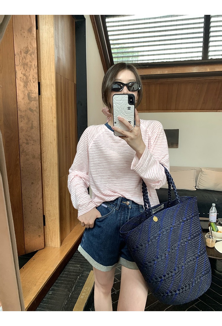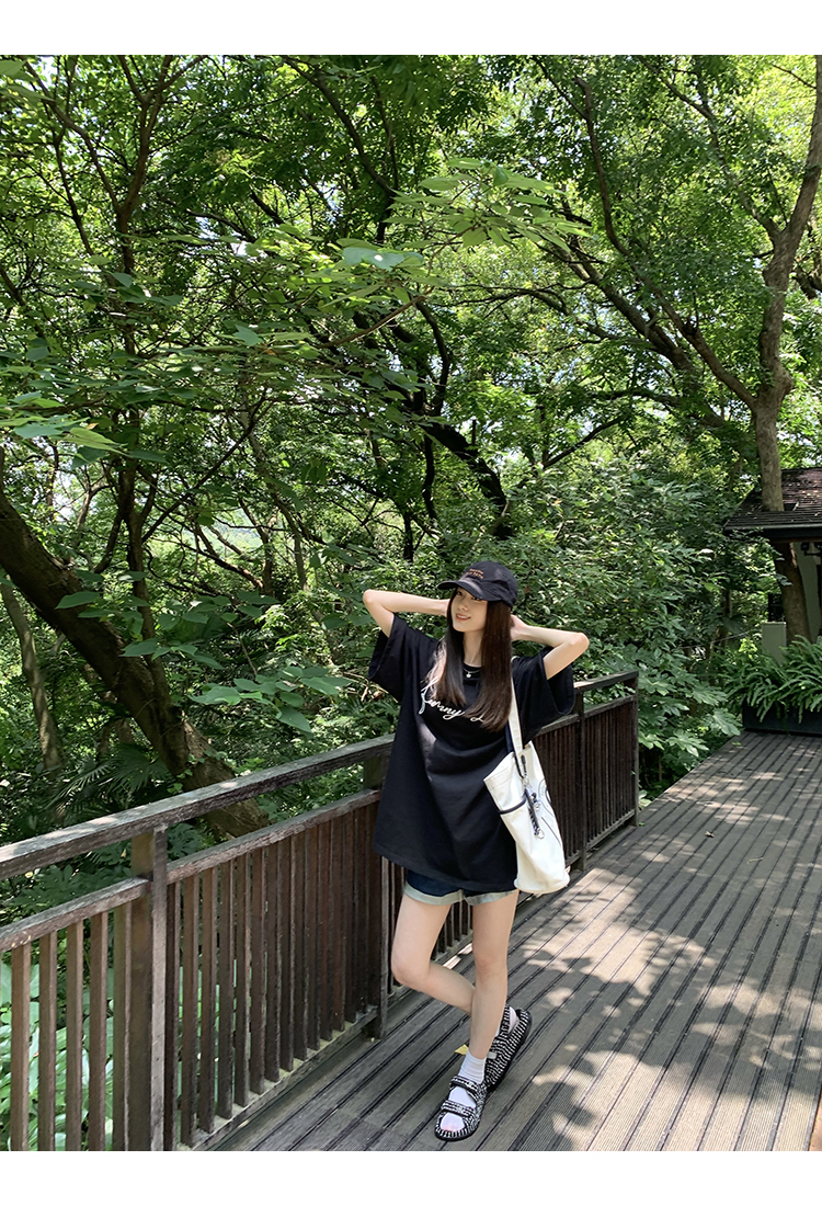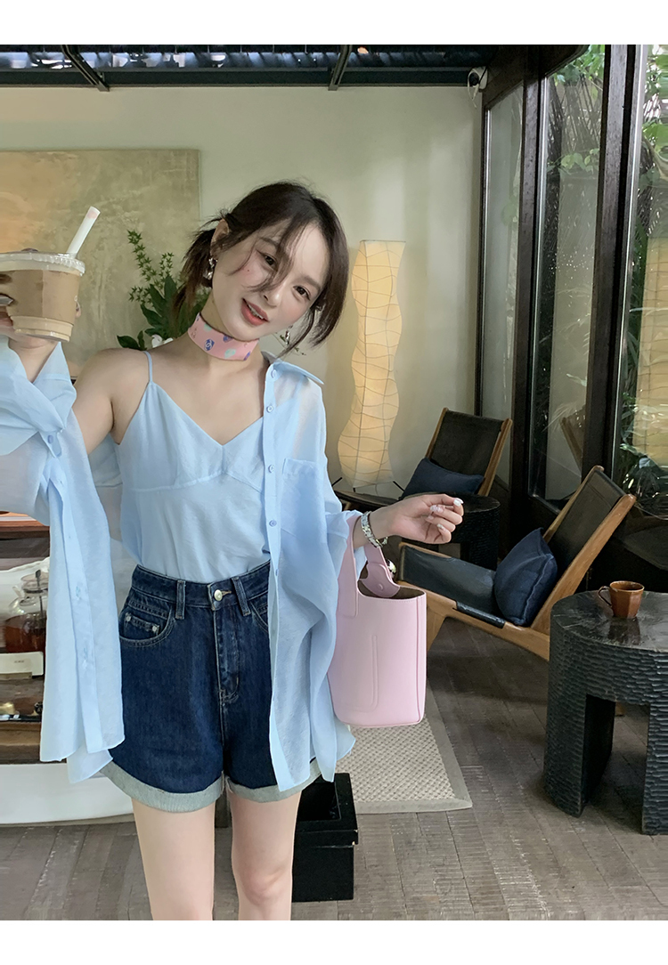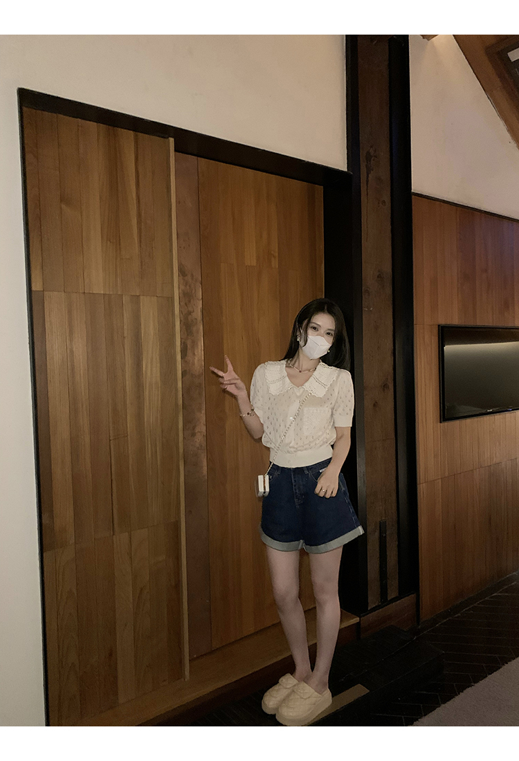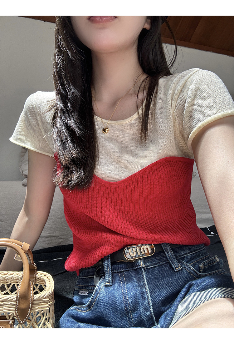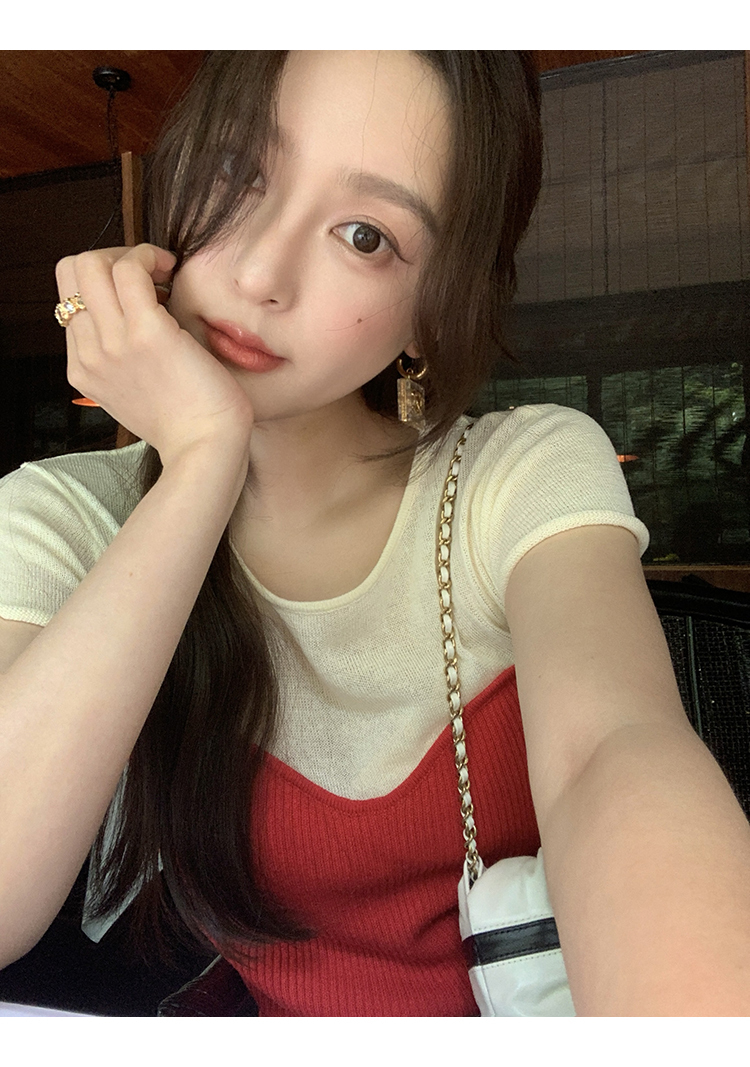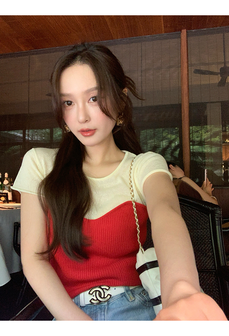 *o-ha-you*【FMQH2042019】夏日熱戀訂製亞麻萊賽爾假兩件針織T恤/純棉翻折牛仔短褲