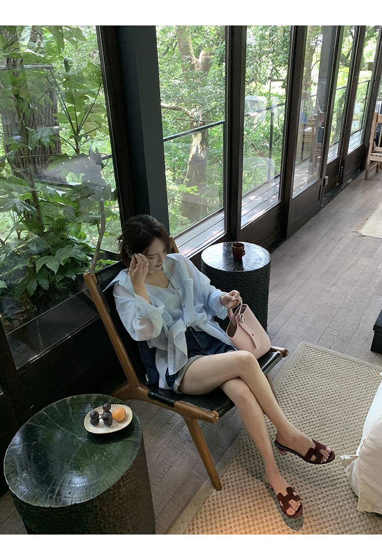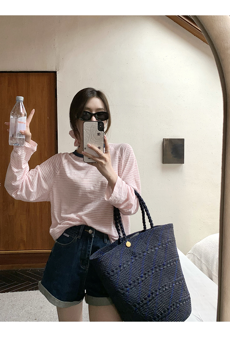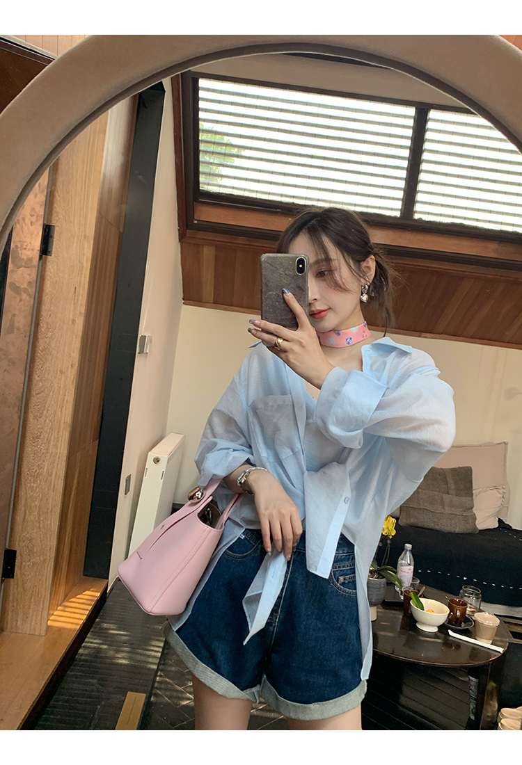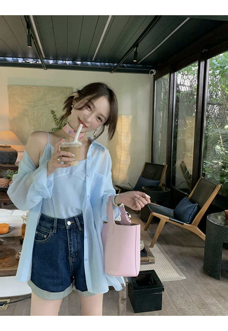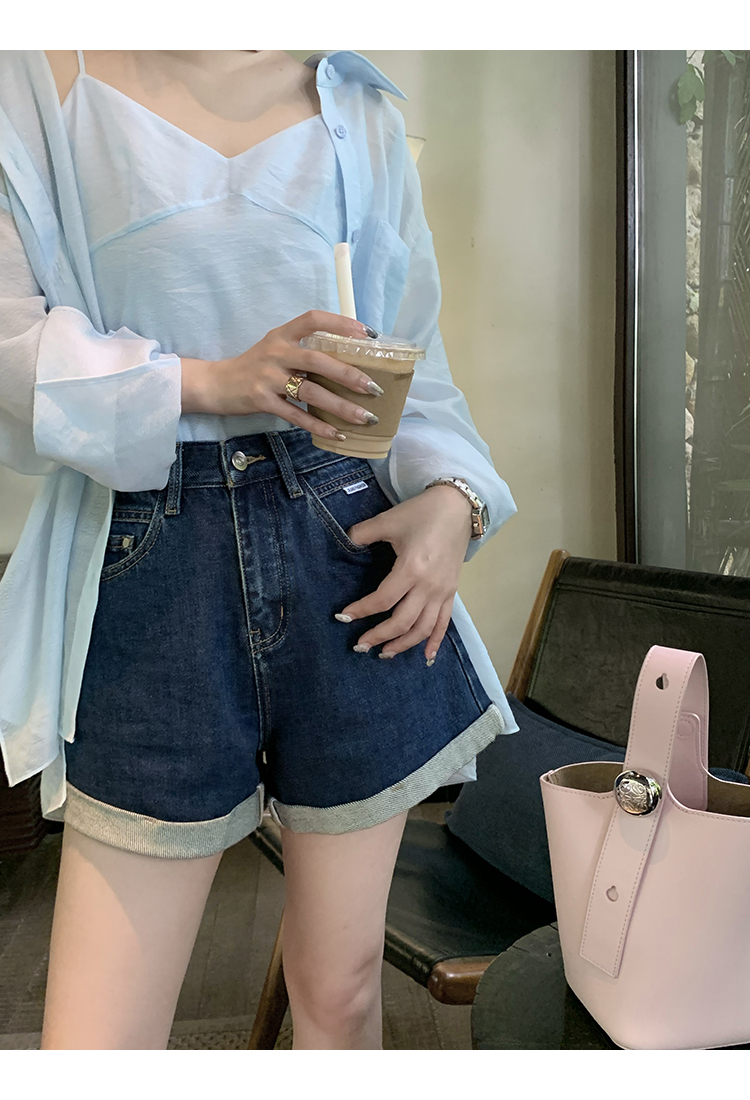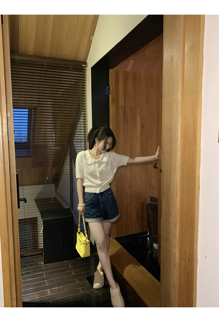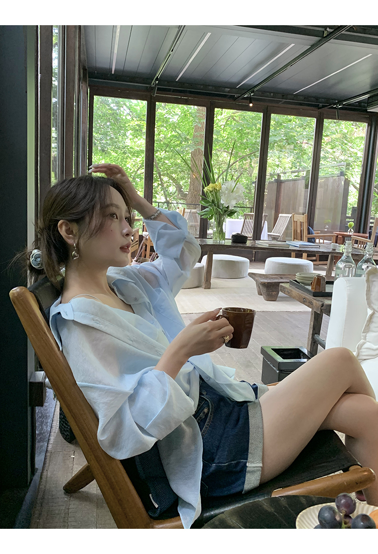 *o-ha-you*【FMQH2042019】夏日熱戀訂製亞麻萊賽爾假兩件針織T恤/純棉翻折牛仔短褲