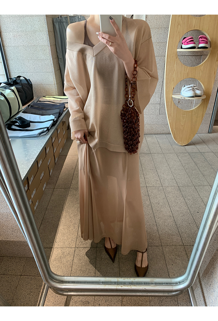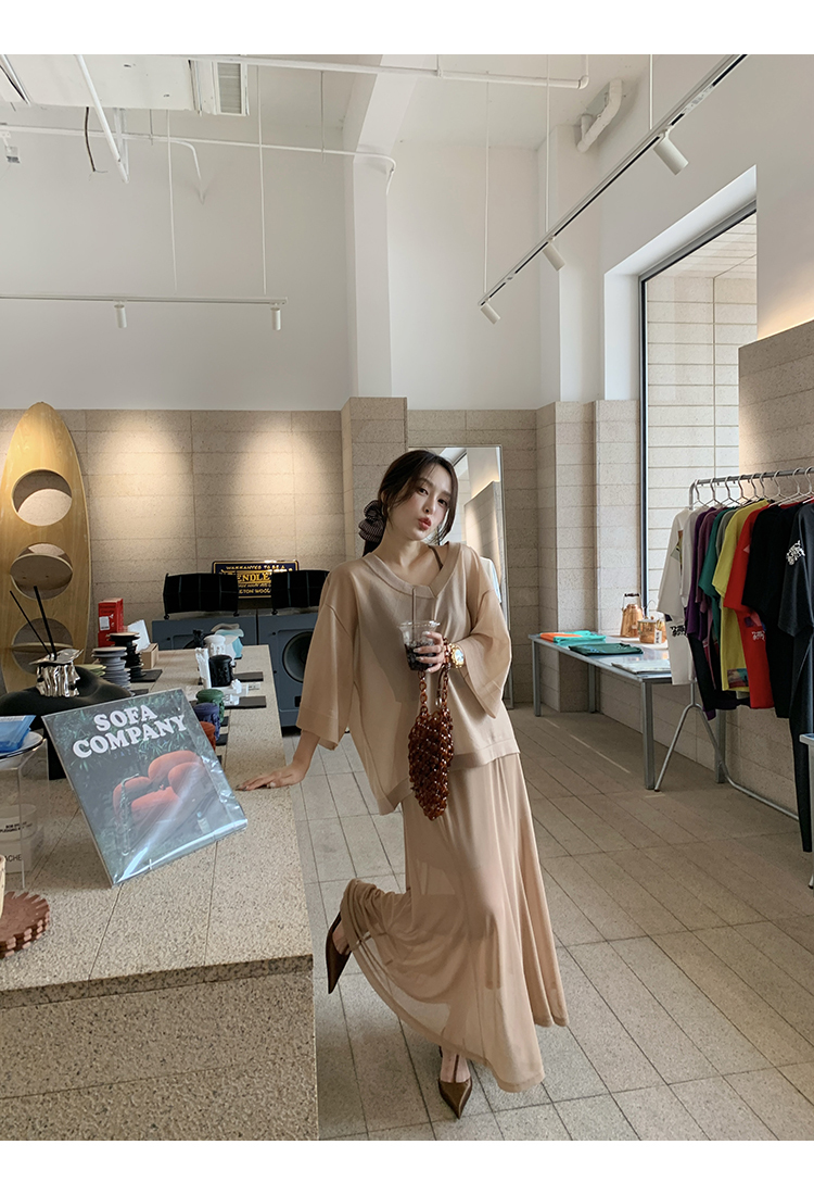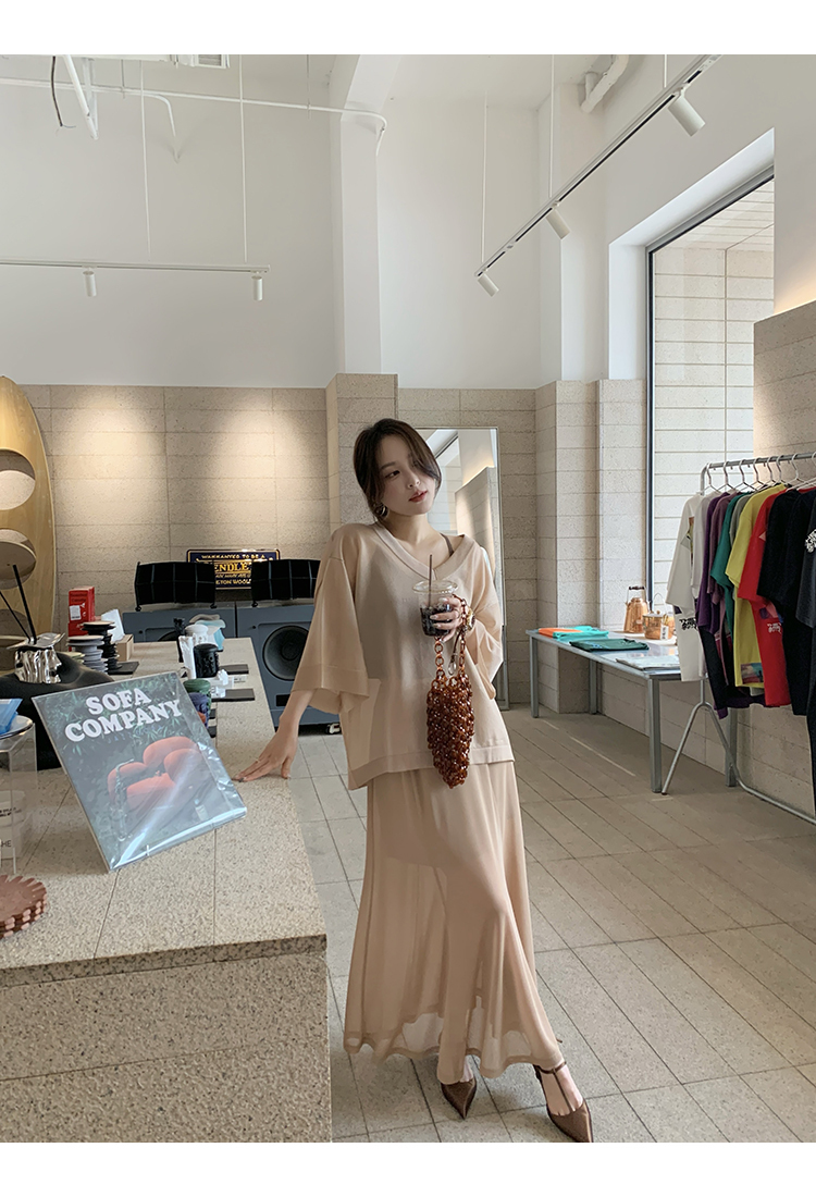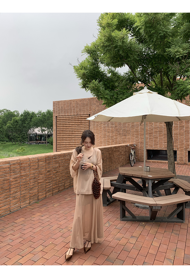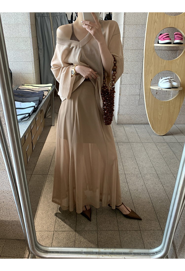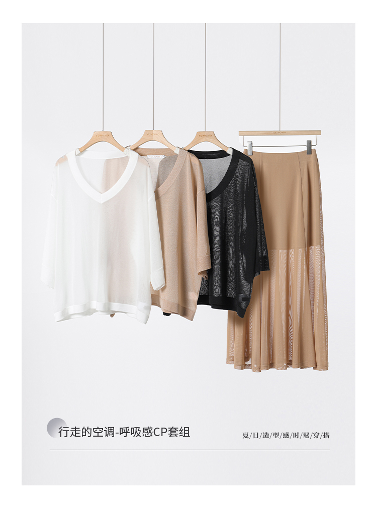 *o-ha-you*【FMQH2042024】行走的空調-呼吸感CP套組12針歐根紗針織衫/定染高密網紗長裙-2色