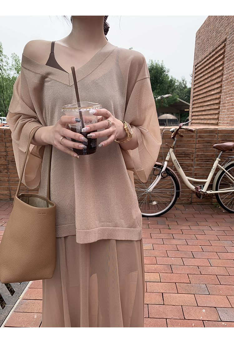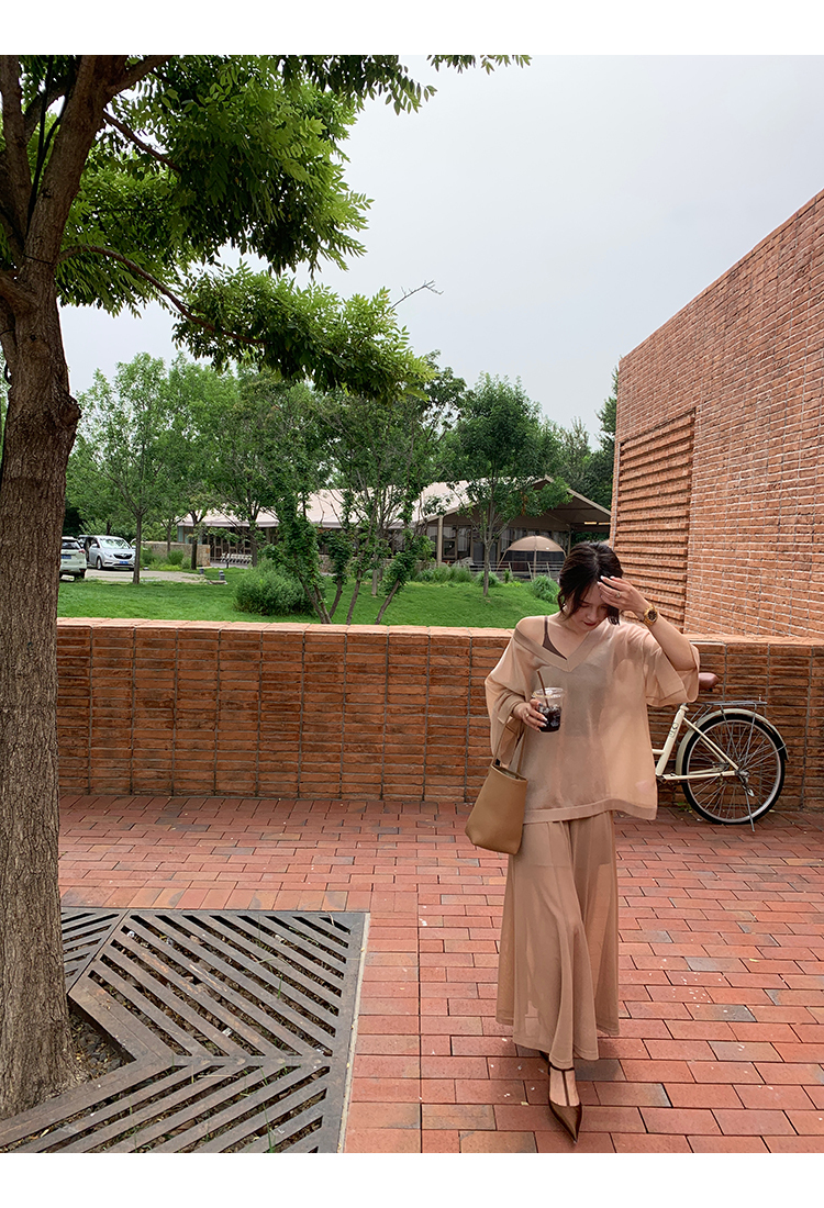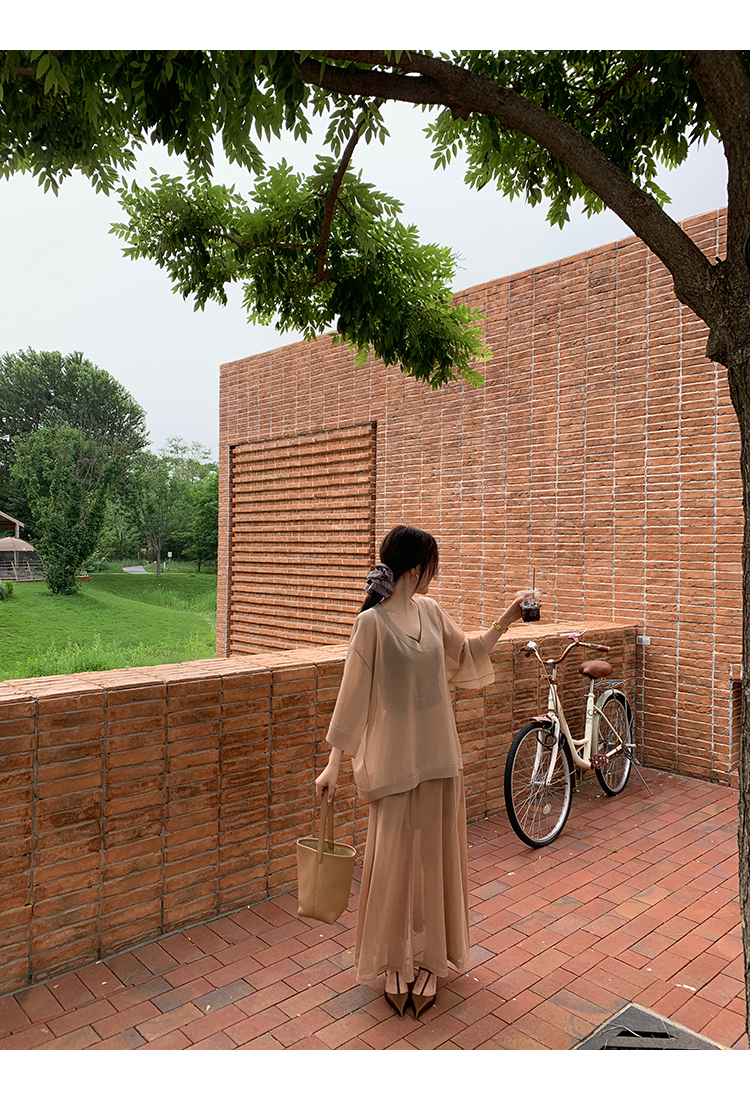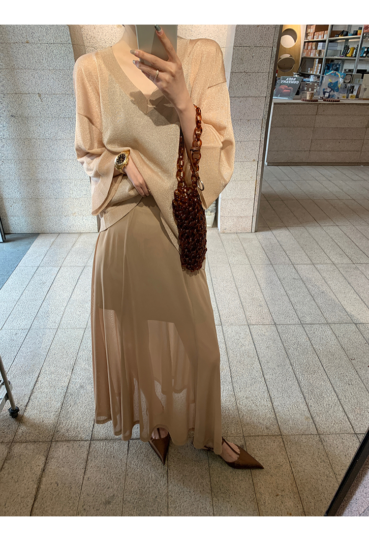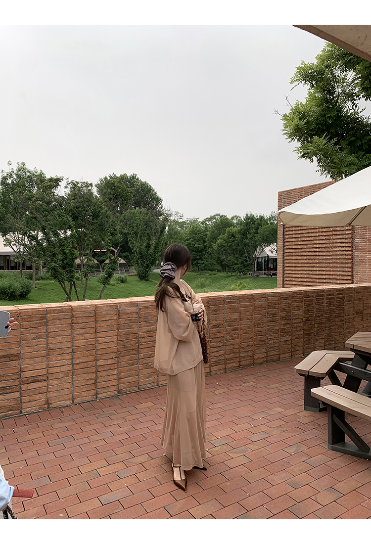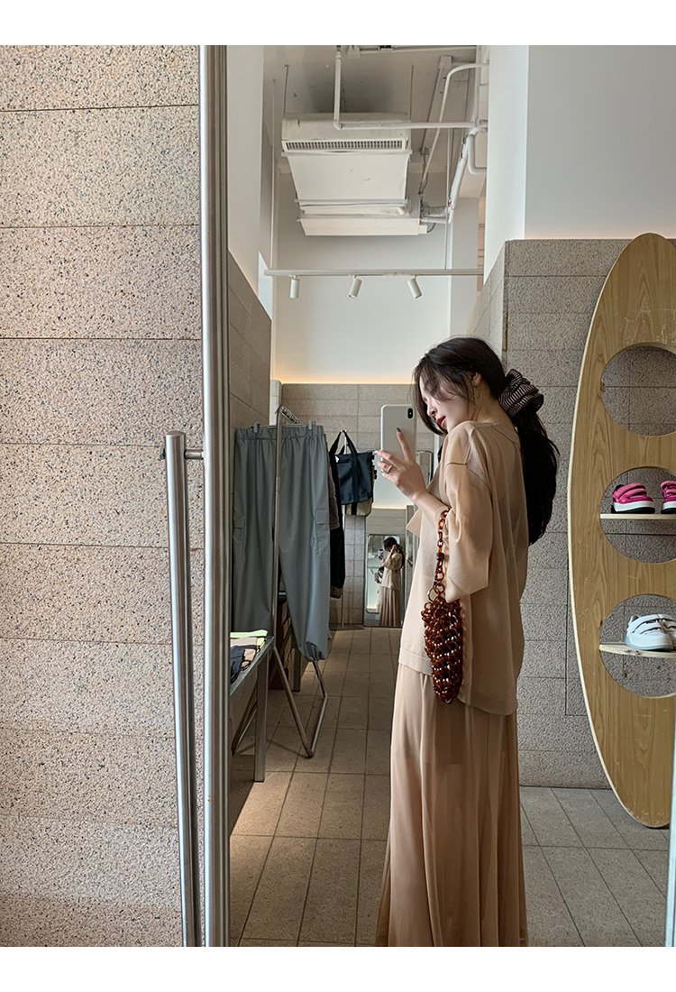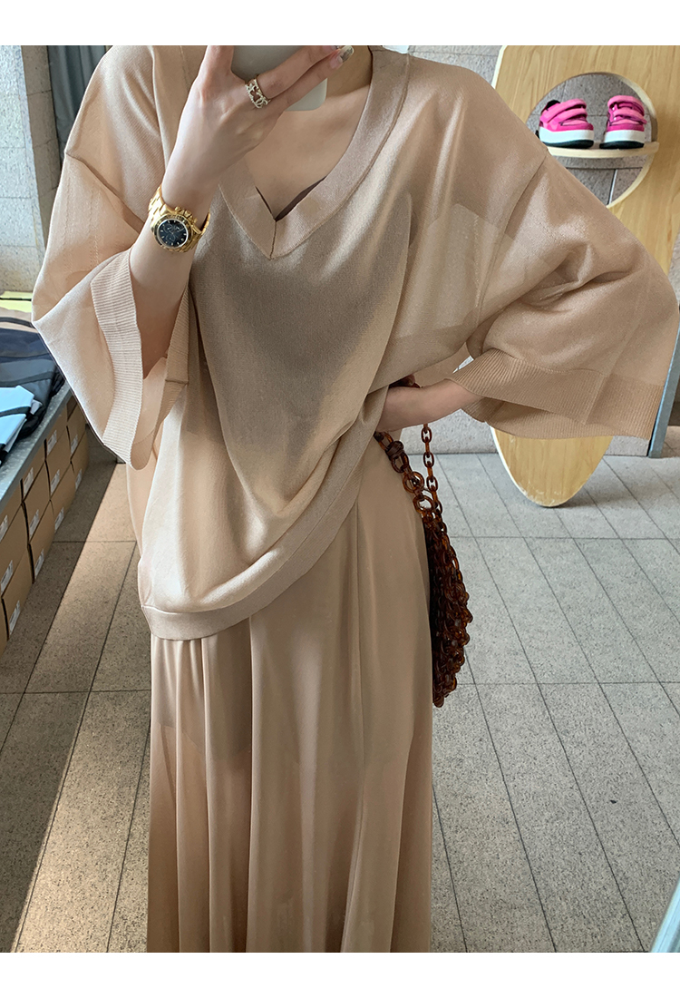 *o-ha-you*【FMQH2042024】行走的空調-呼吸感CP套組12針歐根紗針織衫/定染高密網紗長裙-2色