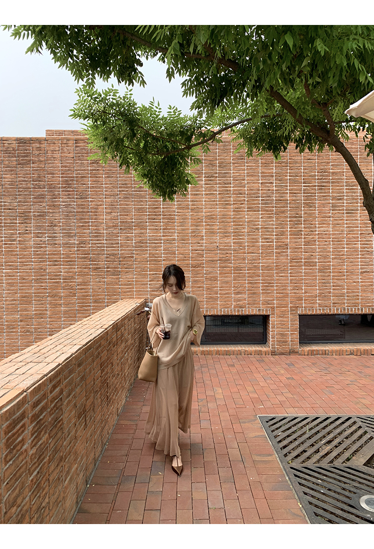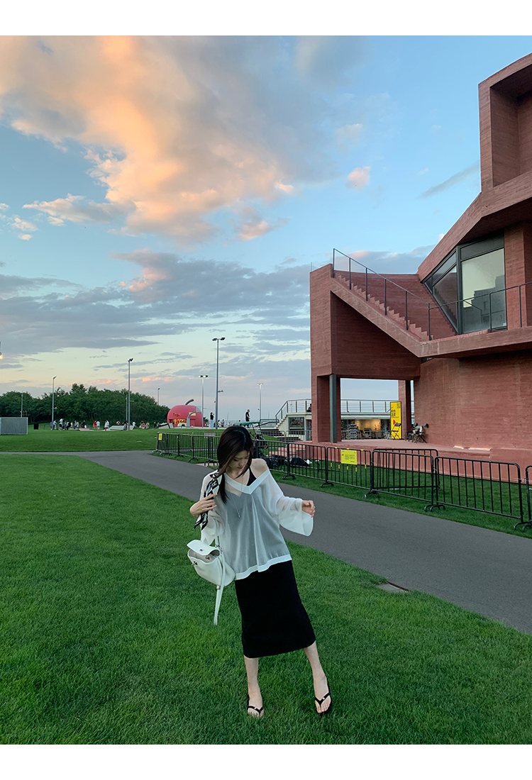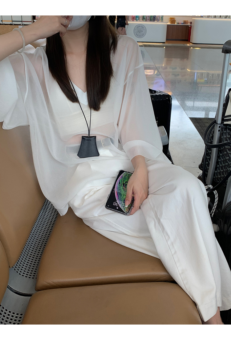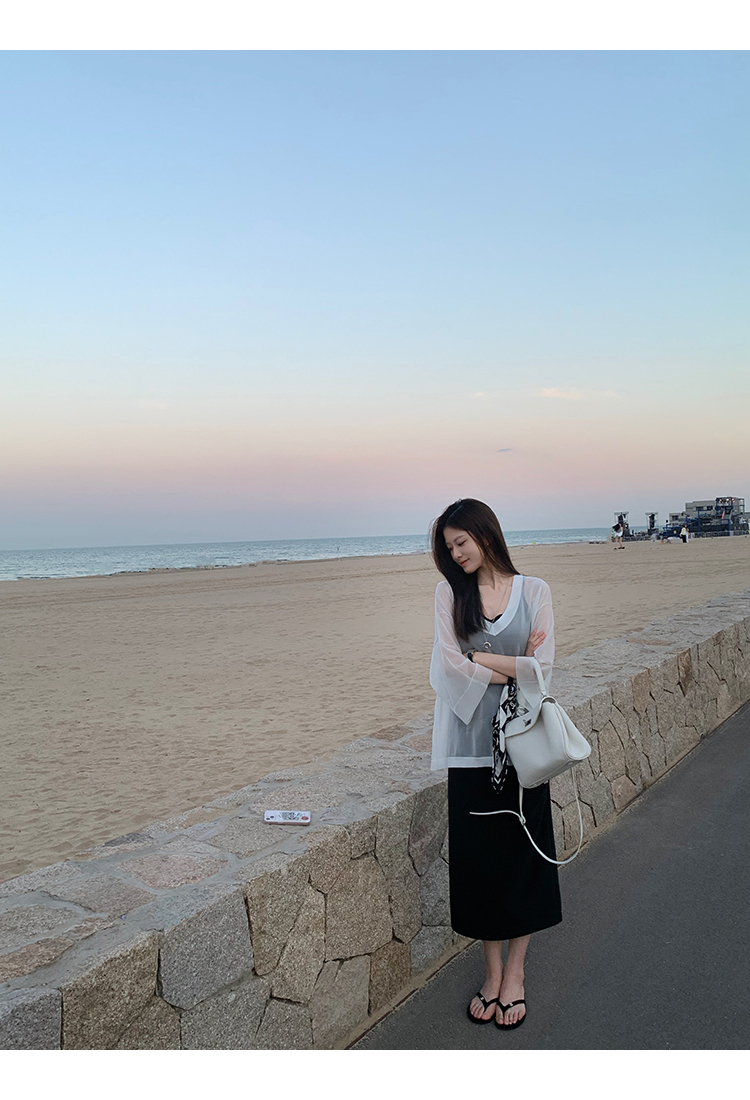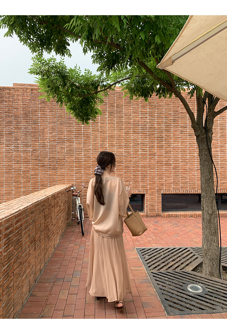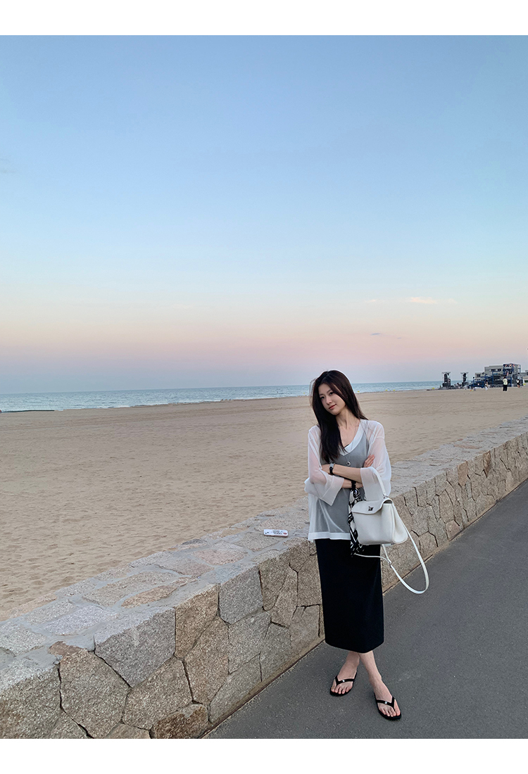 *o-ha-you*【FMQH2042024】行走的空調-呼吸感CP套組12針歐根紗針織衫/定染高密網紗長裙-2色