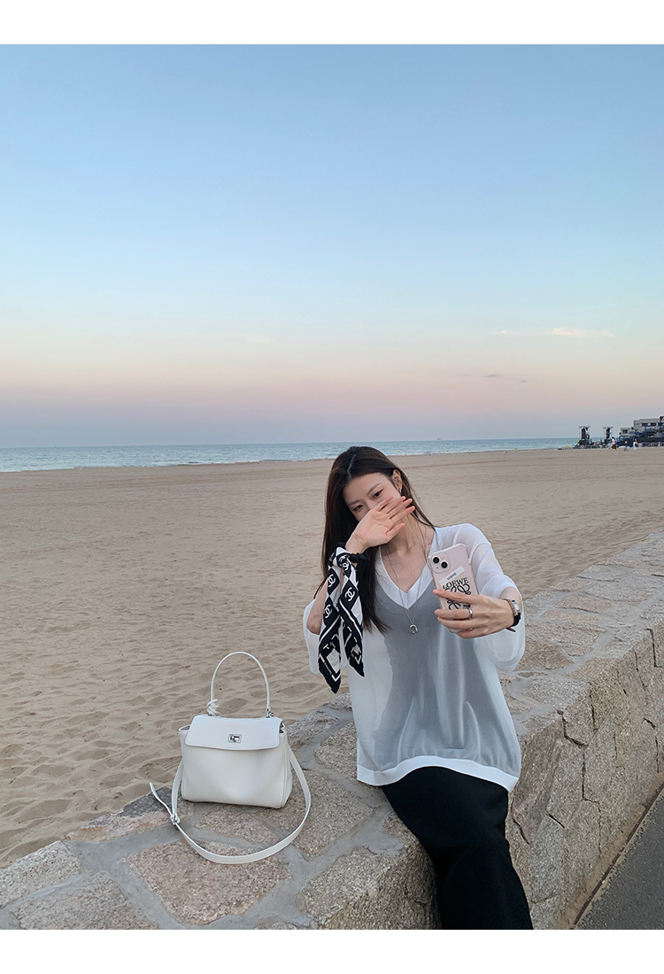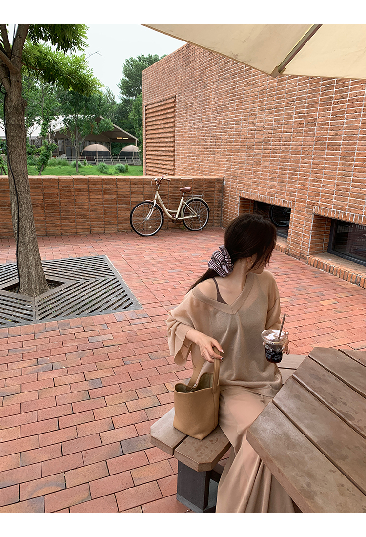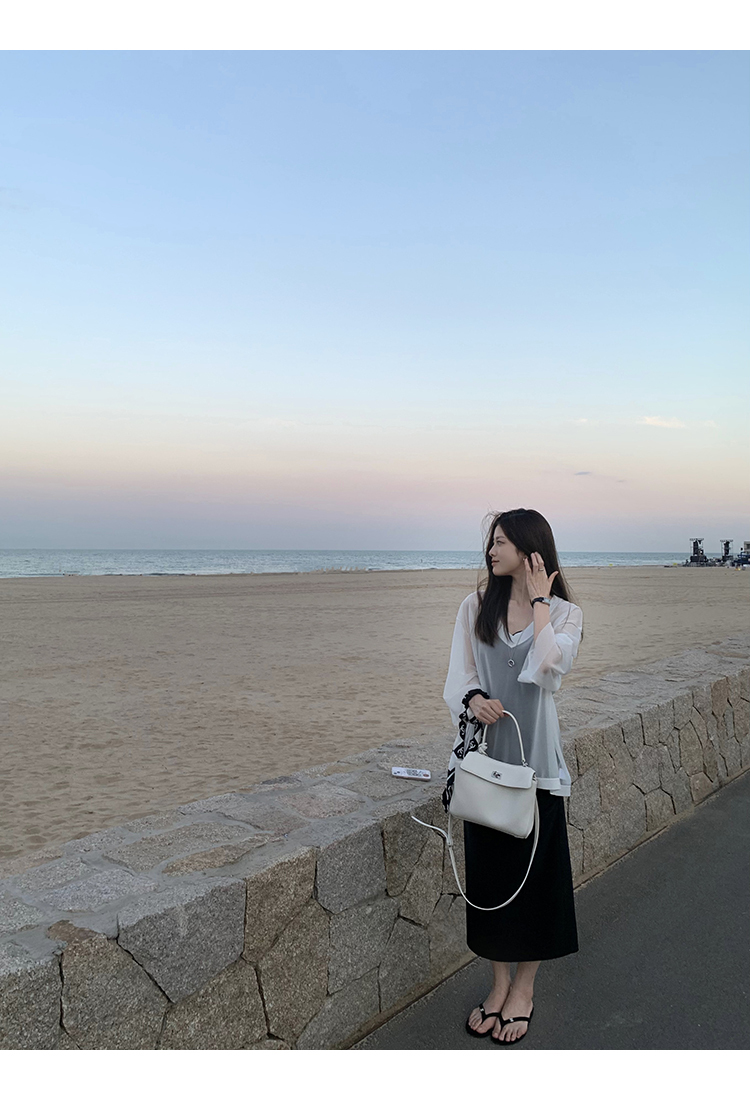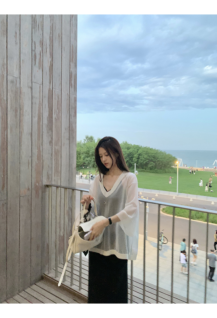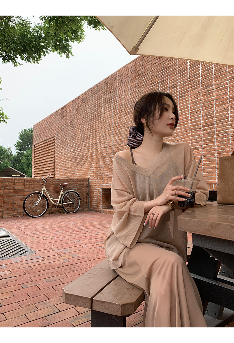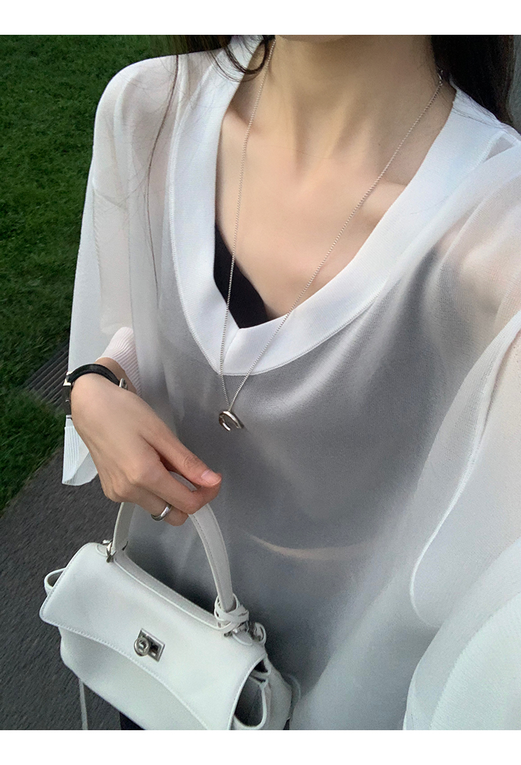 *o-ha-you*【FMQH2042024】行走的空調-呼吸感CP套組12針歐根紗針織衫/定染高密網紗長裙-2色