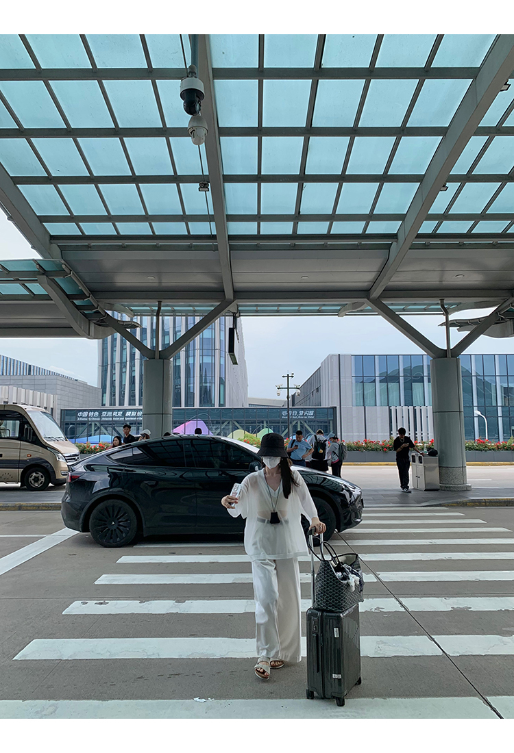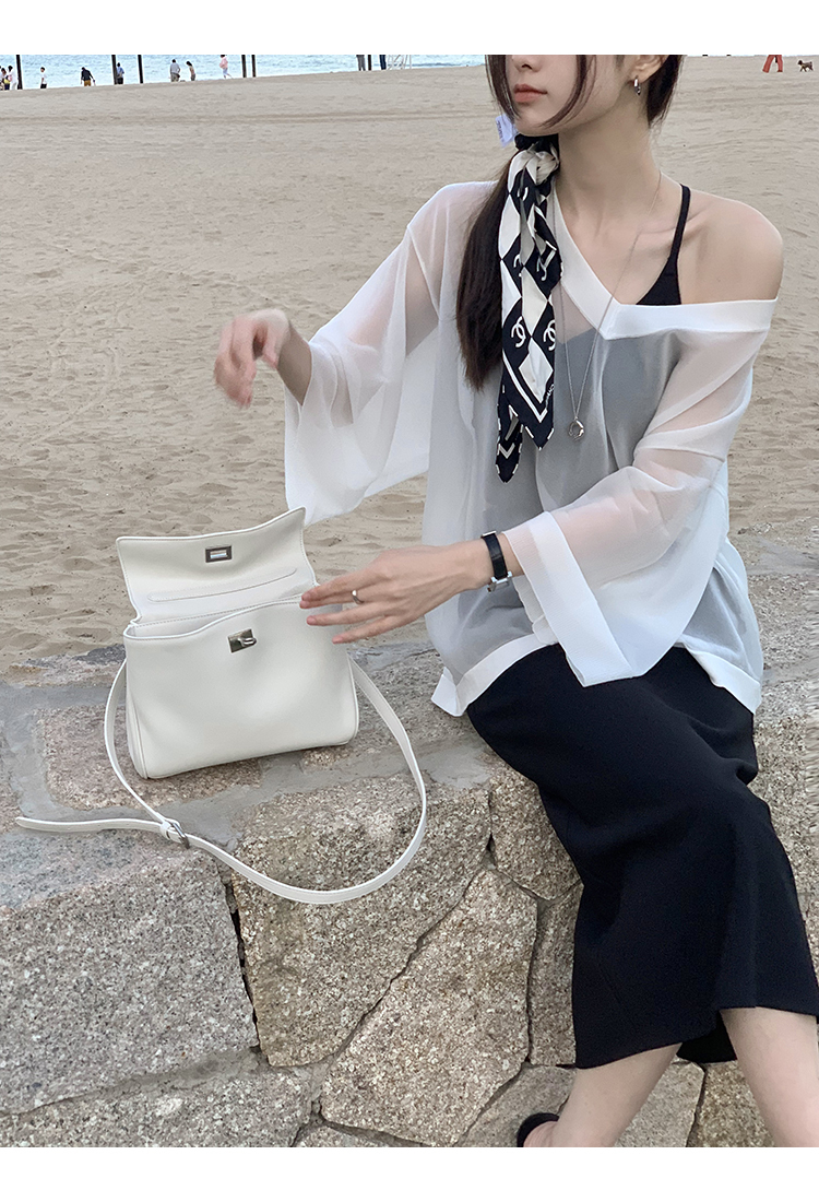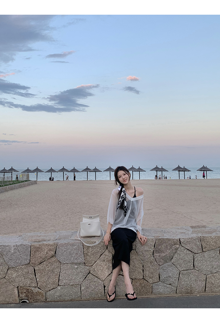 領型設計採用大V領設計,拉長頸部線條,展現天鵝般優雅型態