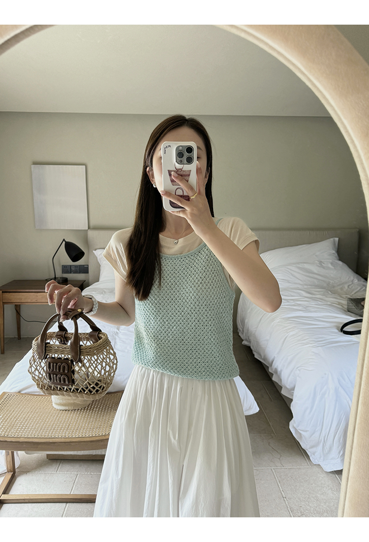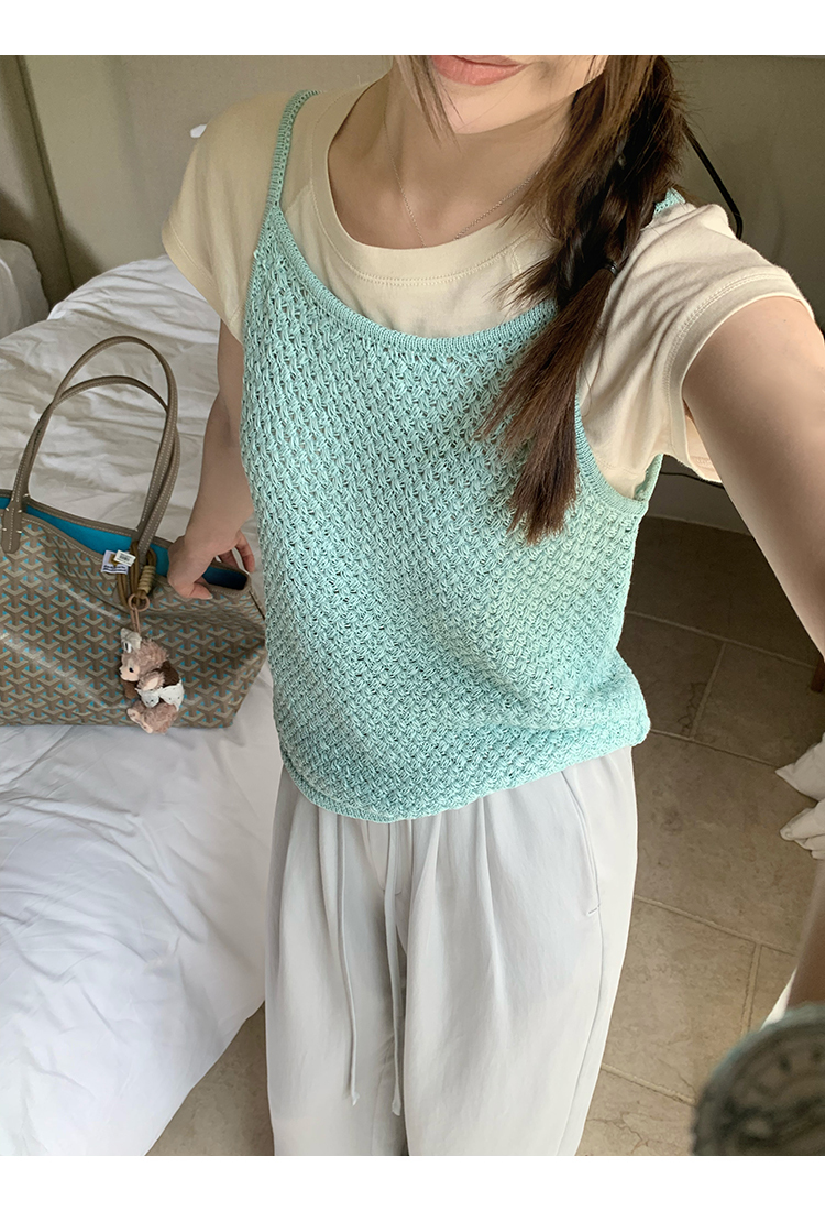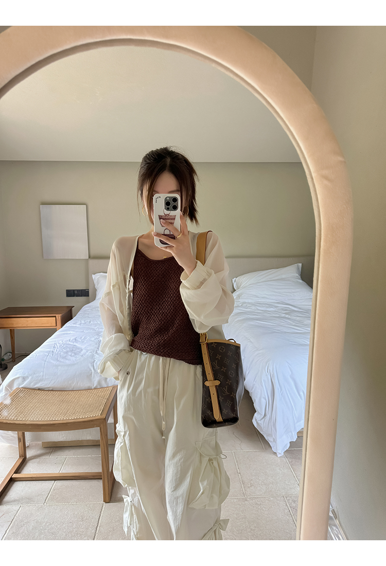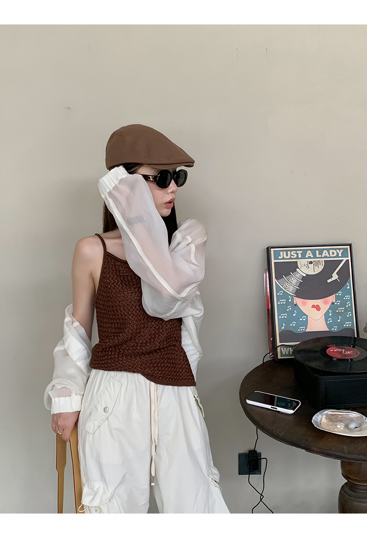 *o-ha-you*【FMQH2043006】盛夏soul吊帶燒花帶子紗絞花肌理感精緻感度假風辣妹背心打底