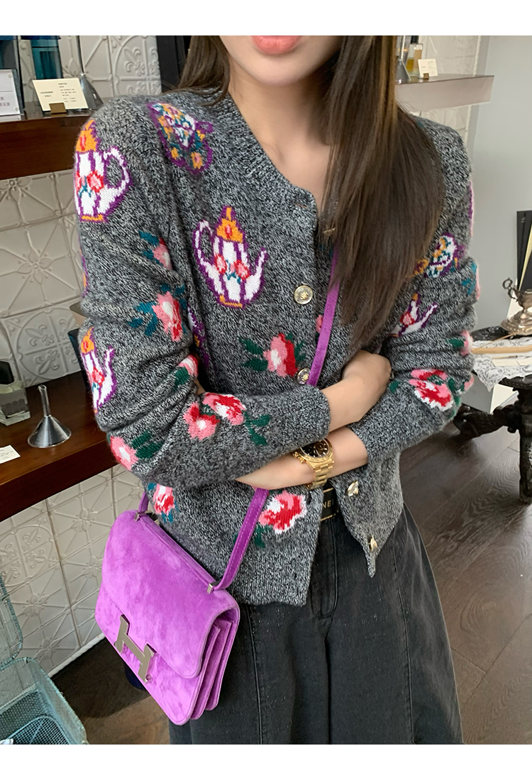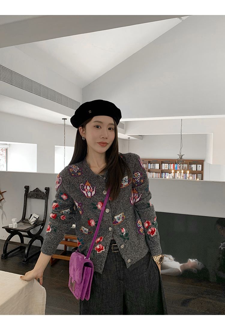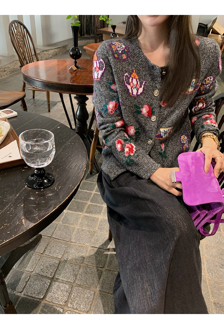 *o-ha-you*【FMQH2044004】highline香奶奶開襟衫高訂全羊毛 重工嵌花茶壺小稥風外套