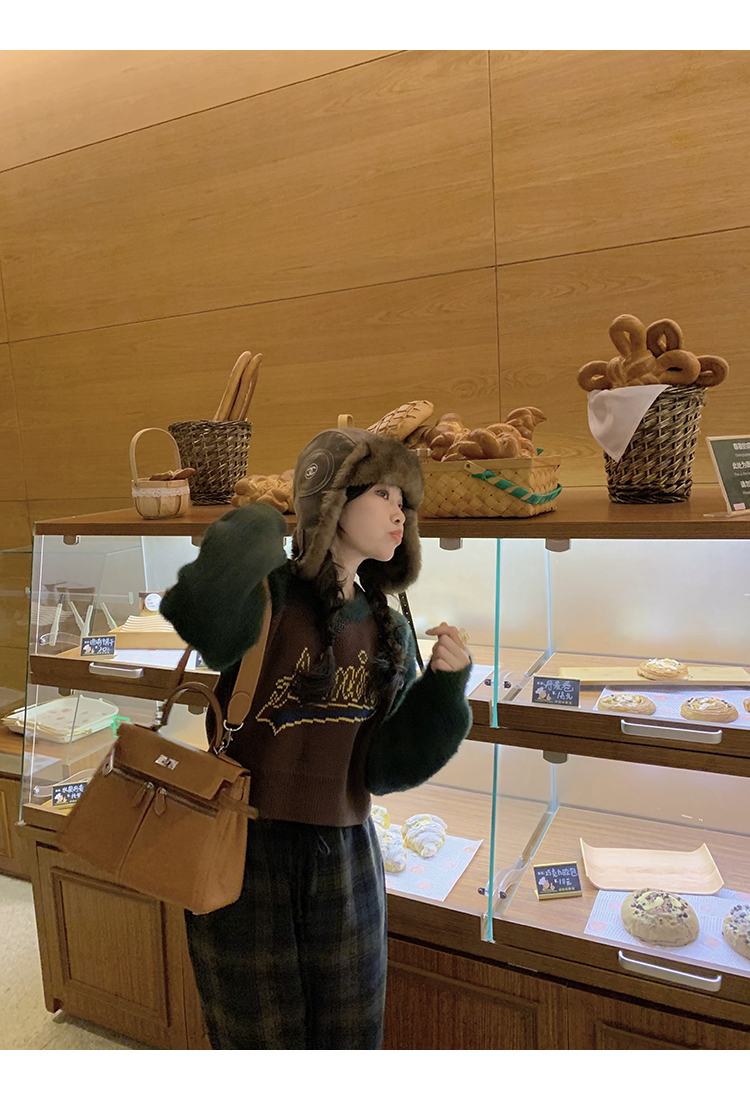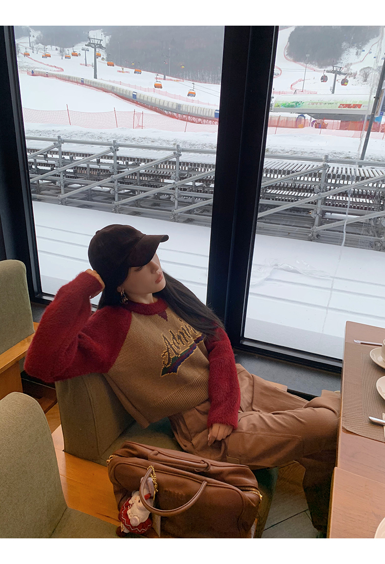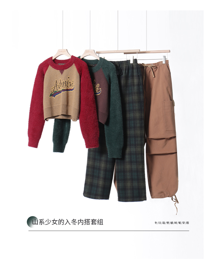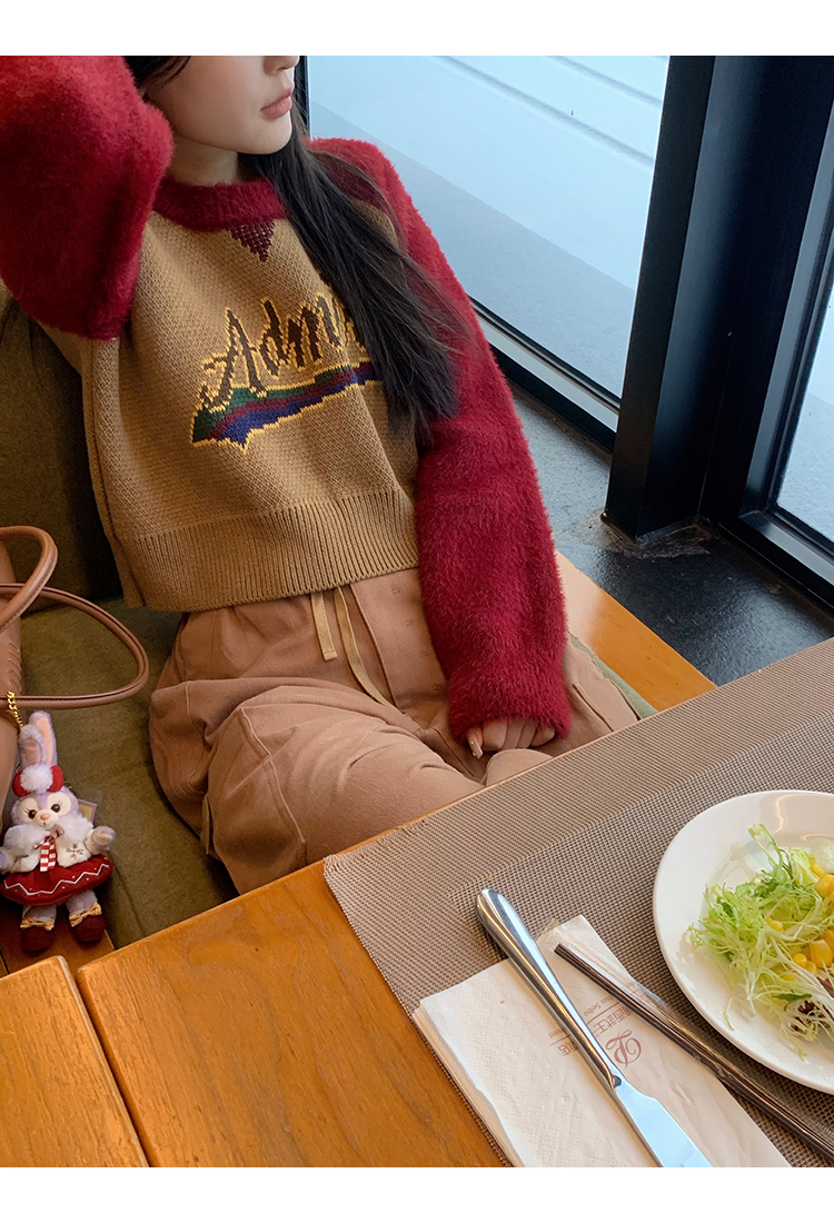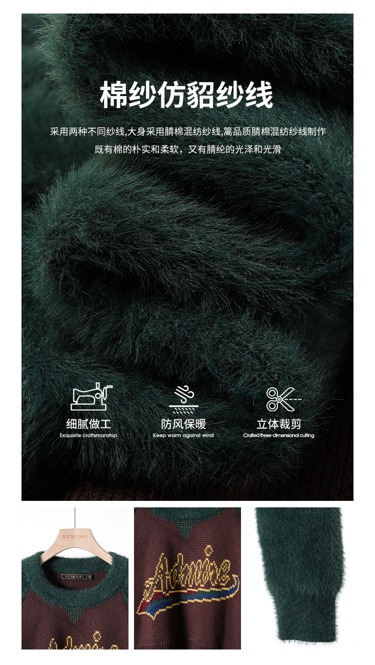 毛衣大身面料品名: 腈棉混纺纱线 / 毛衣袖子面料品名: 棉纱仿貂纱线