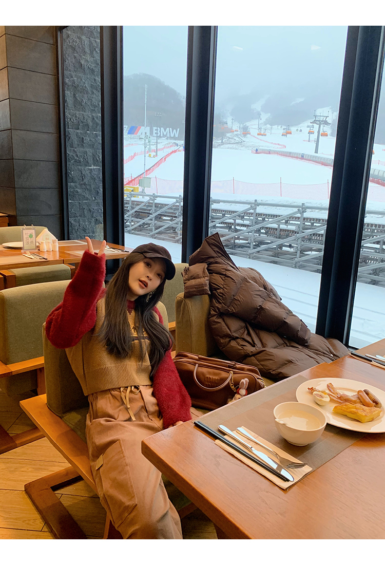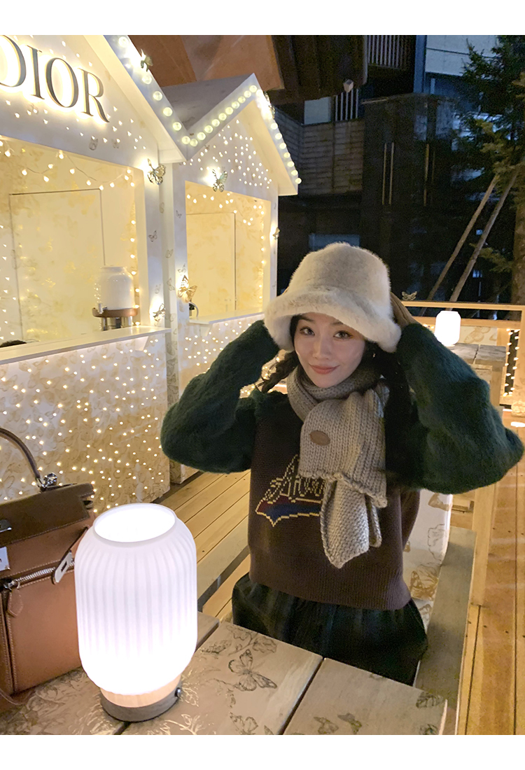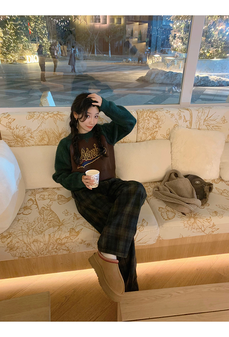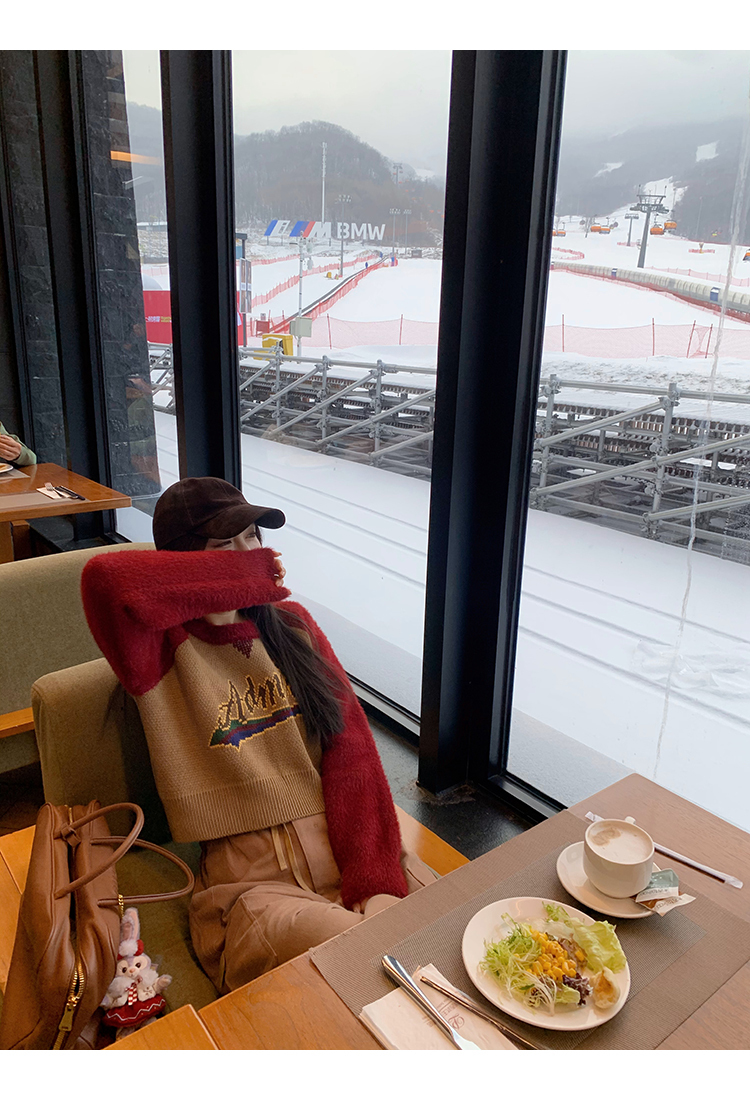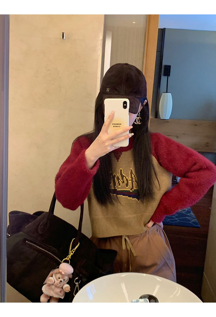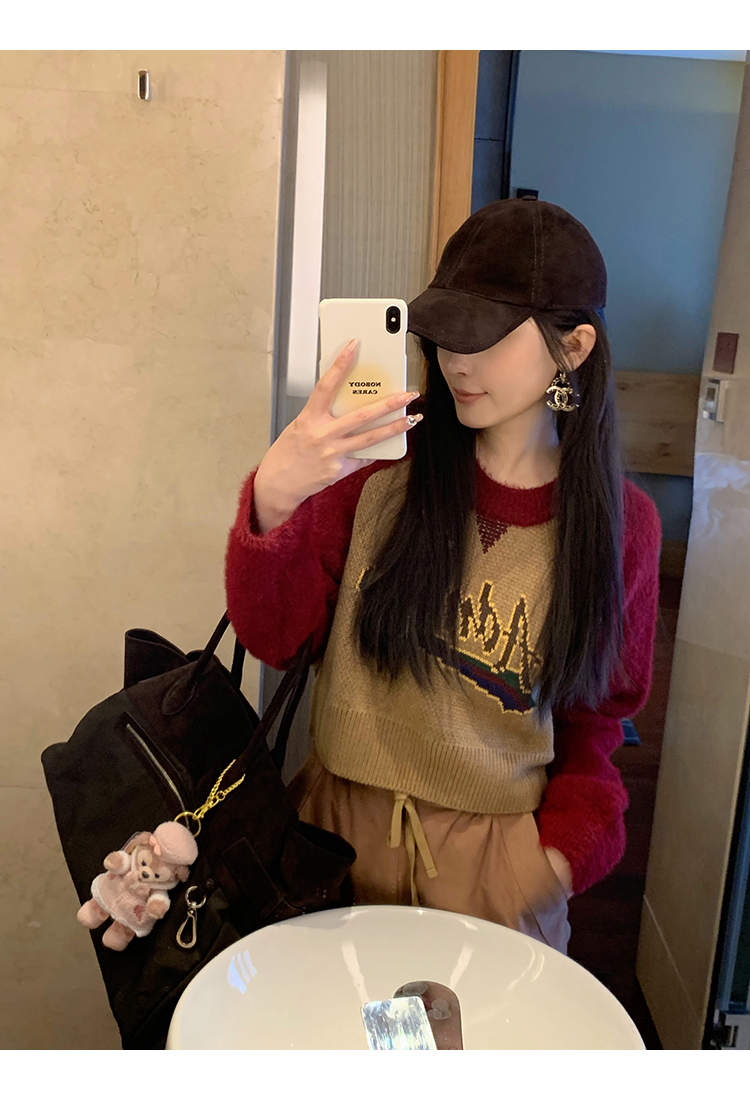 毛衣大身面料品名: 腈棉混纺纱线 / 毛衣袖子面料品名: 棉纱仿貂纱线