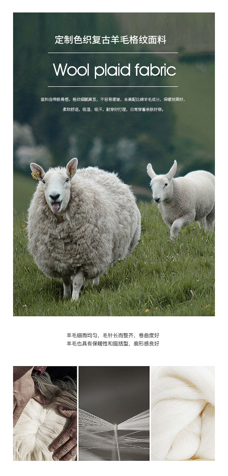 面料成分 : 60.7%绵羊毛 29.2%聚酯纤维 5.8%腈纶 4.3%其他纤维
