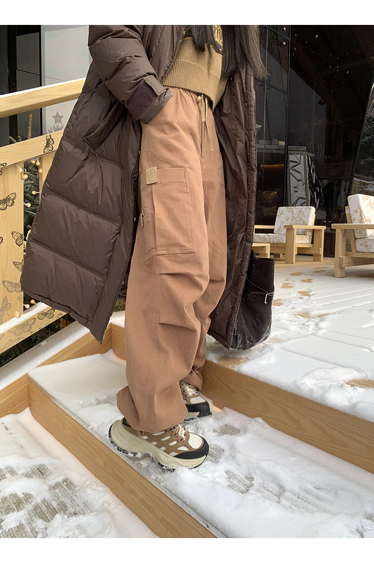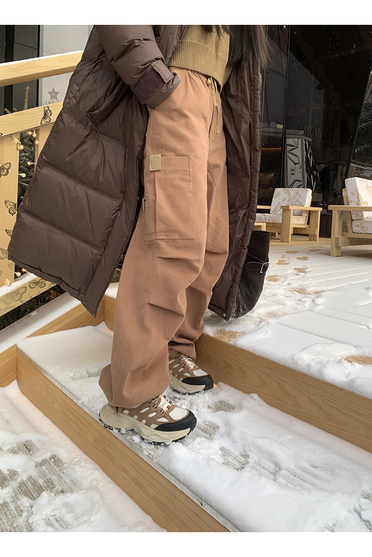 腰部设计裤腰和裤脚做的可调节抽绳设计,包容度更强,可直筒可束脚