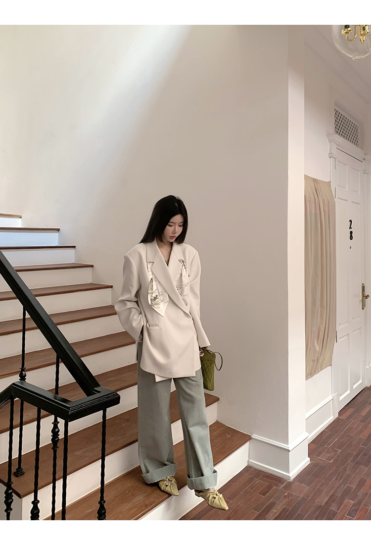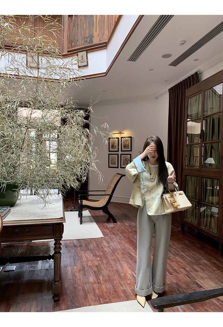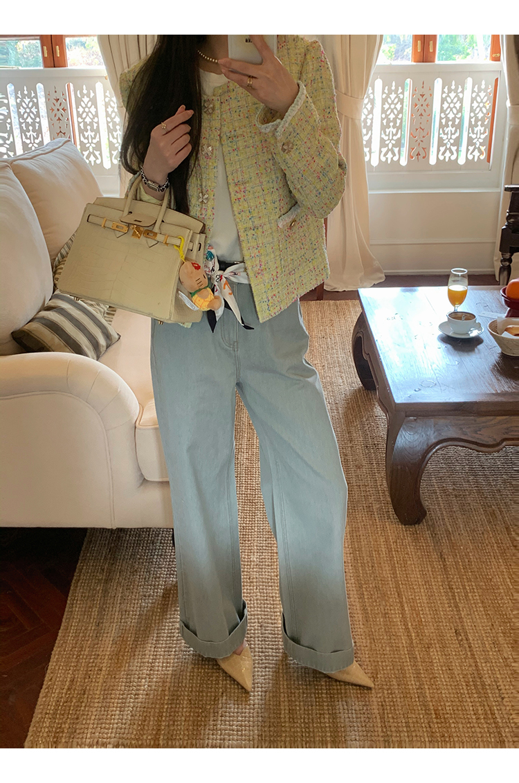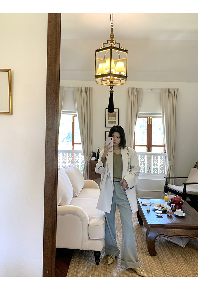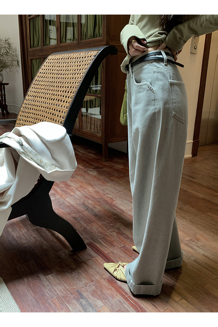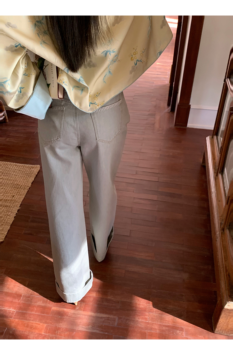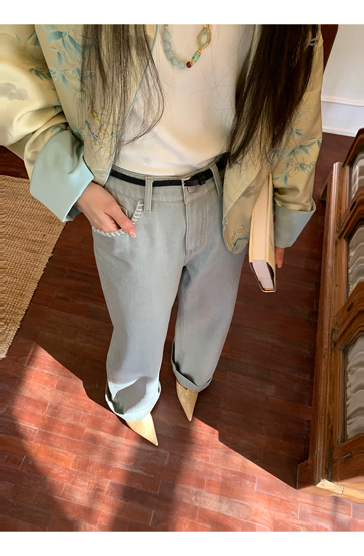 *o-ha-you*【FMQK2041019】貝殼繡牛仔褲橫跨多季!送腰帶 重工高腰慵懶顯瘦休閒寬褲