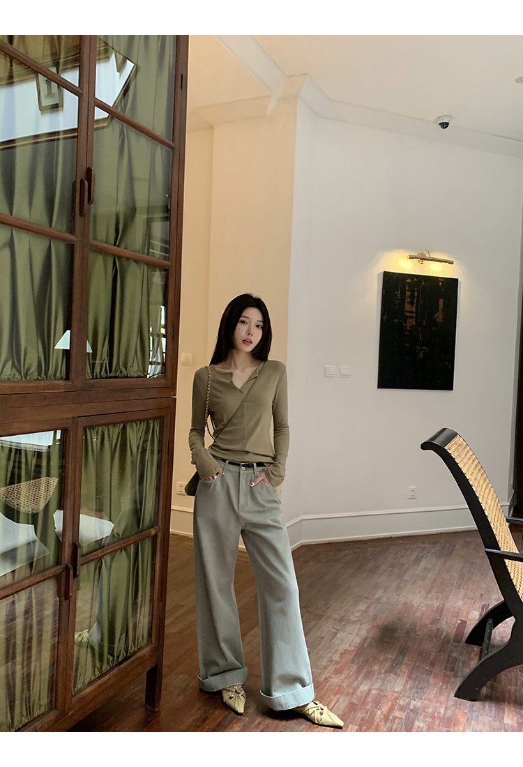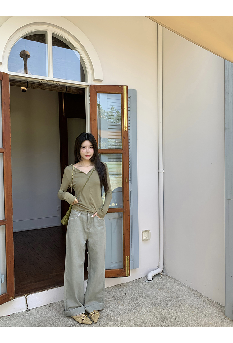 布料挺括不會厚重,手感棉潤舒適, 經特姝綠光加酵素石磨等繁複水洗工藝,
