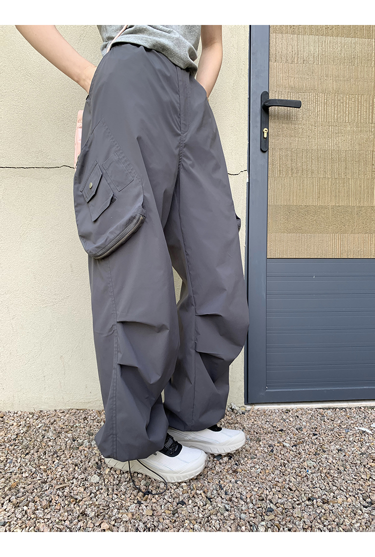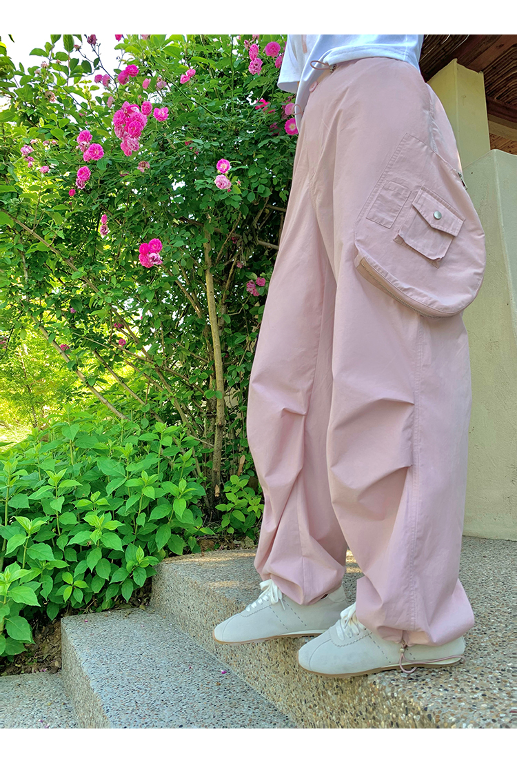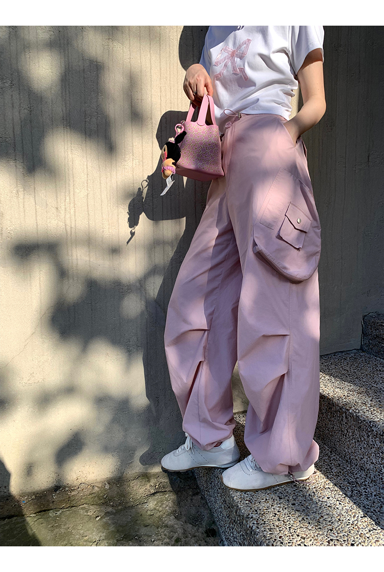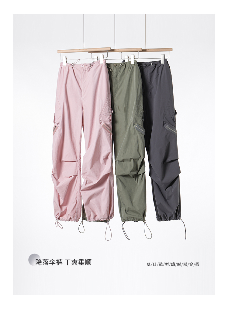 *o-ha-you*【FMQK2041070】降落傘褲乾爽垂順山系休閒口袋工裝褲兩穿束腳褲-3色