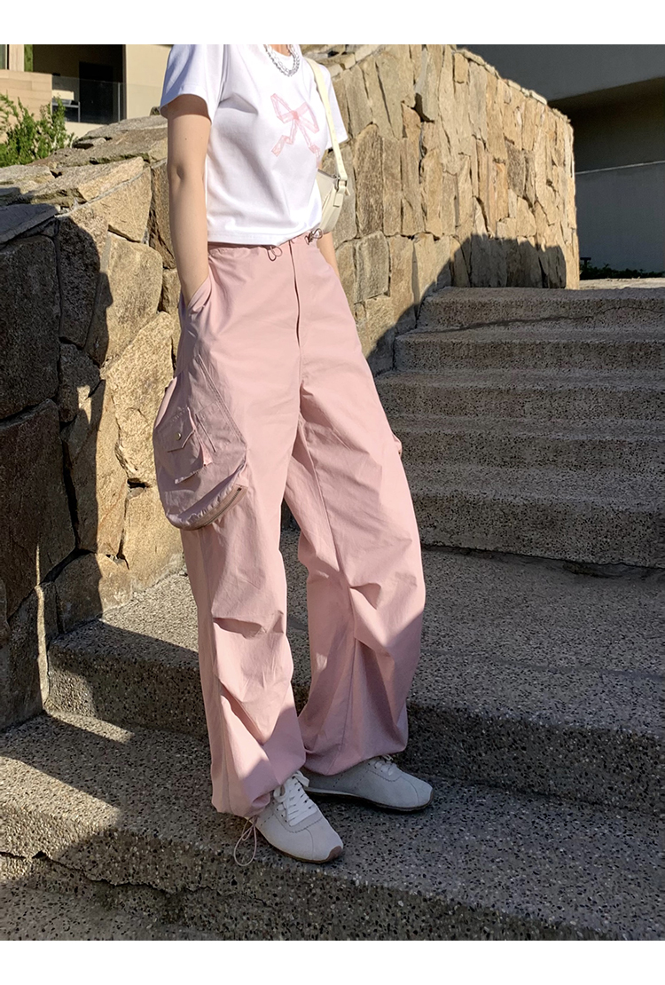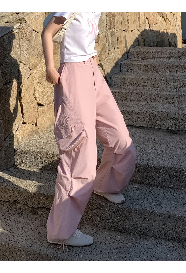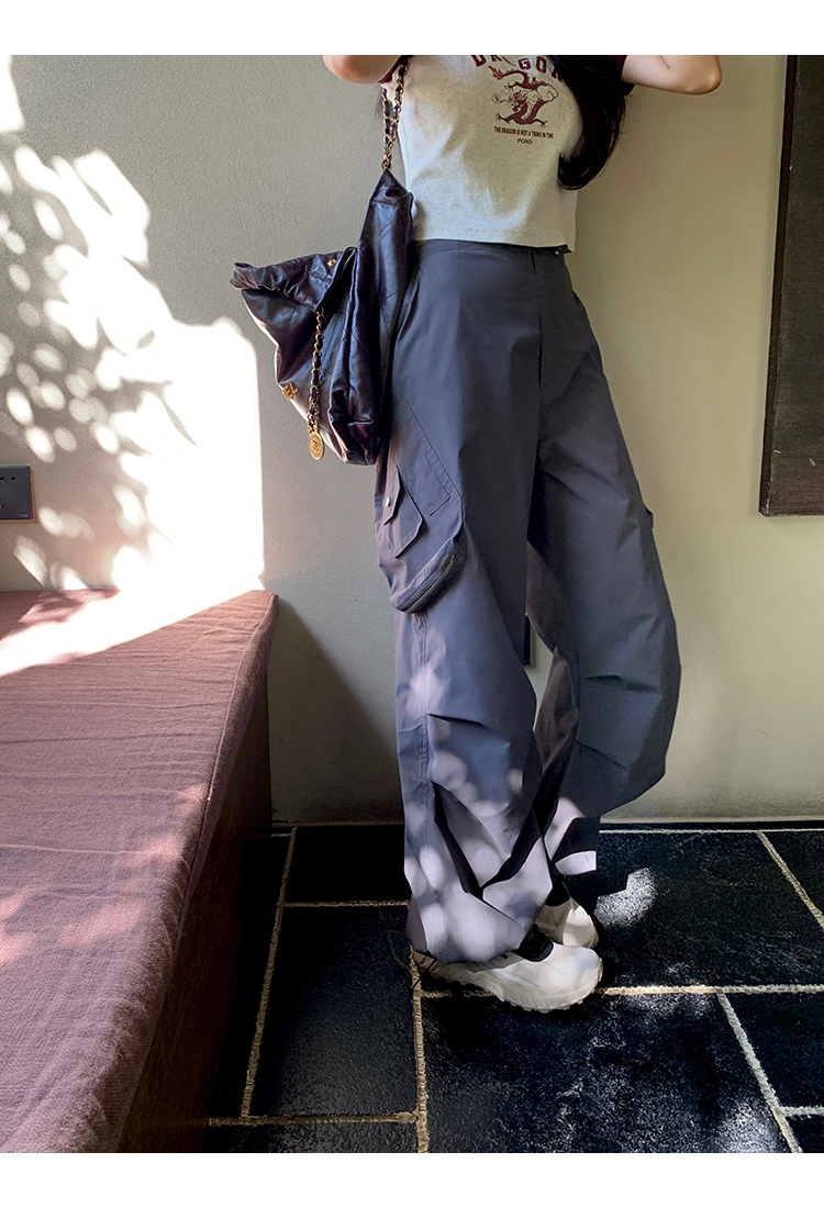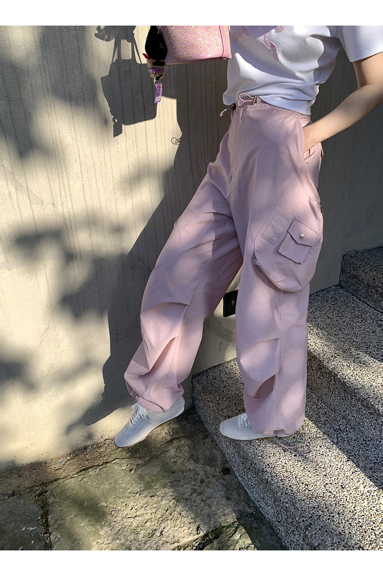 *o-ha-you*【FMQK2041070】降落傘褲乾爽垂順山系休閒口袋工裝褲兩穿束腳褲-3色