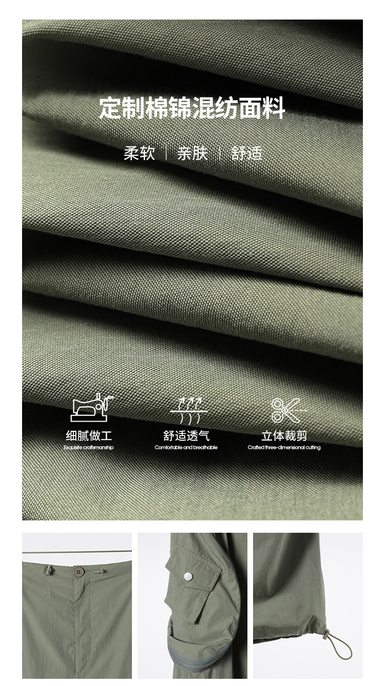 褲腳設計褲腳牛筋抽繩設計,依需求調節,造型多變