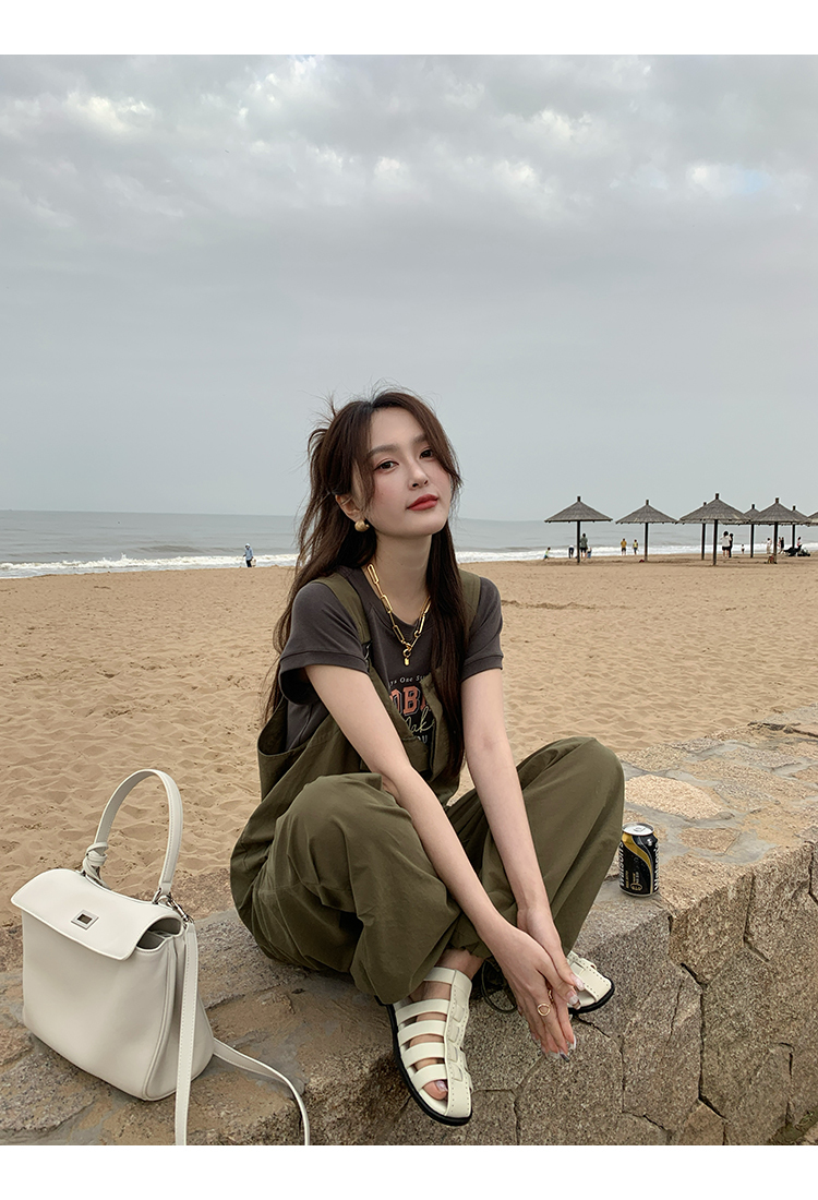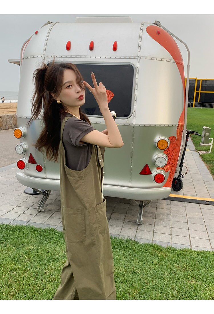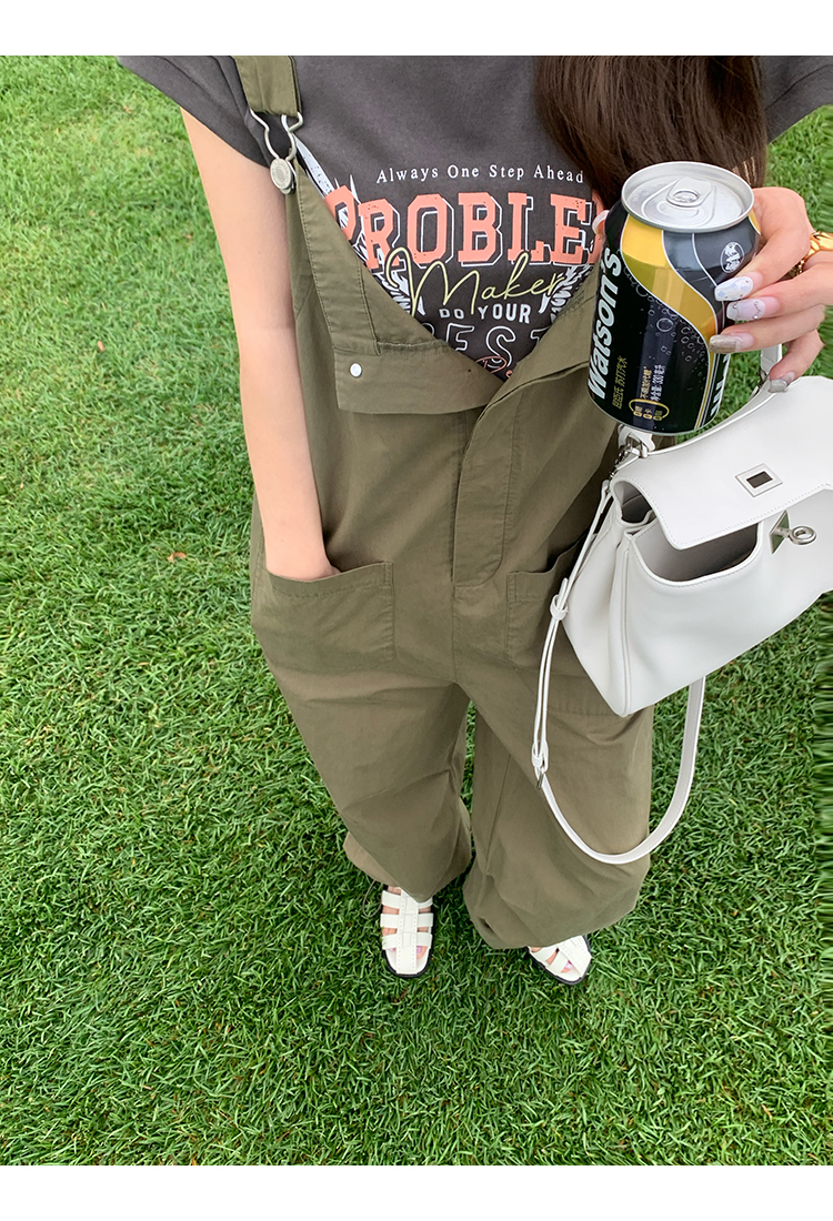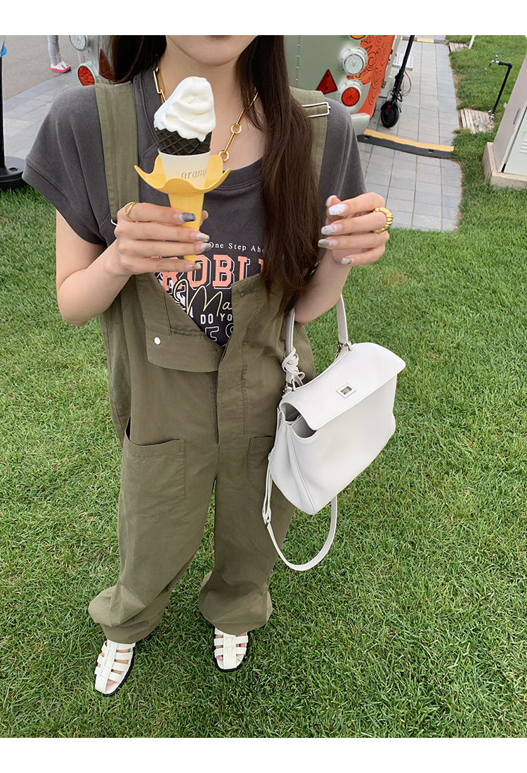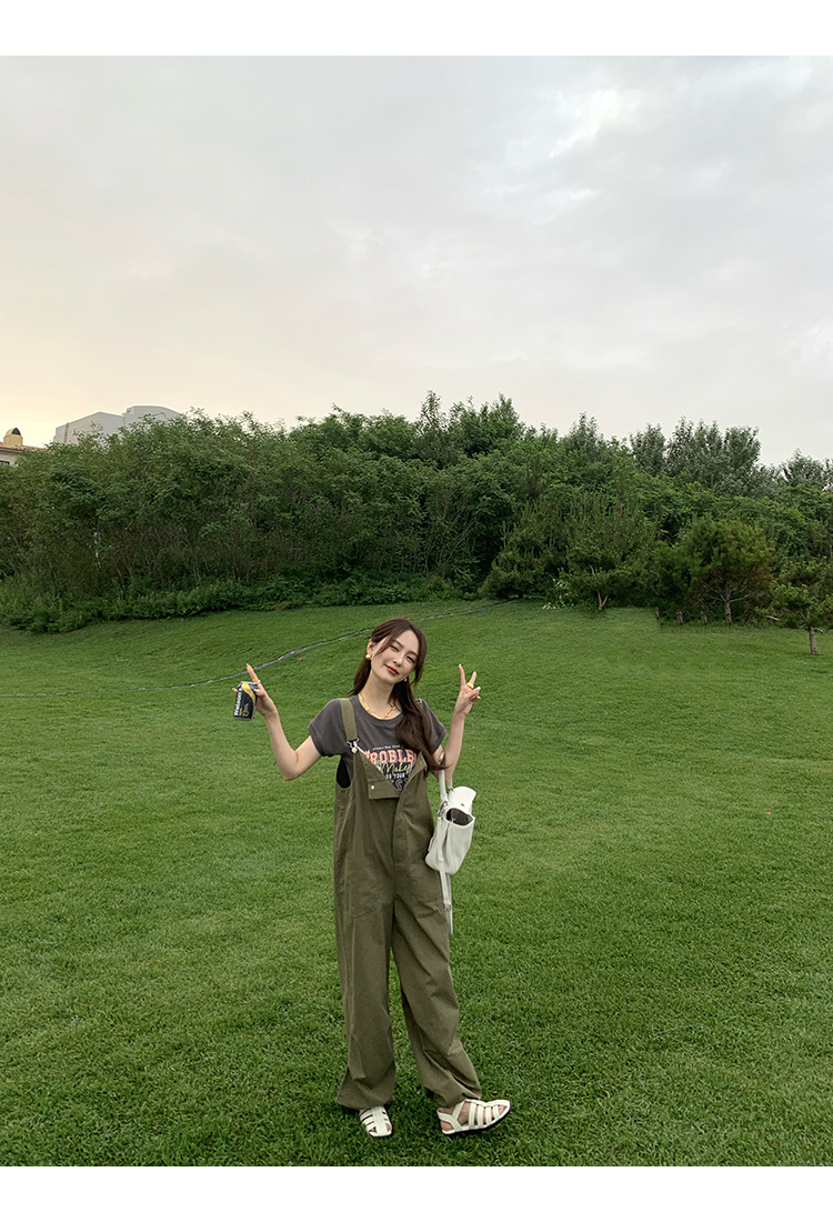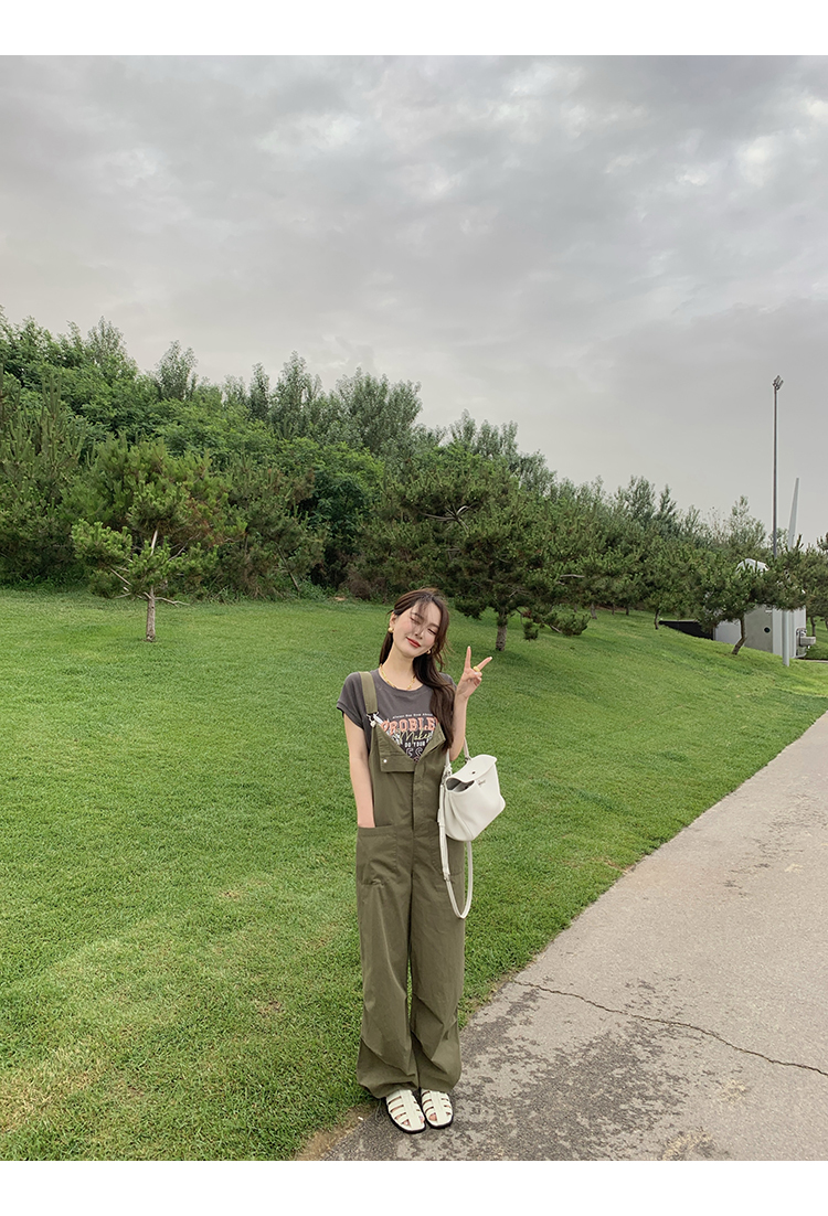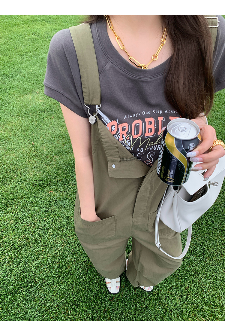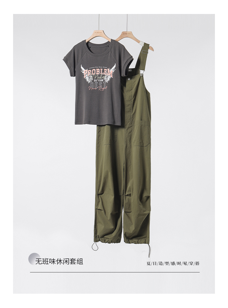 *o-ha-you*【FMQK2041073】無班味休閒套組螺紋棉感短袖印花T恤/精梳砂洗棉工裝收口背帶褲