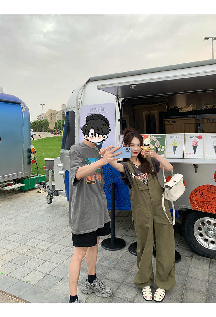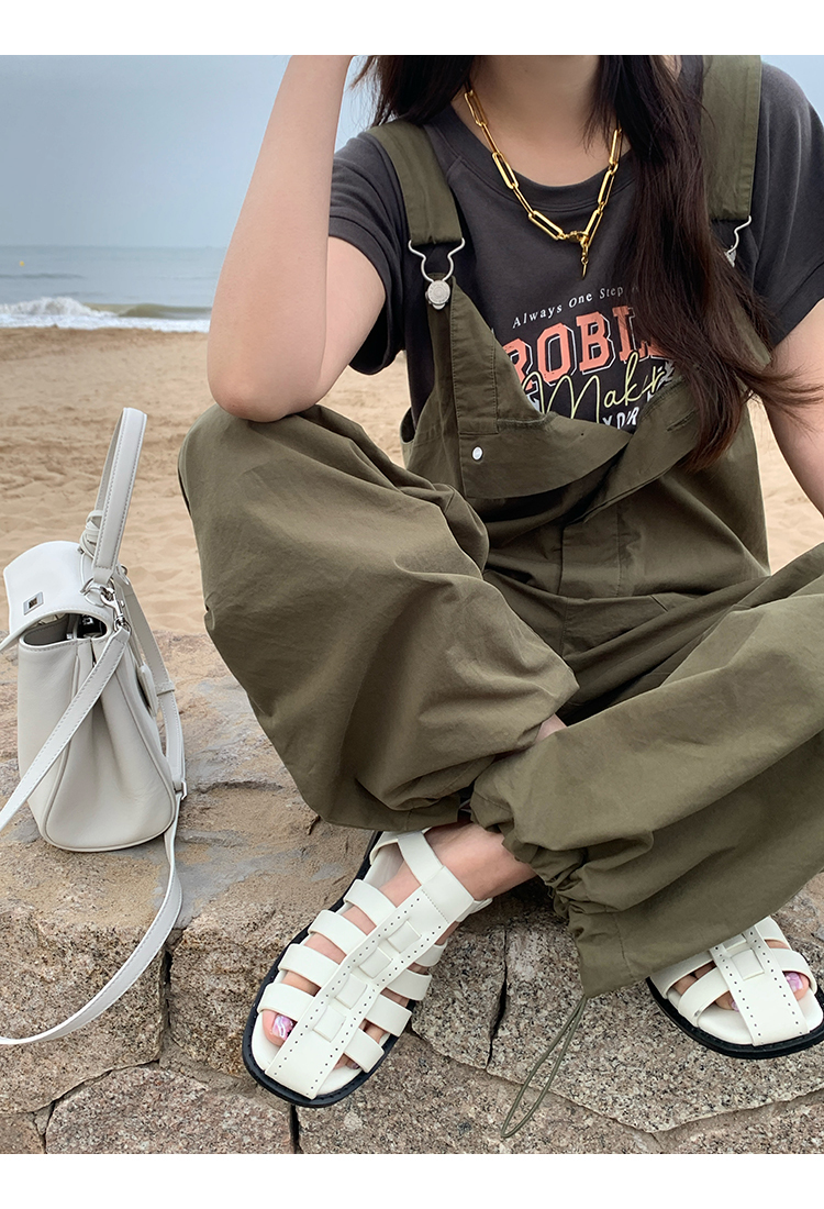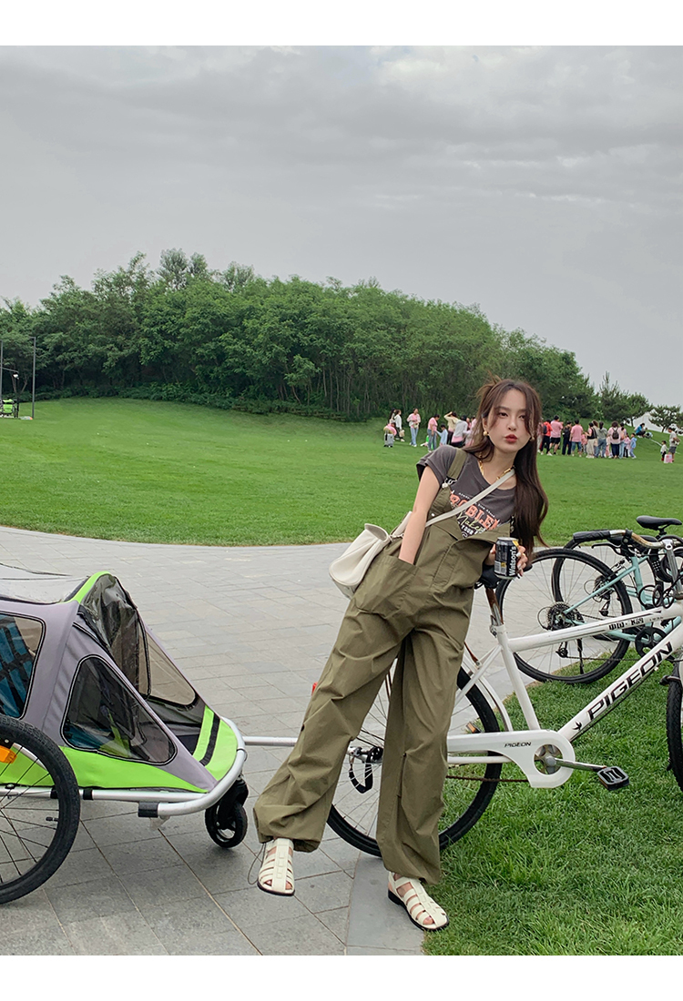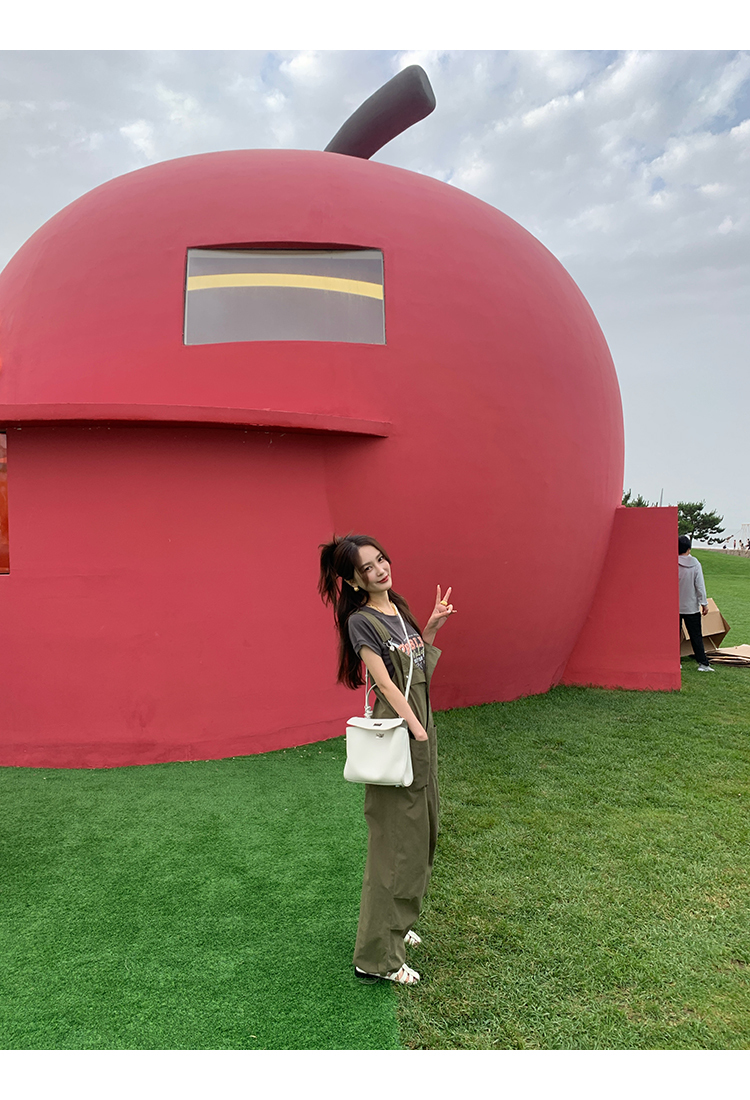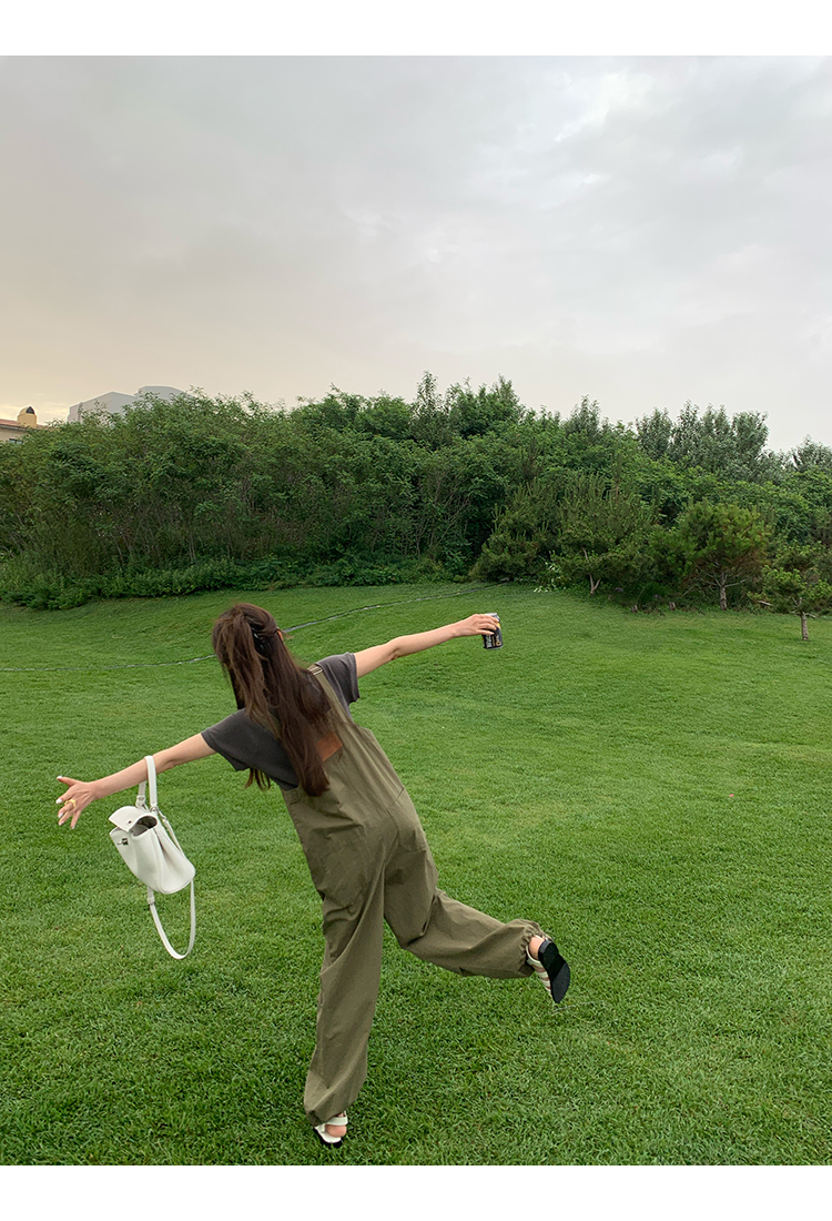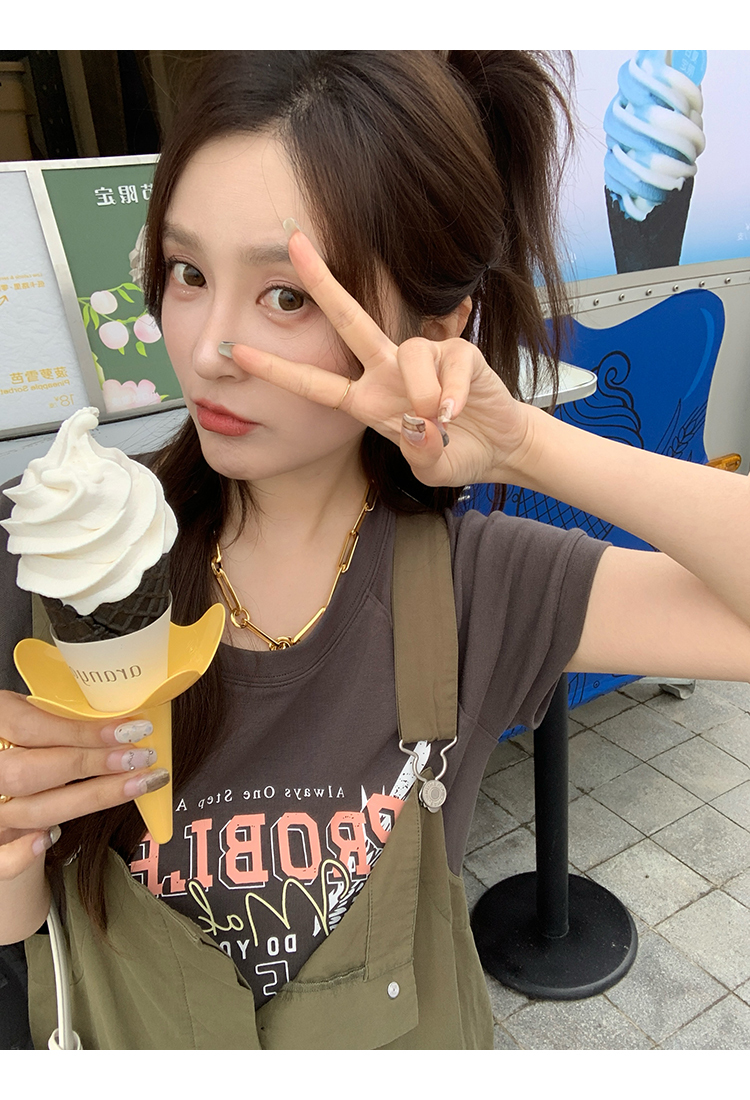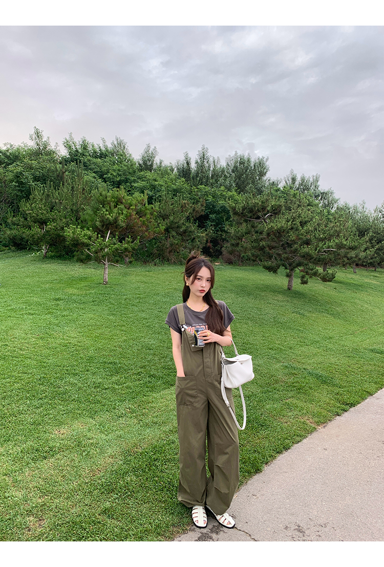 *o-ha-you*【FMQK2041073】無班味休閒套組螺紋棉感短袖印花T恤/精梳砂洗棉工裝收口背帶褲