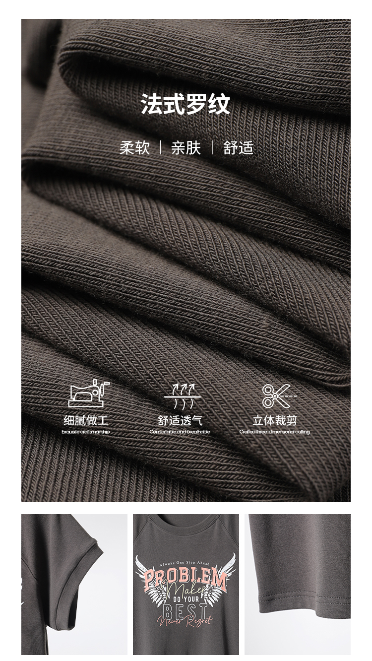 印花設計胸前撞色印花,豐​​富色彩層次,牢固吸附布面不易脫落