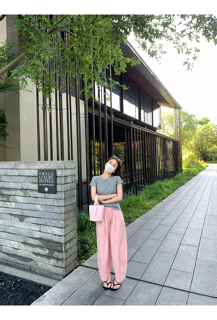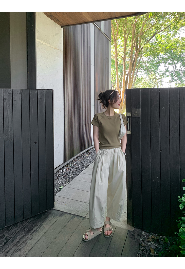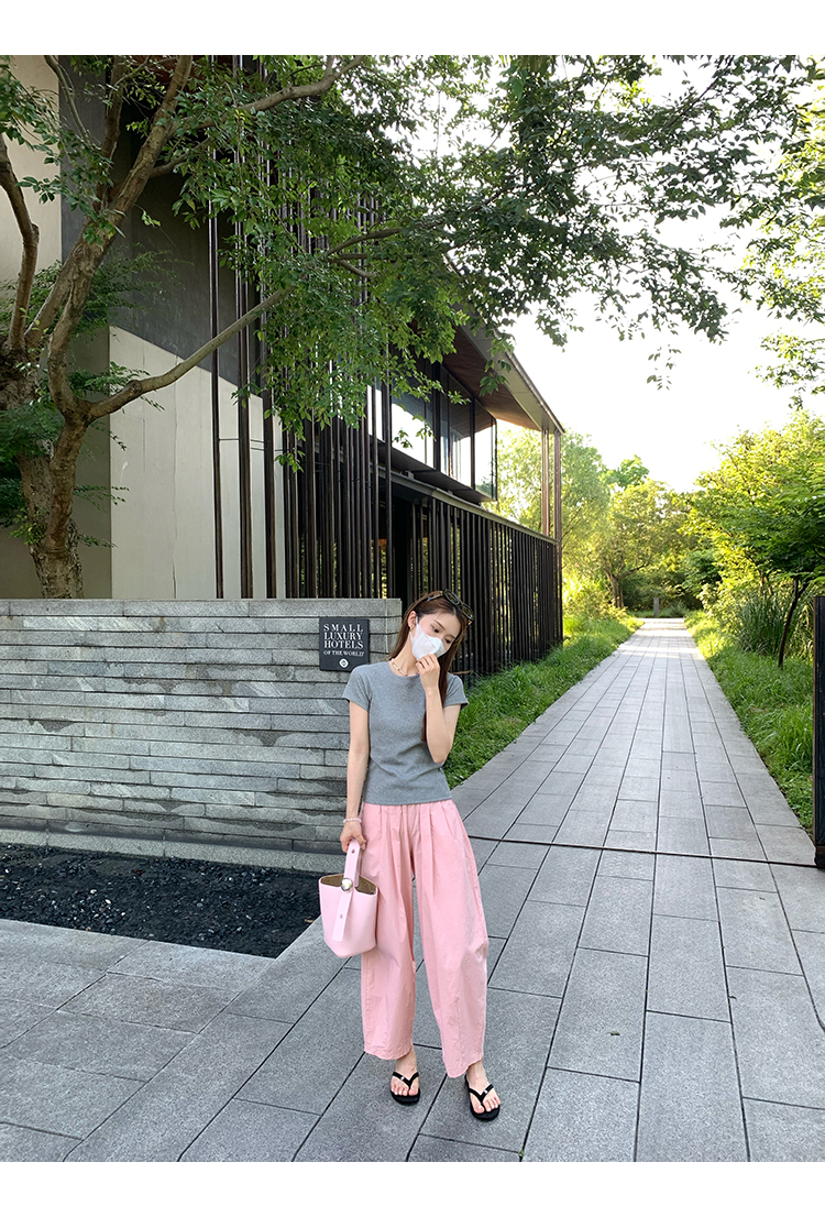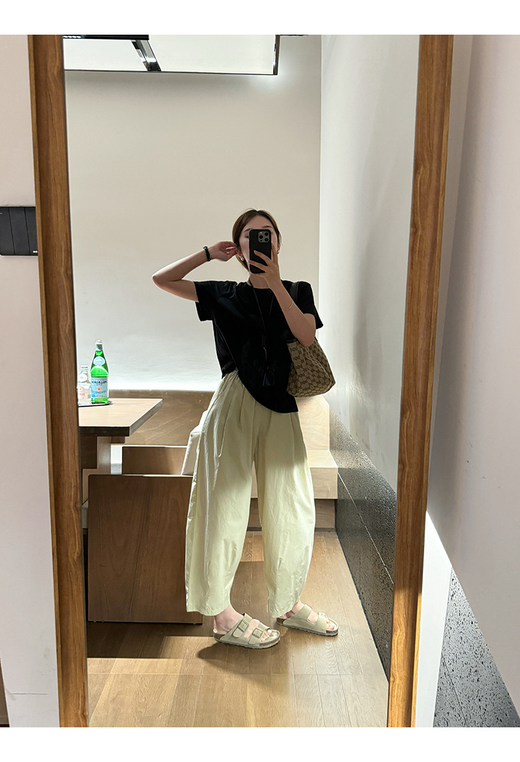 *o-ha-you*【FMQK2042046】多巴胺氣球褲高支高密純棉韓國酵洗夏季輕薄九分山本女褲香蕉