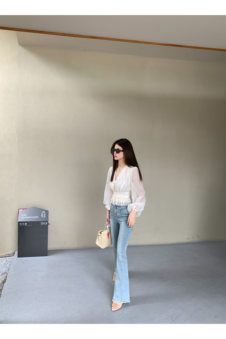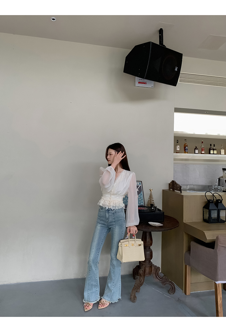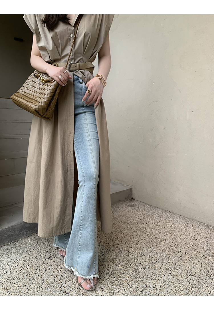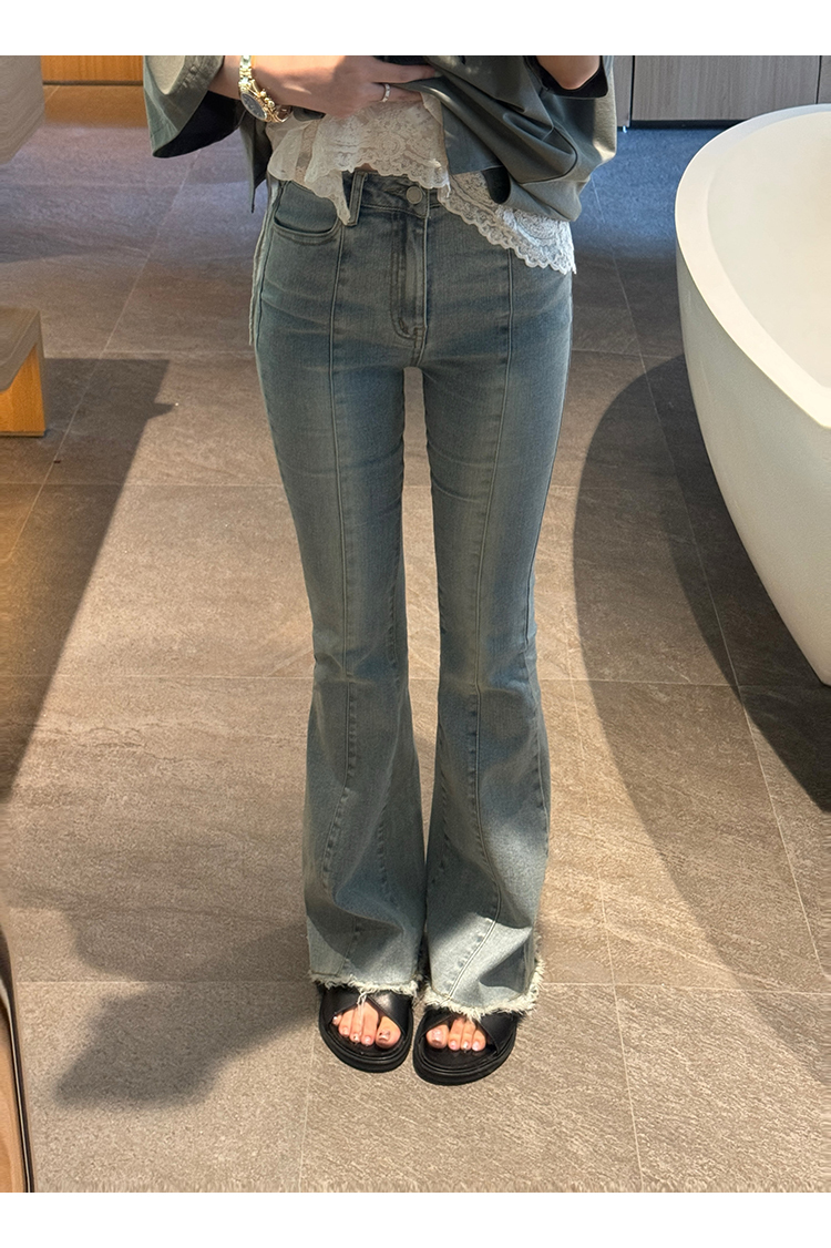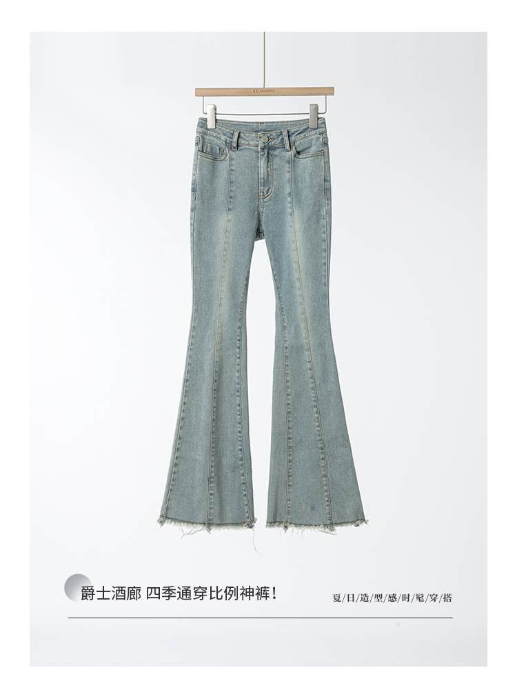 *o-ha-you*【FMQK2042074】爵士酒廊四季穿比例神褲竹節彈力牛仔顯瘦毛邊喇叭褲
