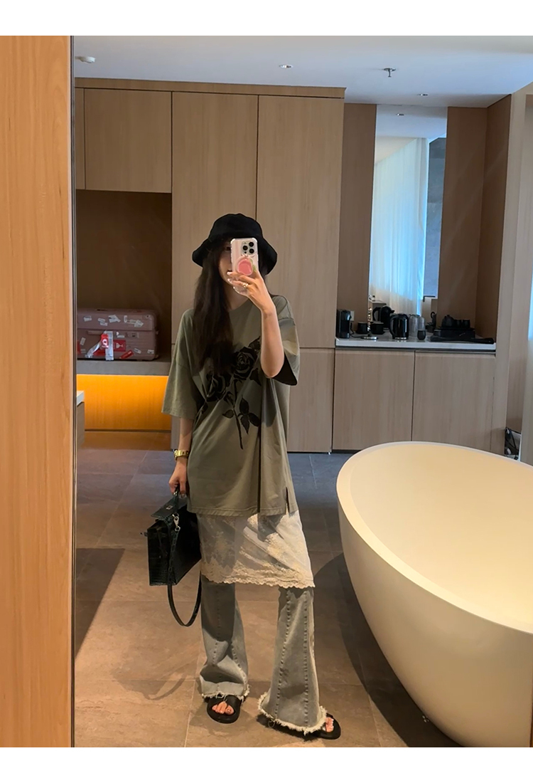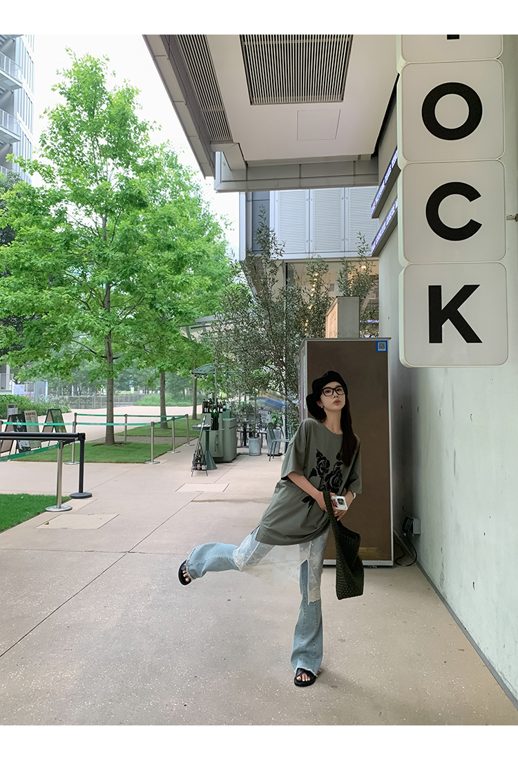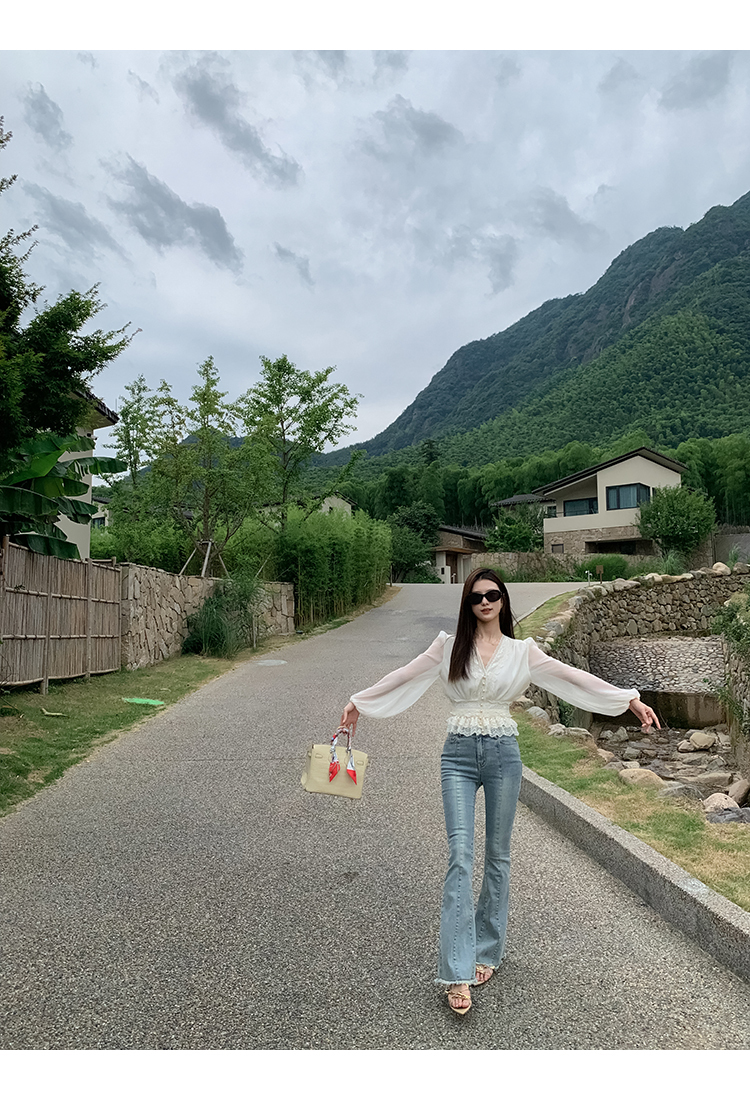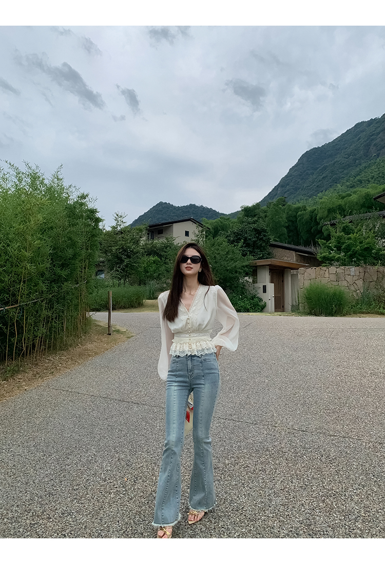 *o-ha-you*【FMQK2042074】爵士酒廊四季穿比例神褲竹節彈力牛仔顯瘦毛邊喇叭褲