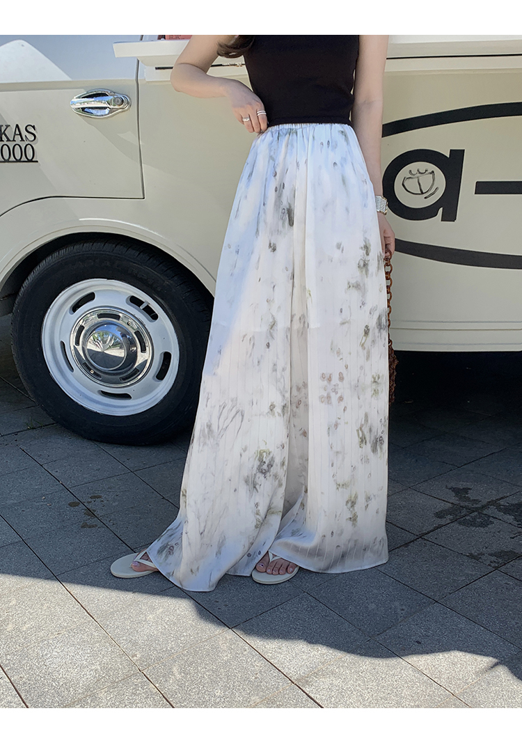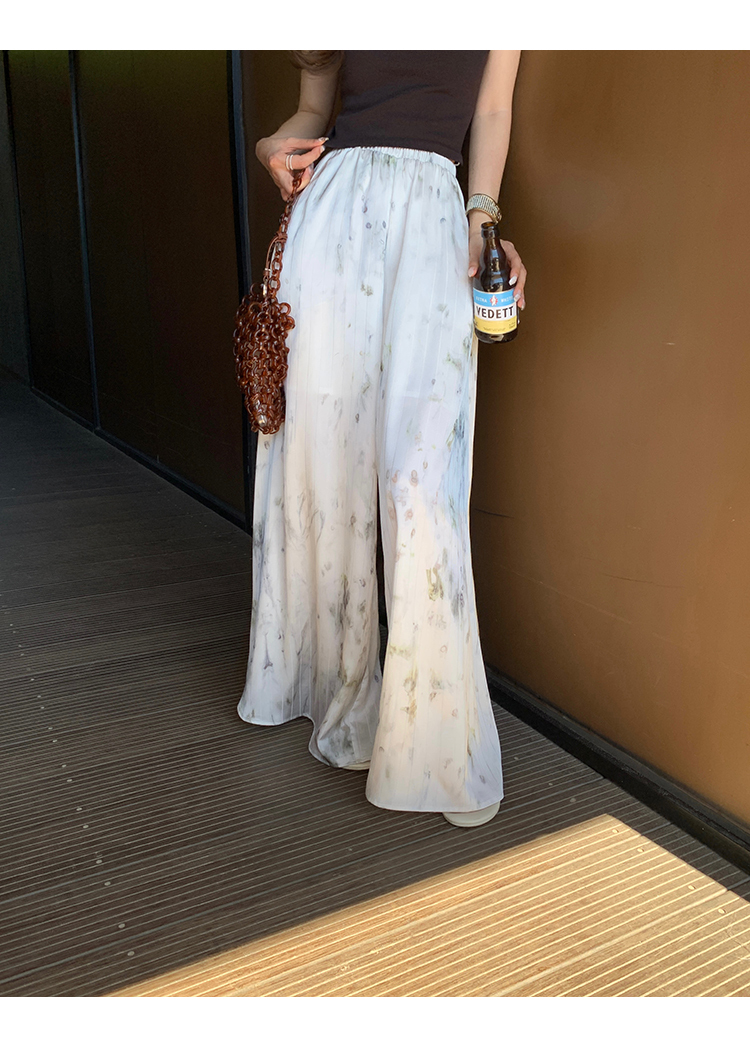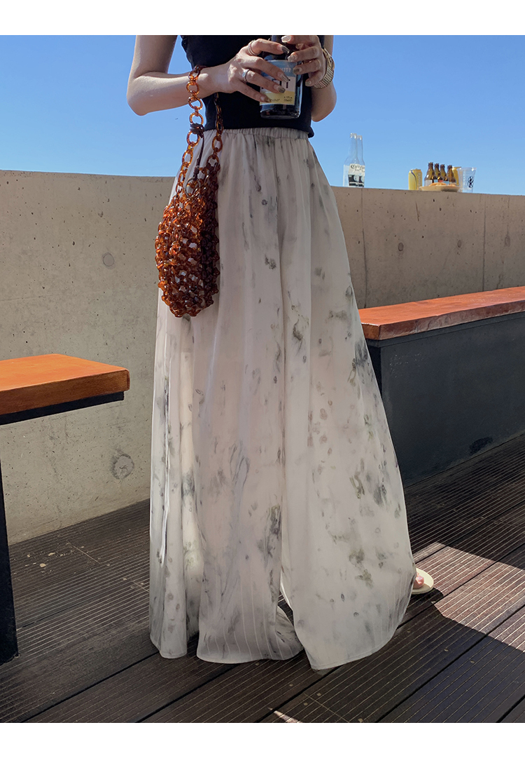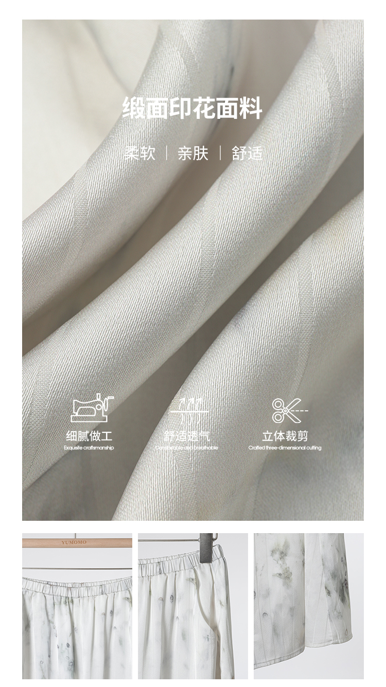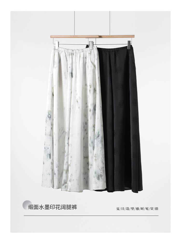 *o-ha-you*【FMQK2042076】青隱客輕中式寬褲緞面水墨印花鬆緊腰寬鬆寬版休閒褲