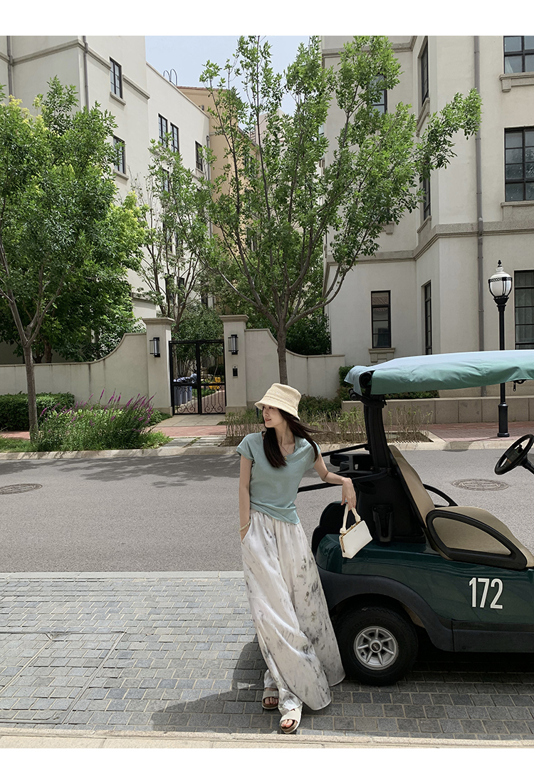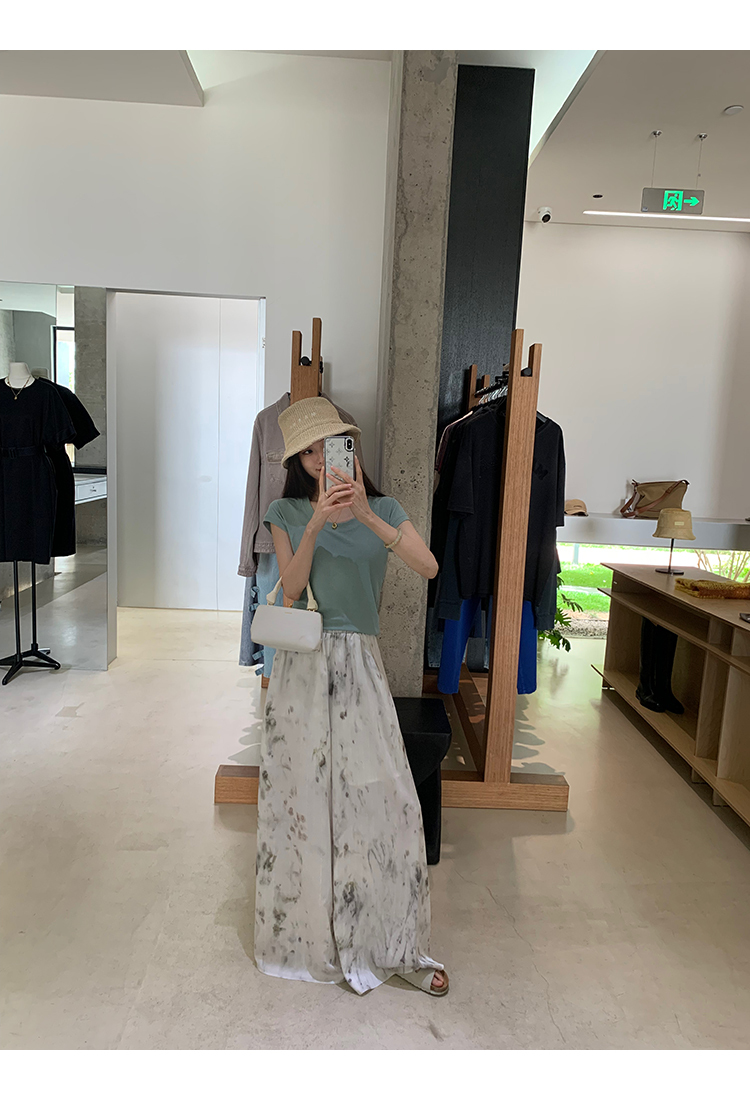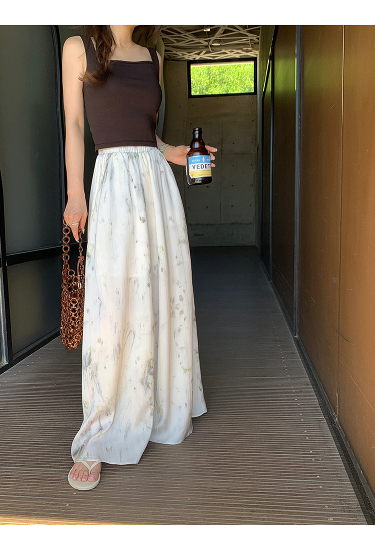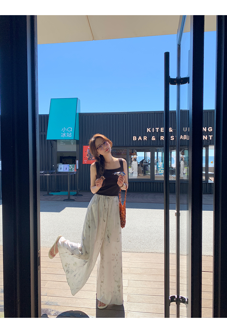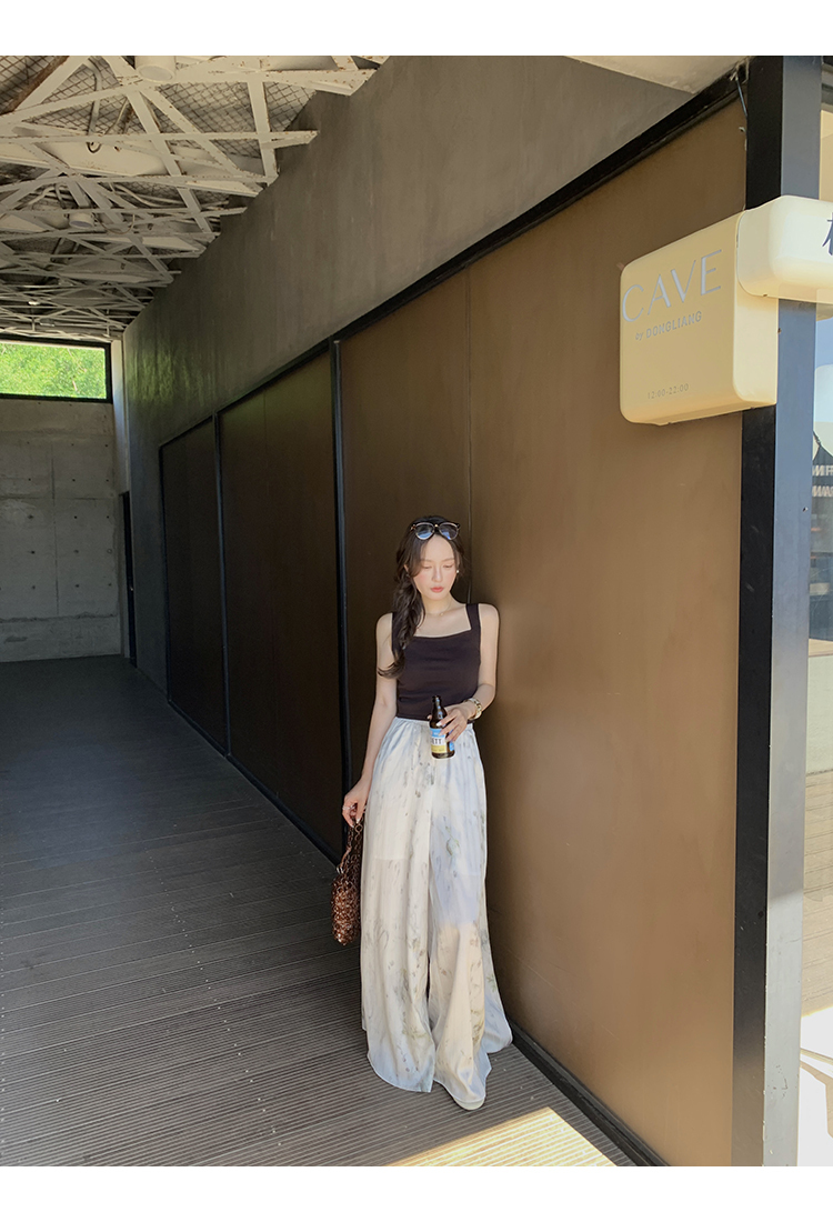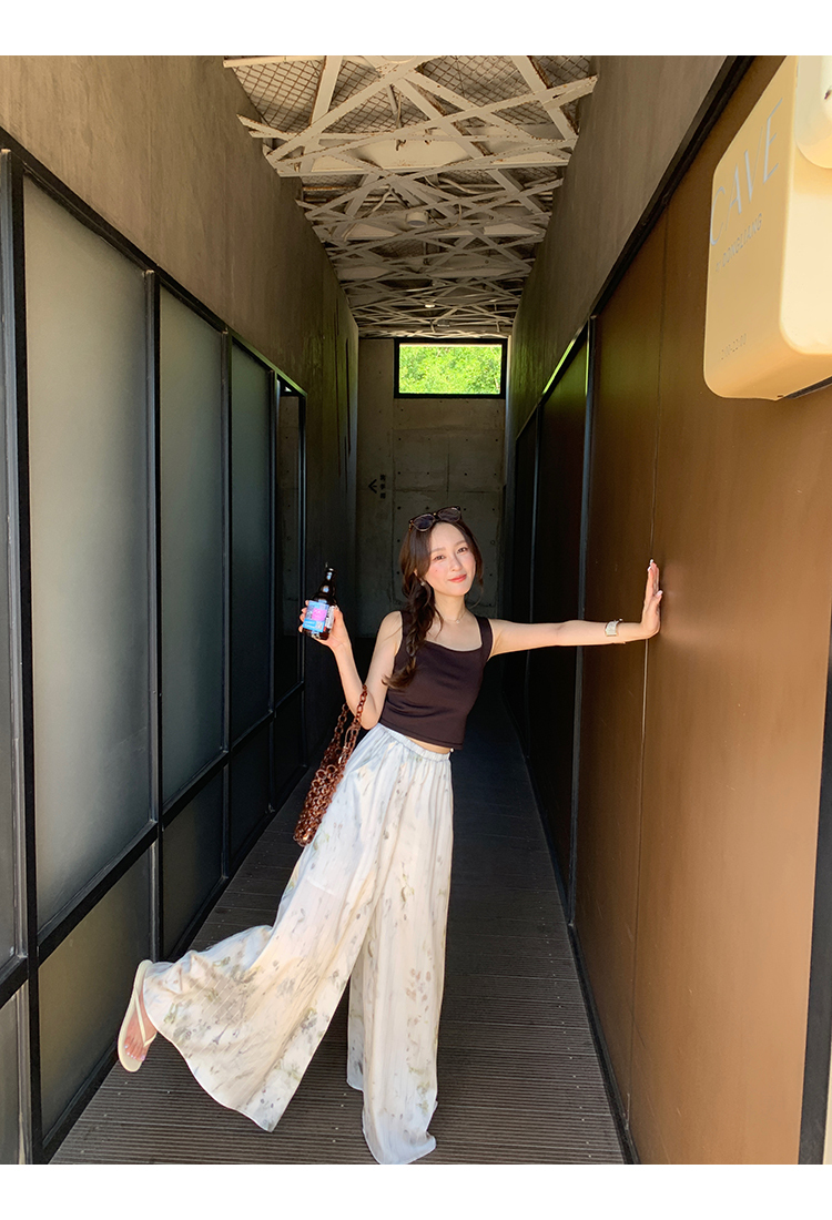 *o-ha-you*【FMQK2042076】青隱客輕中式寬褲緞面水墨印花鬆緊腰寬鬆寬版休閒褲