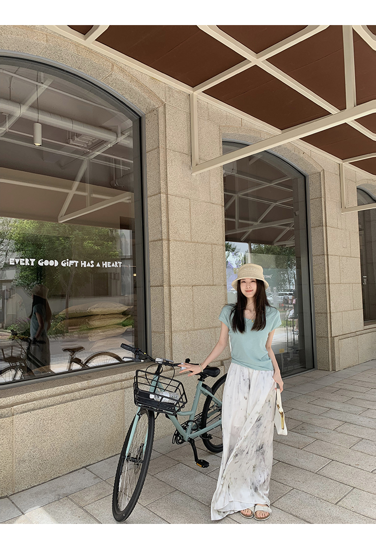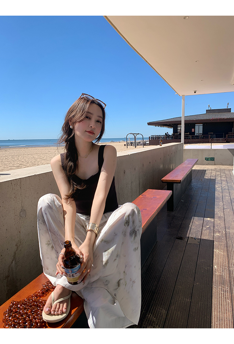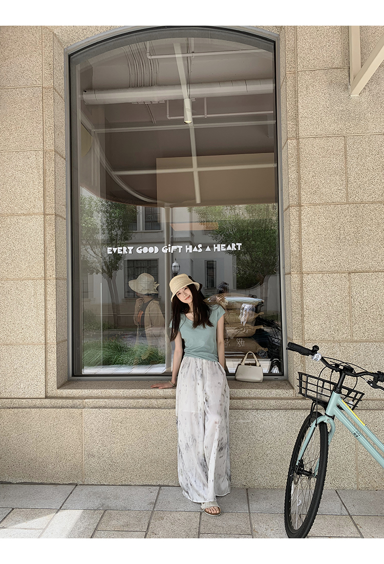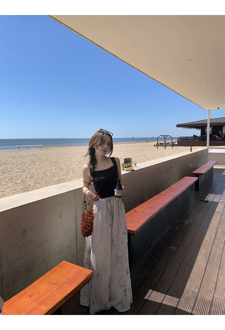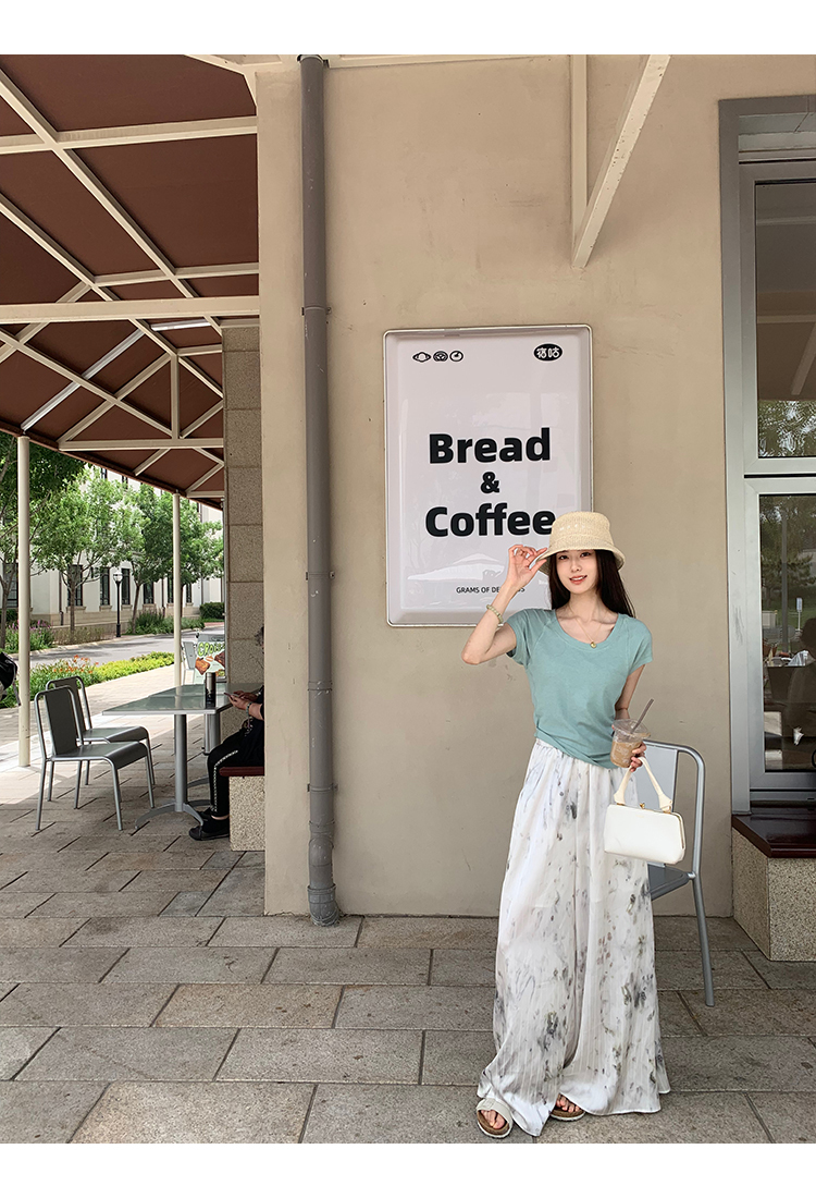 *o-ha-you*【FMQK2042076】青隱客輕中式寬褲緞面水墨印花鬆緊腰寬鬆寬版休閒褲
