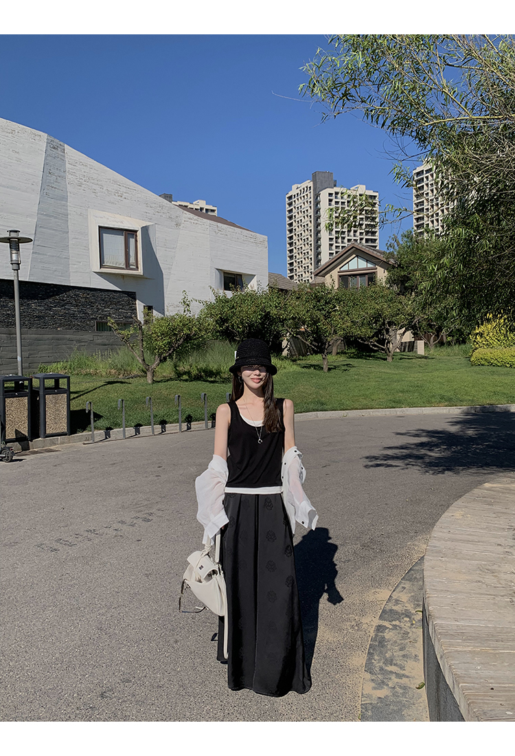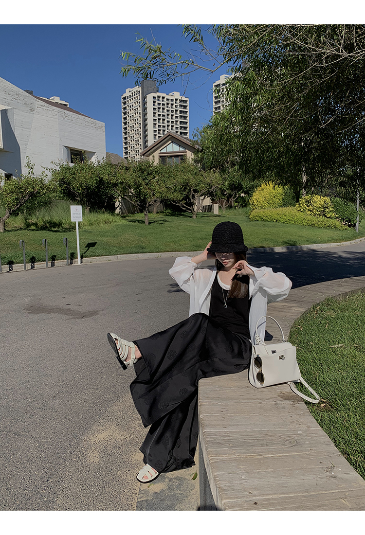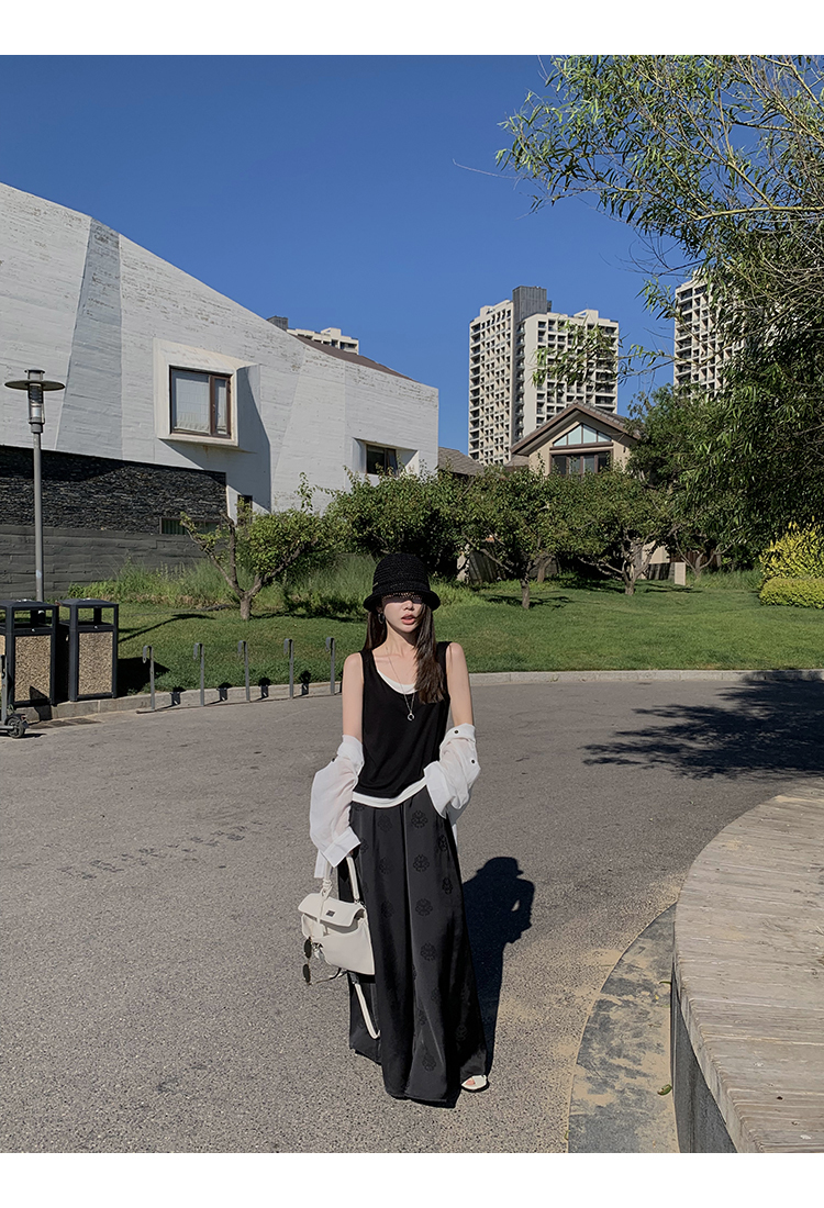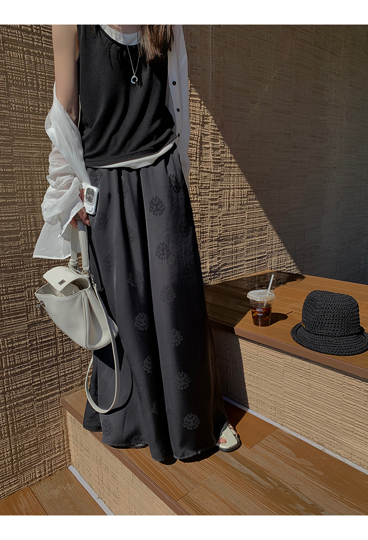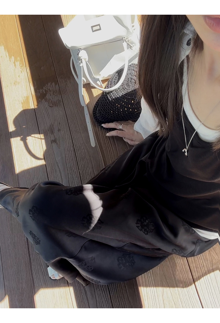 而黑色甄選緞面提花布料,布料手感爽滑,垂墜感好,
