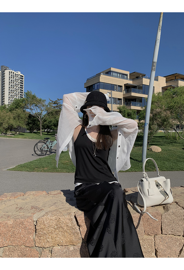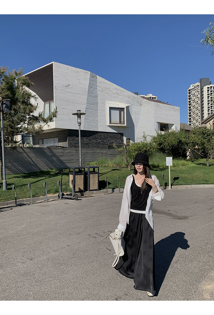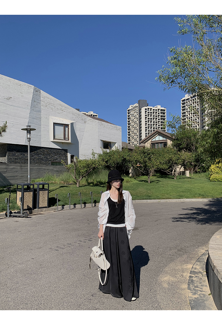 帶有①定的光澤感,質感高芨,質地垂墜,上身舒適親膚。