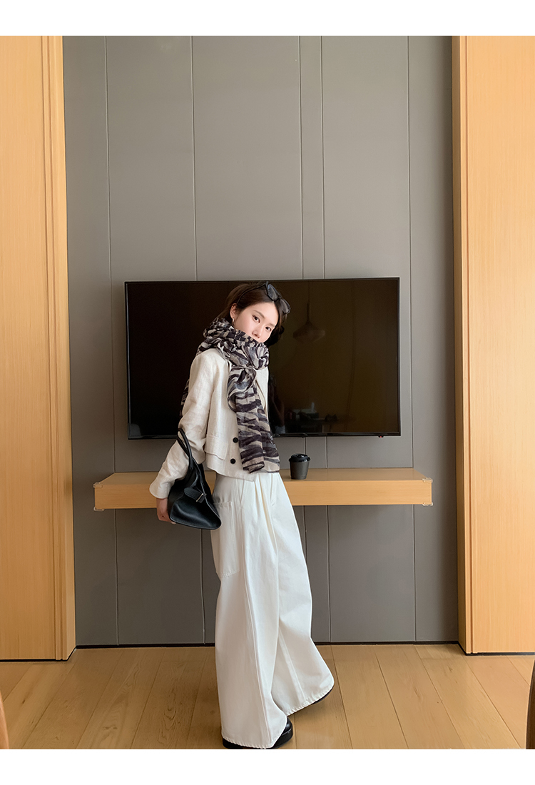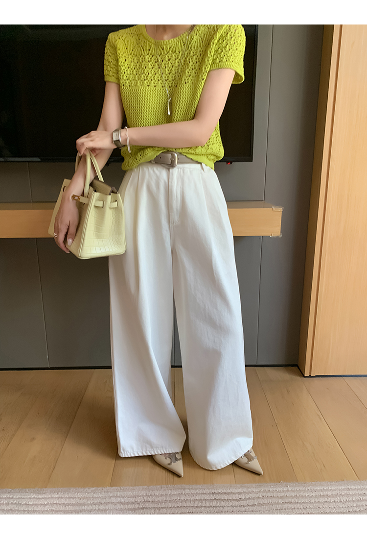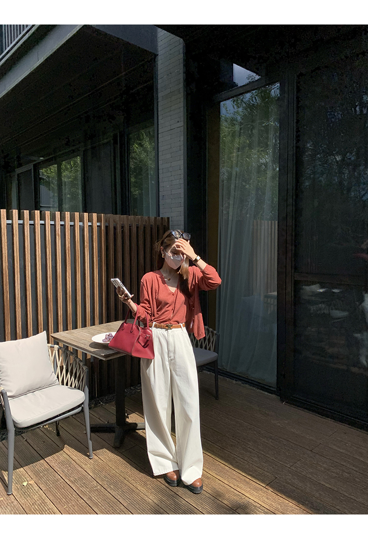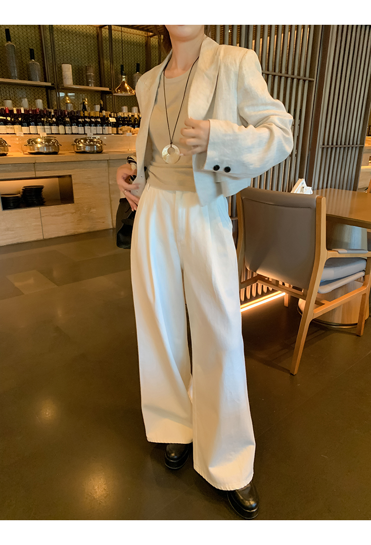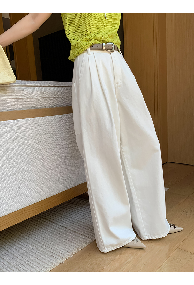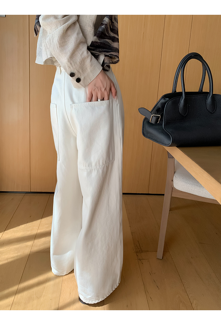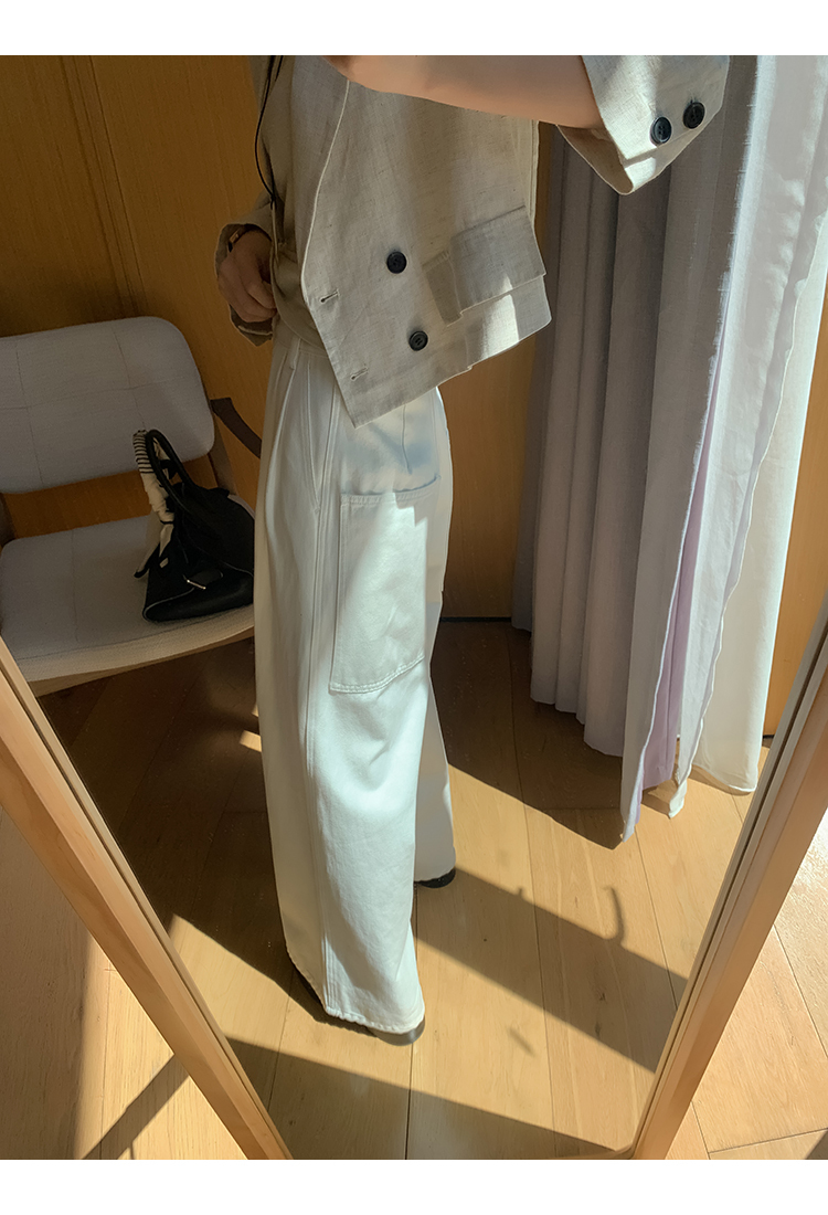 *o-ha-you*【FMQK2042077】私服原色白牛純棉牛仔百搭天菜神褲顯瘦闊腿直筒牛仔褲