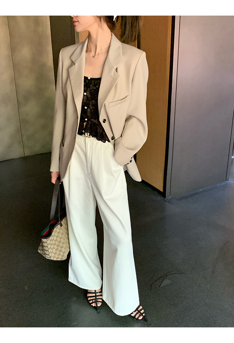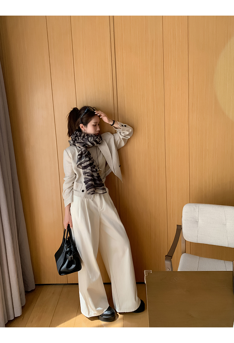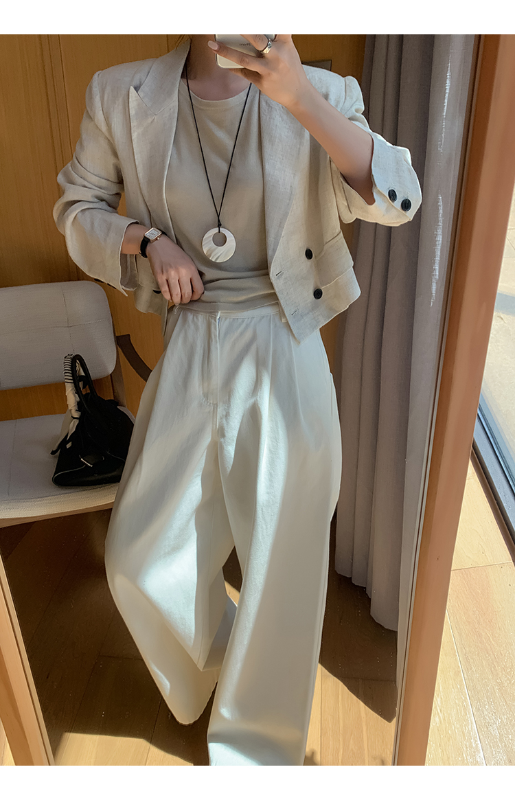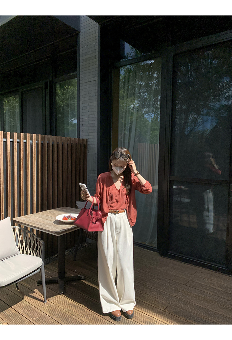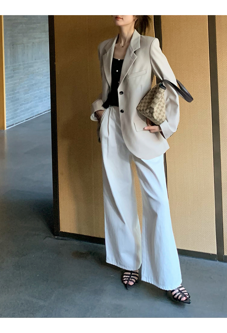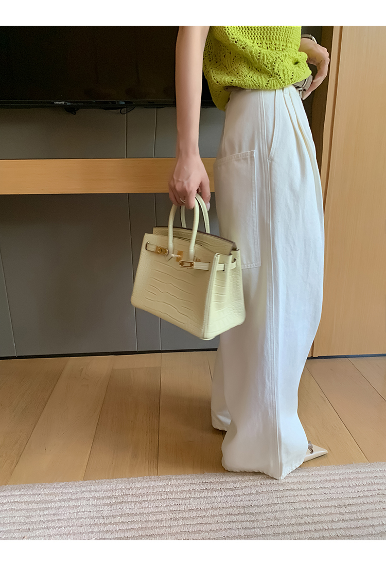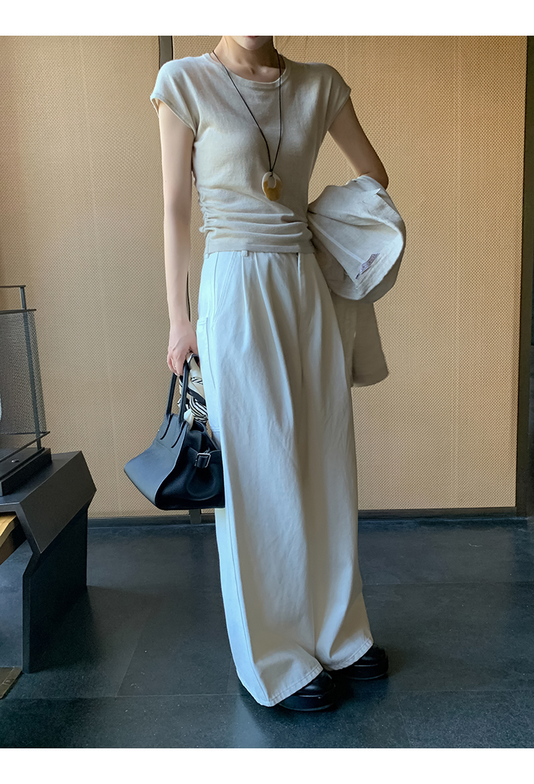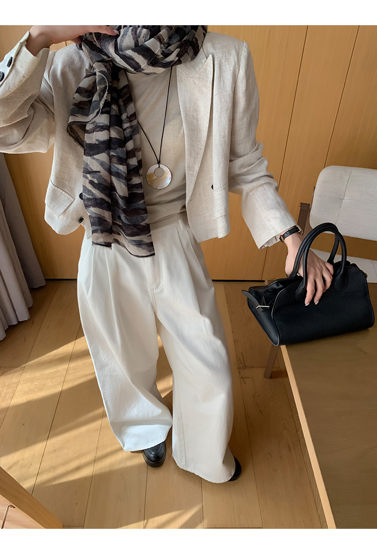 *o-ha-you*【FMQK2042077】私服原色白牛純棉牛仔百搭天菜神褲顯瘦闊腿直筒牛仔褲